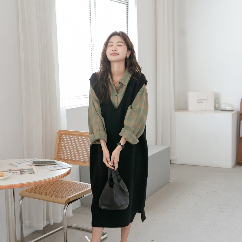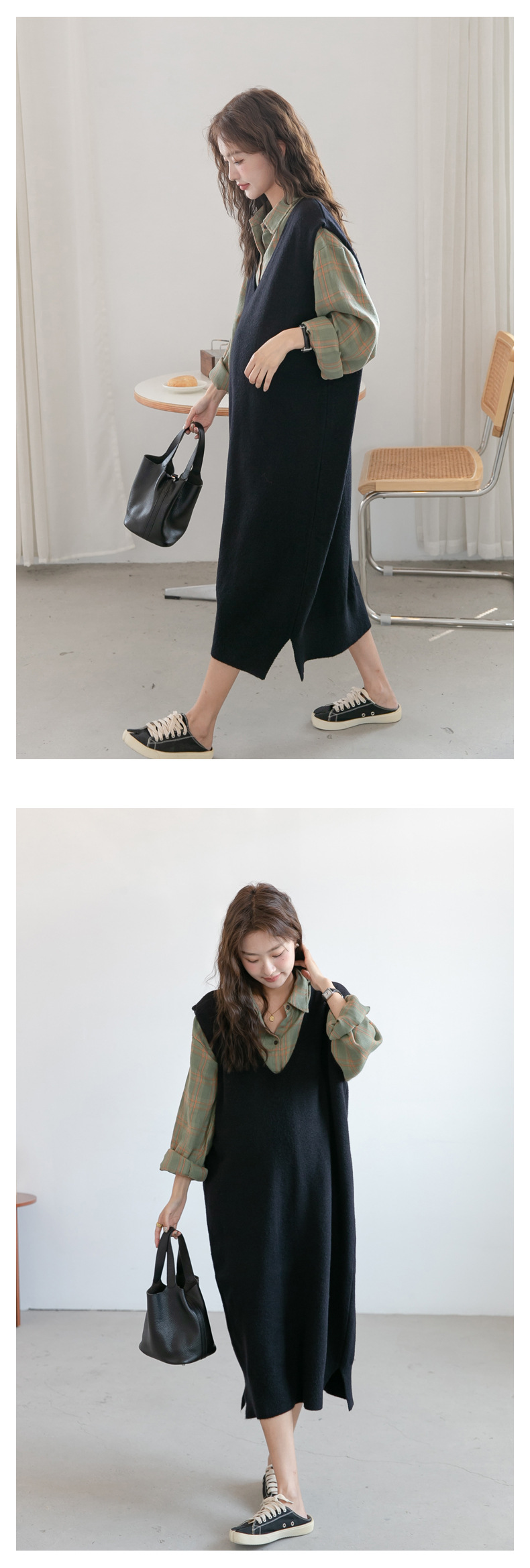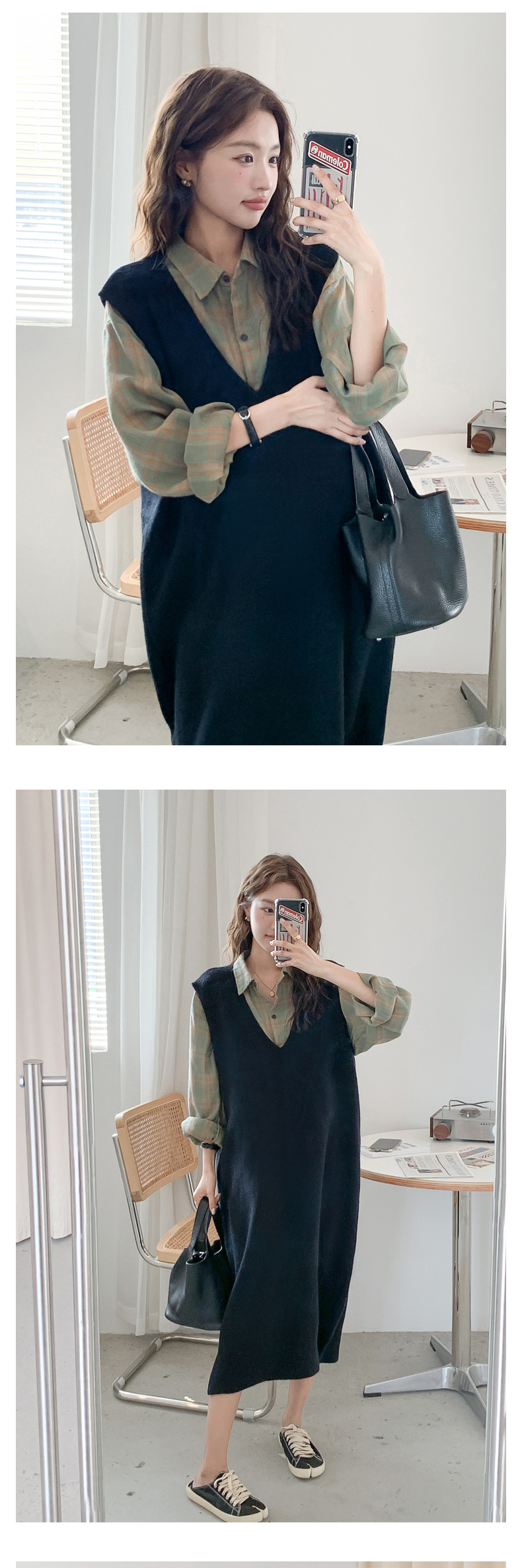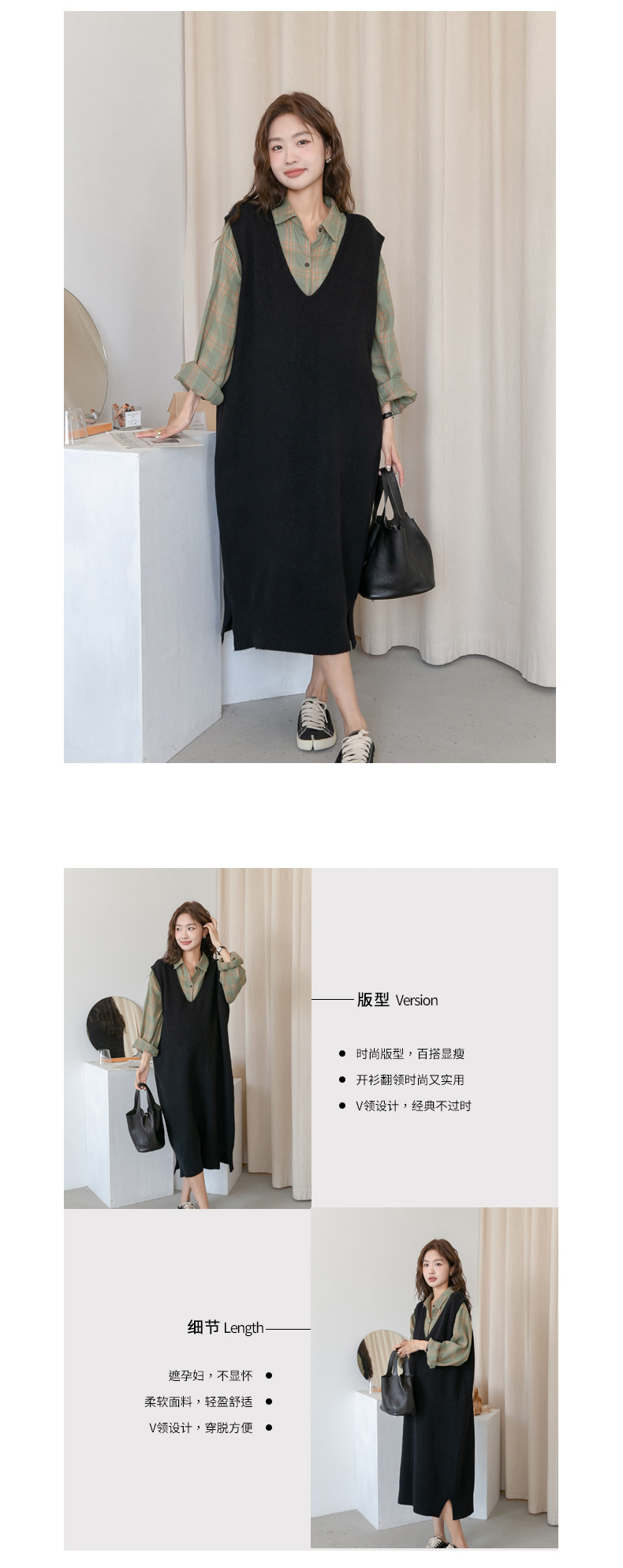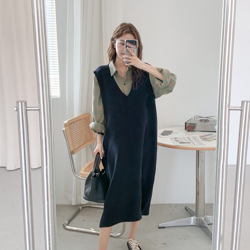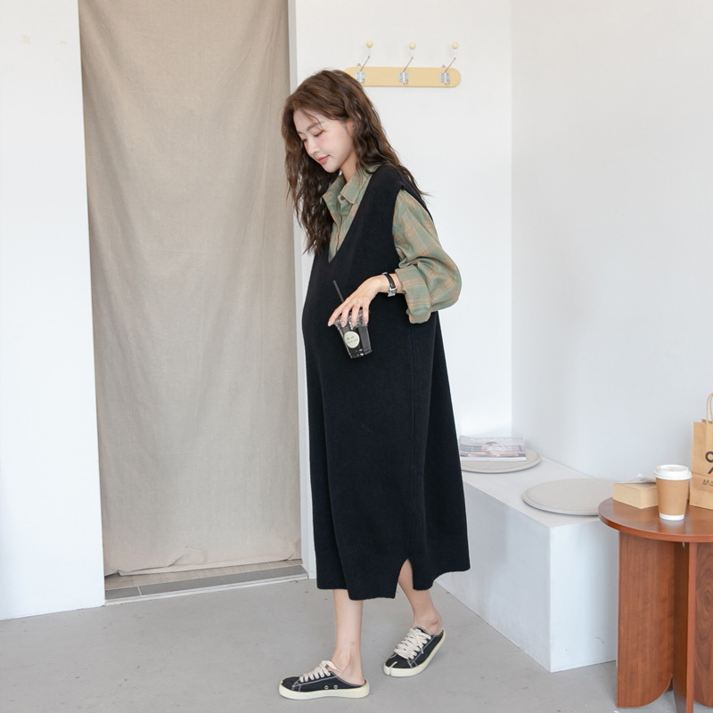 Осенне-зимняя новая одежда для беременных женщин, жилет для беременных в Корейском стиле, юбка, вязаный свитер, длинный пуловер с V-образным вырезом, свитер, юбка без рукавов