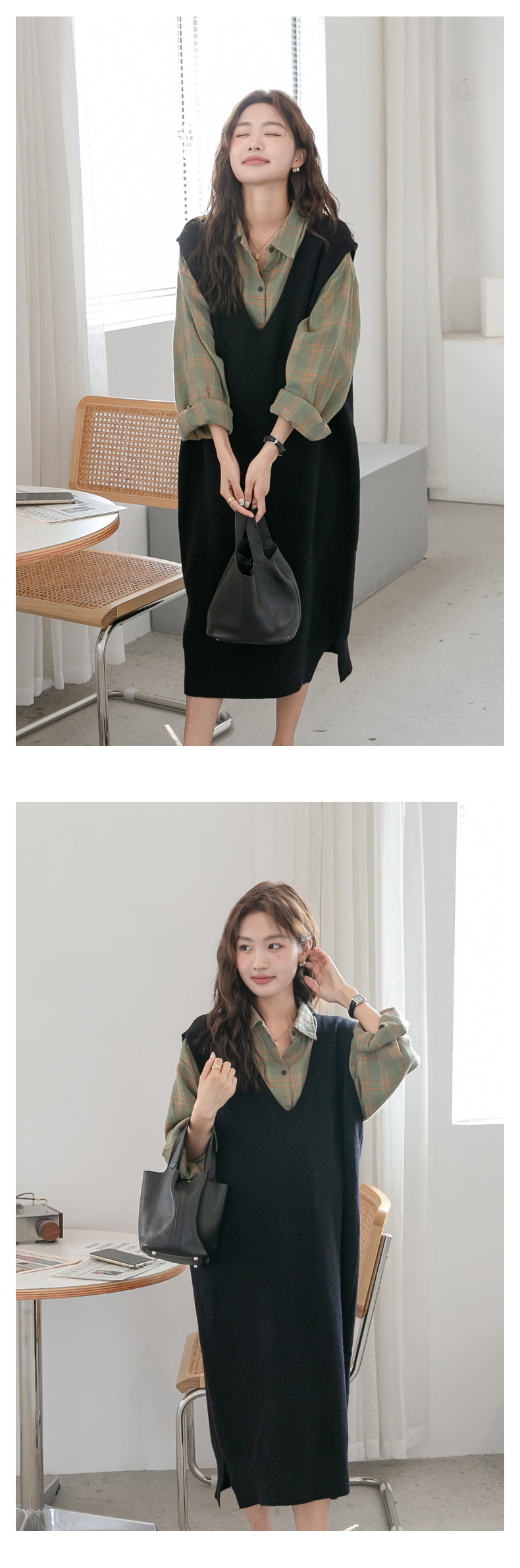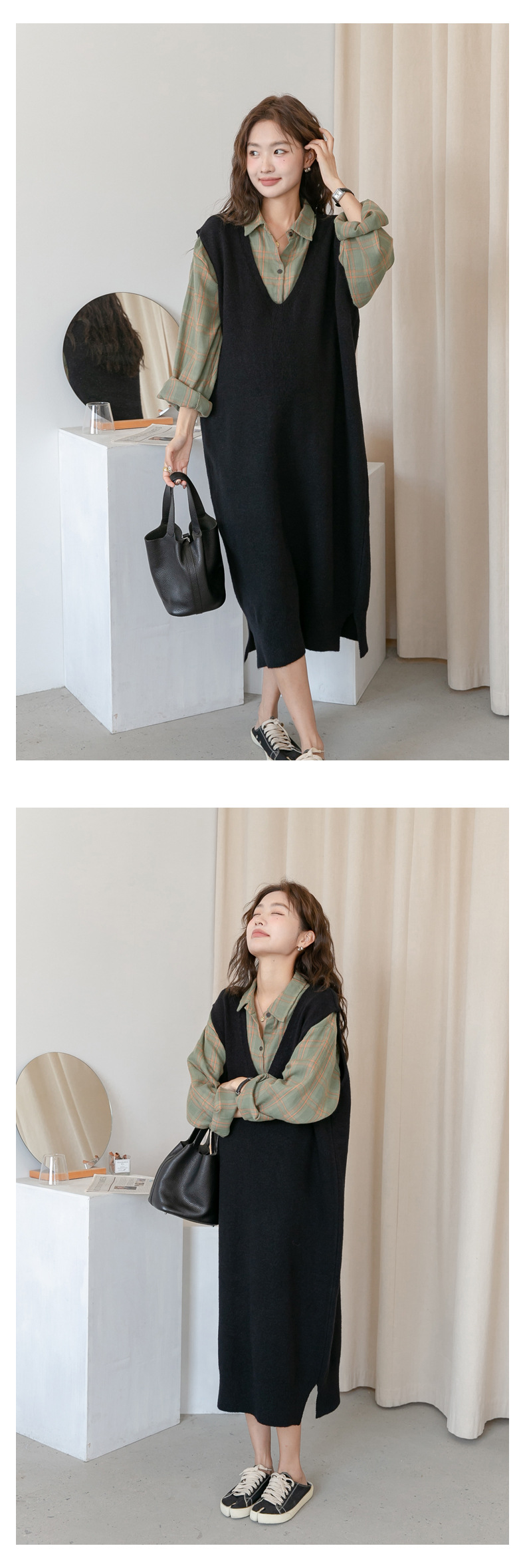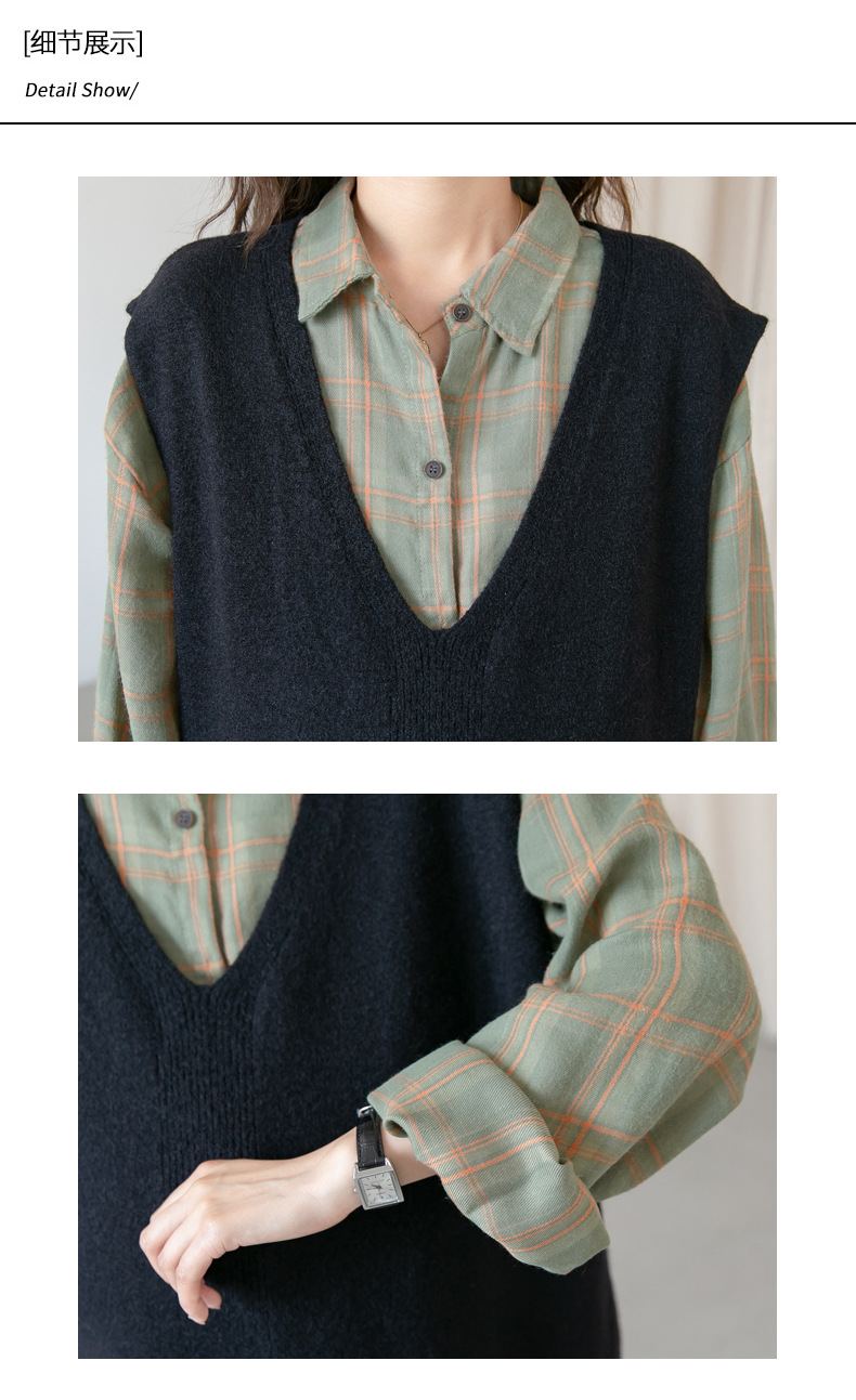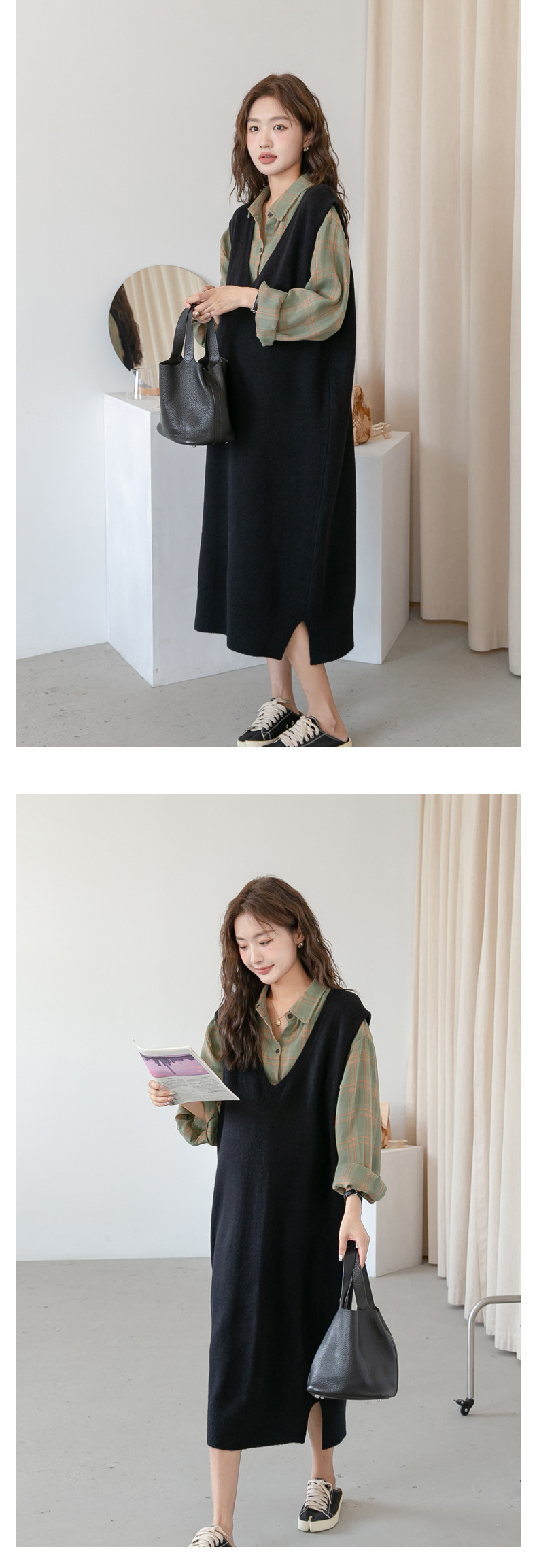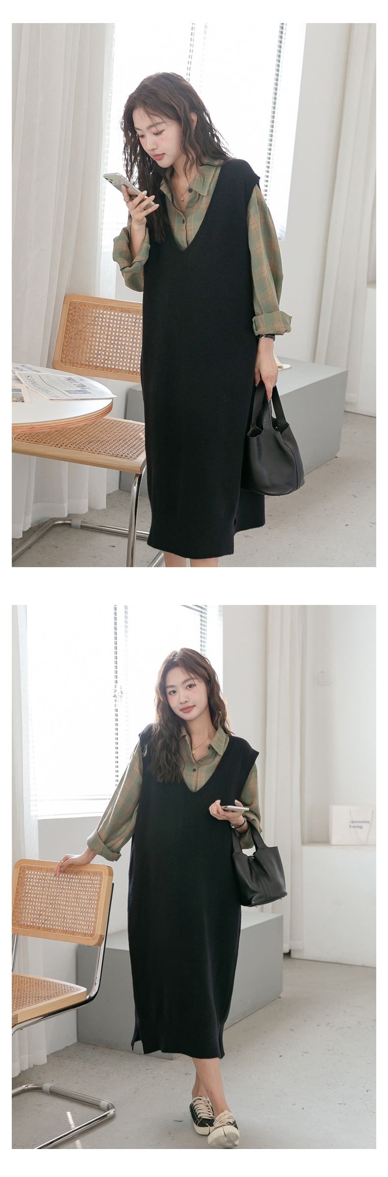 Осенне-зимняя новая одежда для беременных женщин, жилет для беременных в Корейском стиле, юбка, вязаный свитер, длинный пуловер с V-образным вырезом, свитер, юбка без рукавов