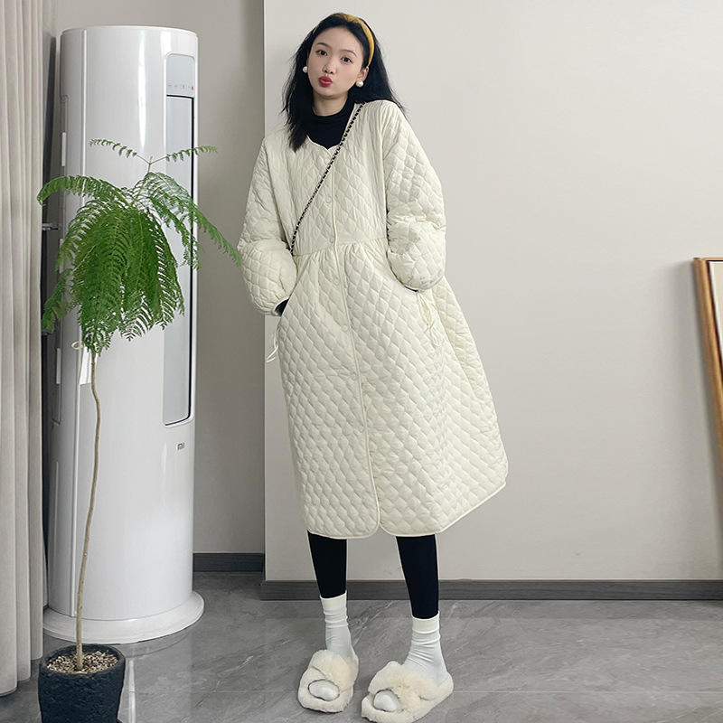 Куртка с хлопковым подкладом для беременных 2023 осенне-зимняя одежда теплое тонкое пальто средней длины с ромбом в стиле Шанель, горячая верхняя одежда для мам, куртка с хлопковым подкладом