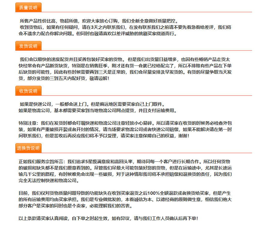 各位亲爱的顾客们,本产品有现货,尺寸都能满足各位不同顾客需求,需要其它色系请来样定制,下单前请及时和客服沟通,这样能确保发送相匹配的产品造成不必要麻烦,带来不便请谅解!