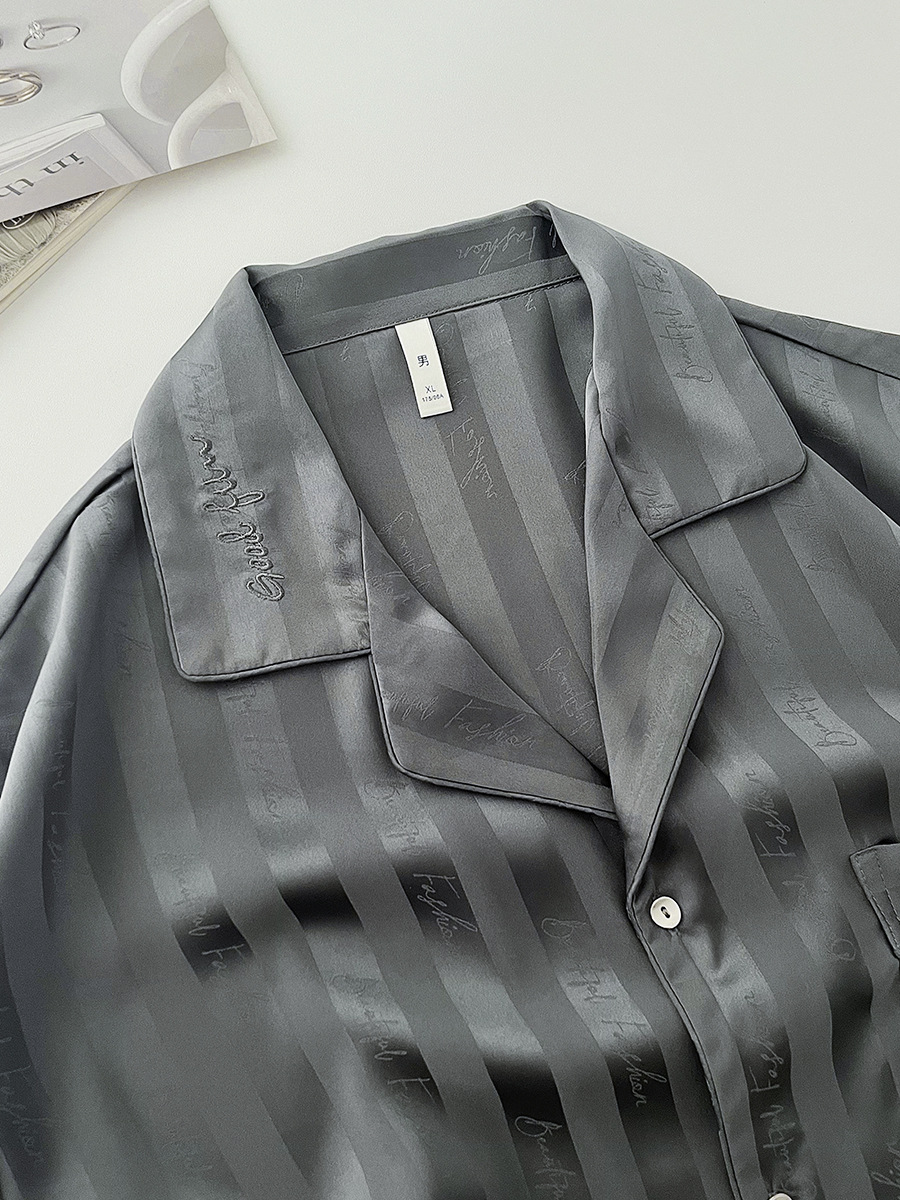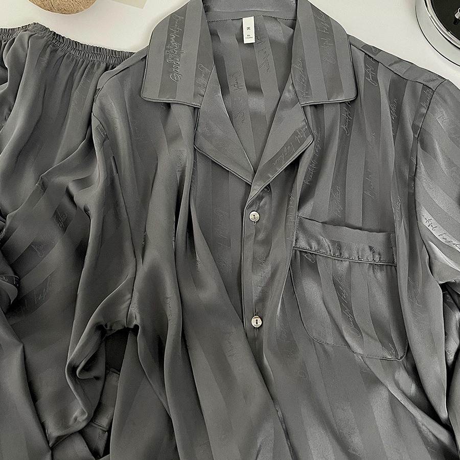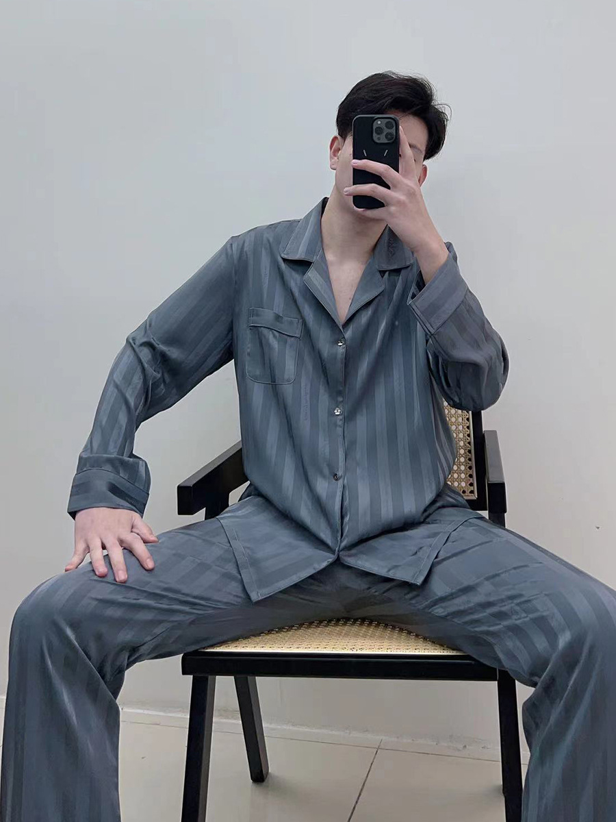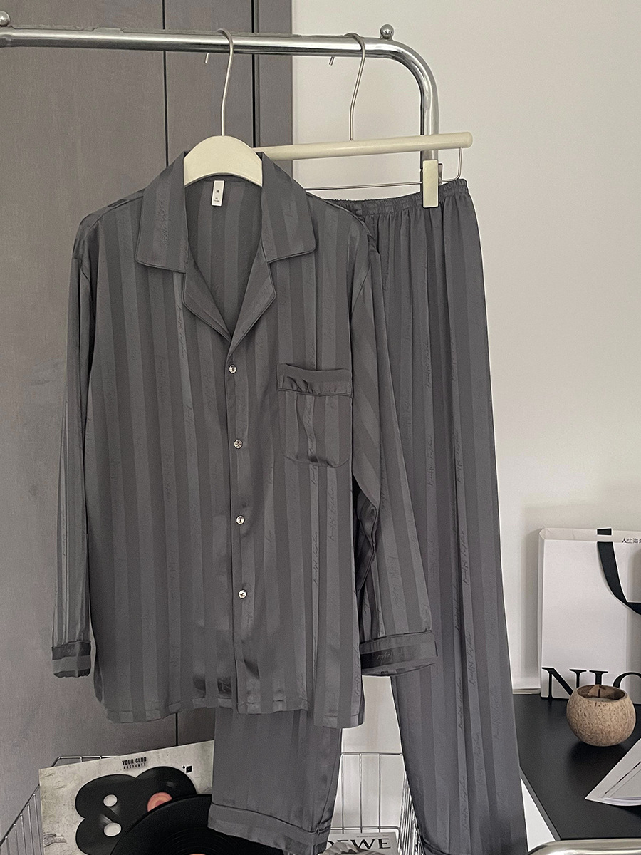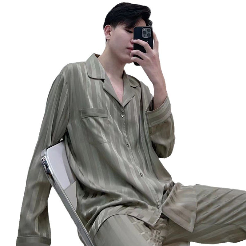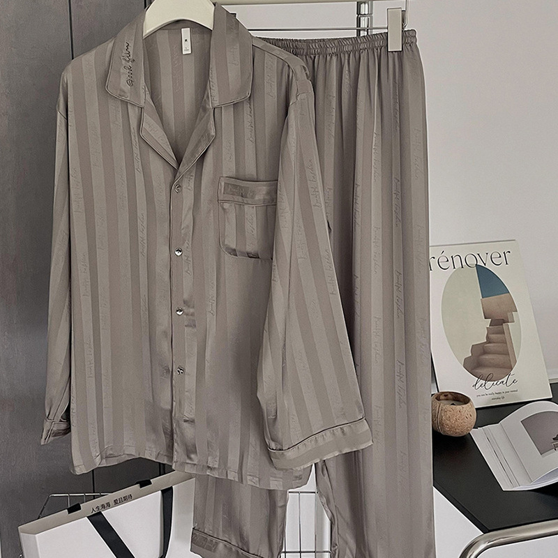Мужской комплект домашней одежды из легкого люксового жаккарда с вышивкой из ледяного шелка, высококачественный, осенний, с длинными рукавами