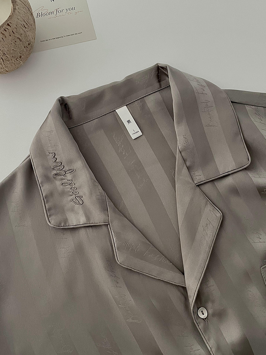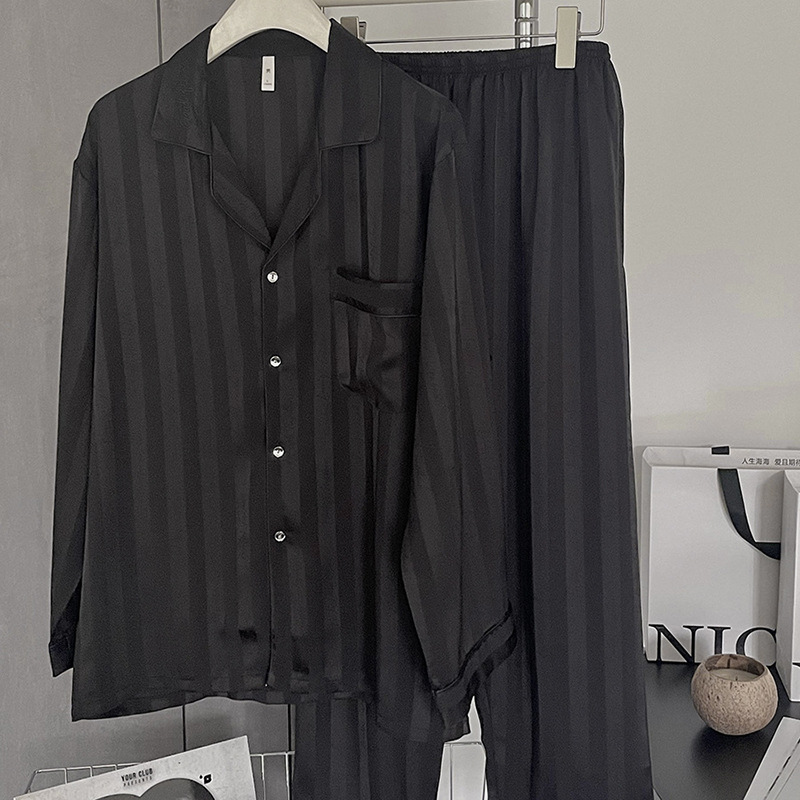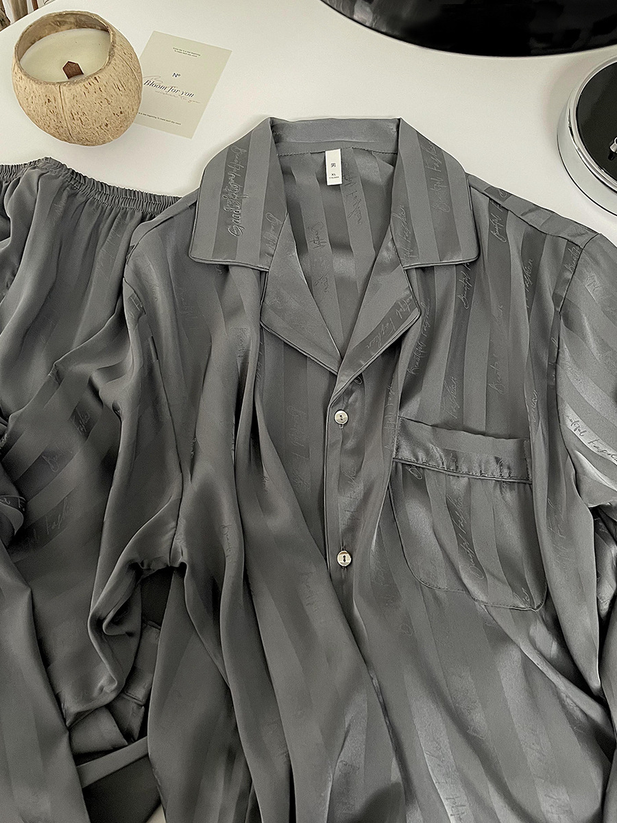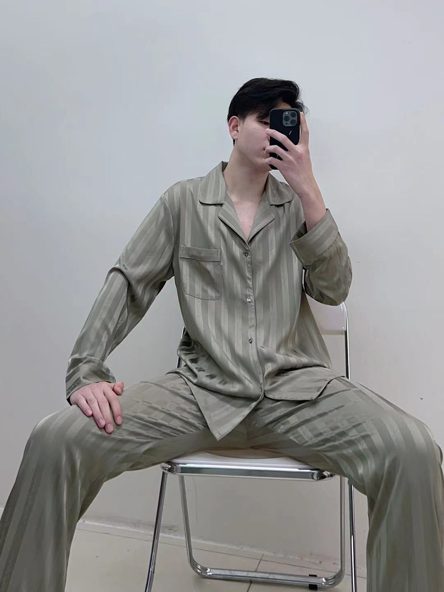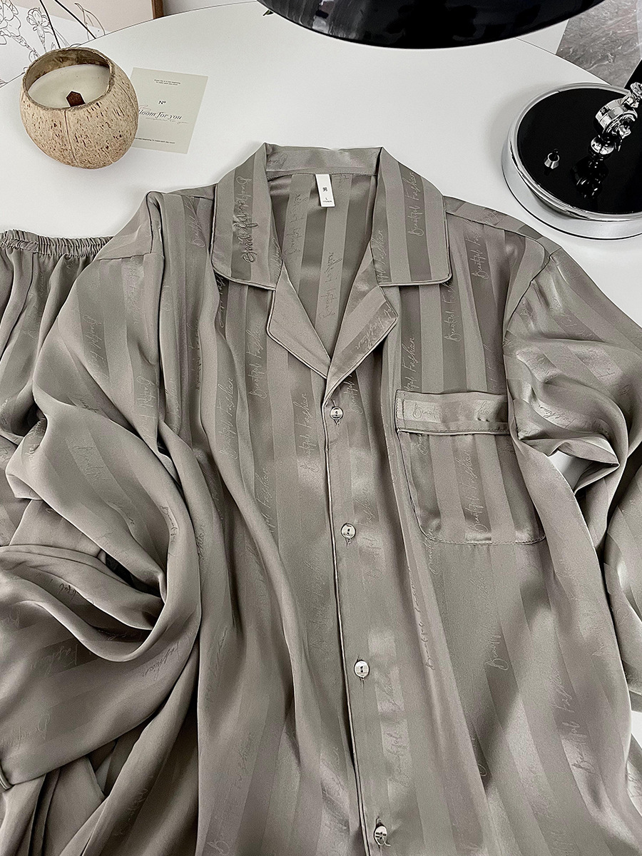 Мужской комплект домашней одежды из легкого люксового жаккарда с вышивкой из ледяного шелка, высококачественный, осенний, с длинными рукавами