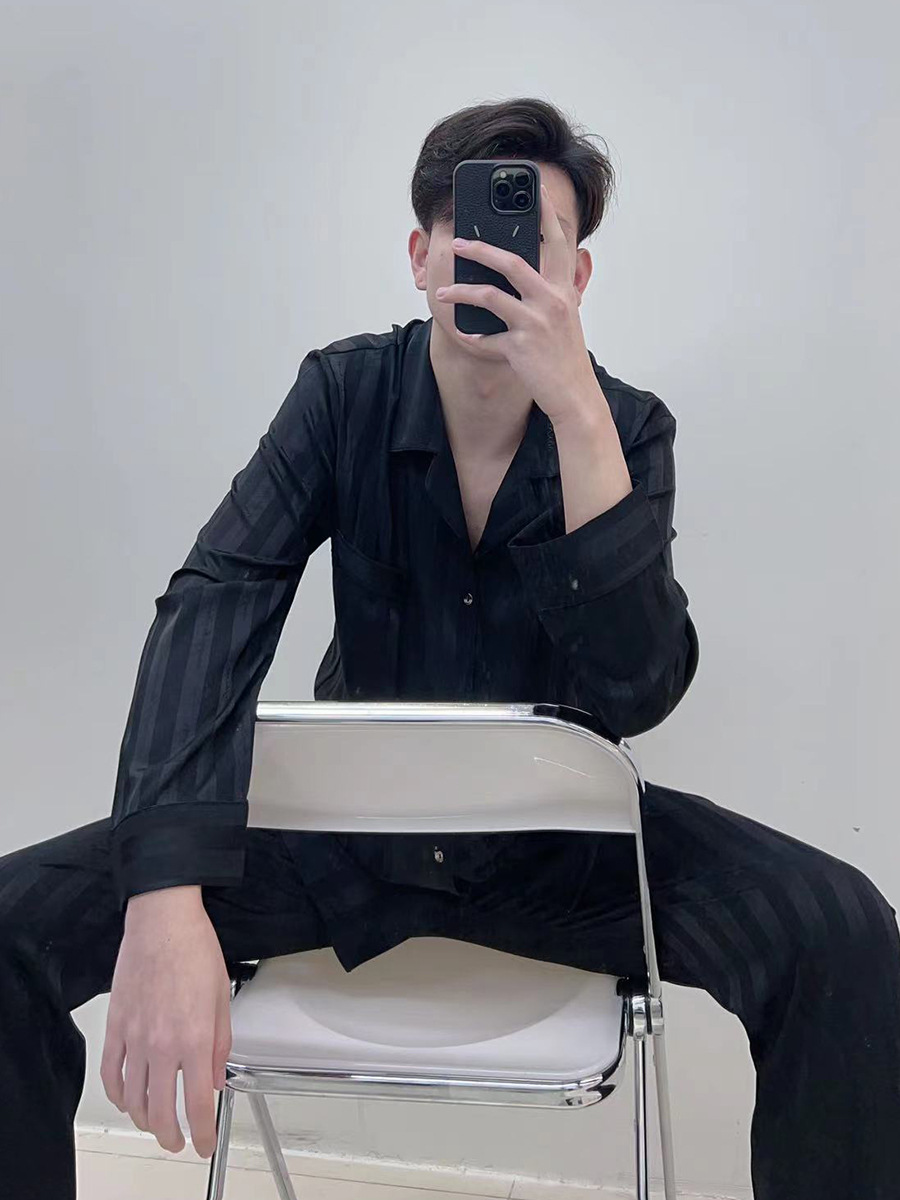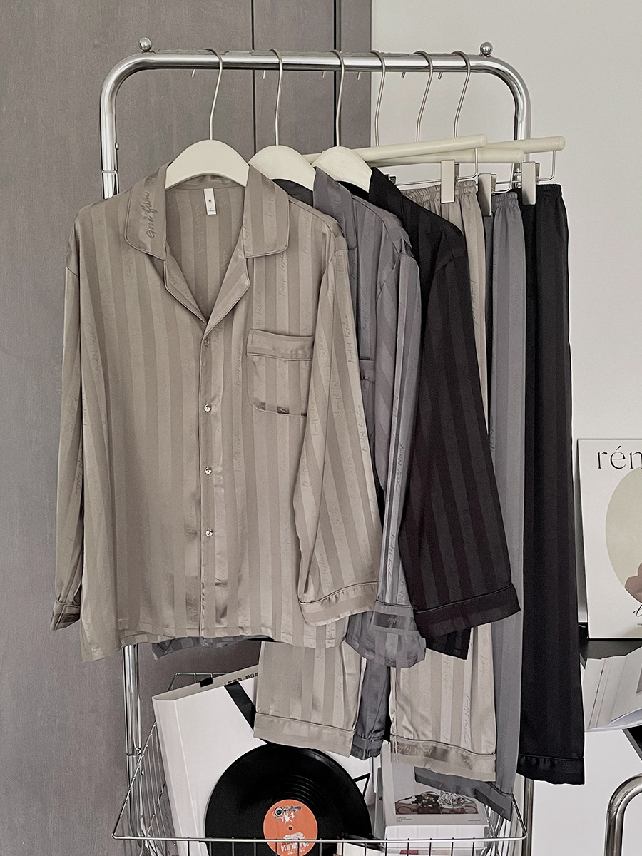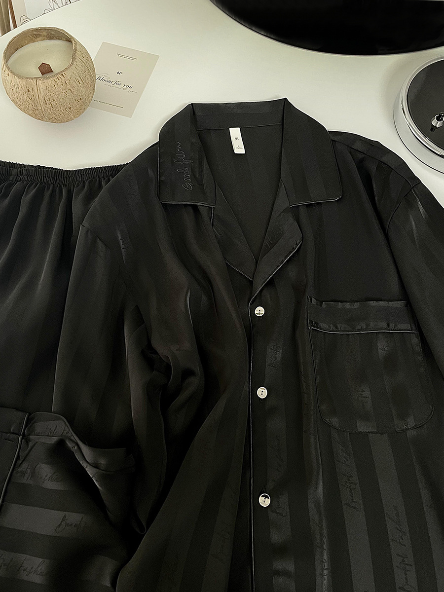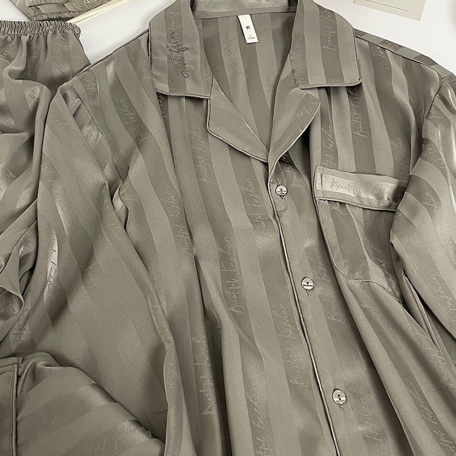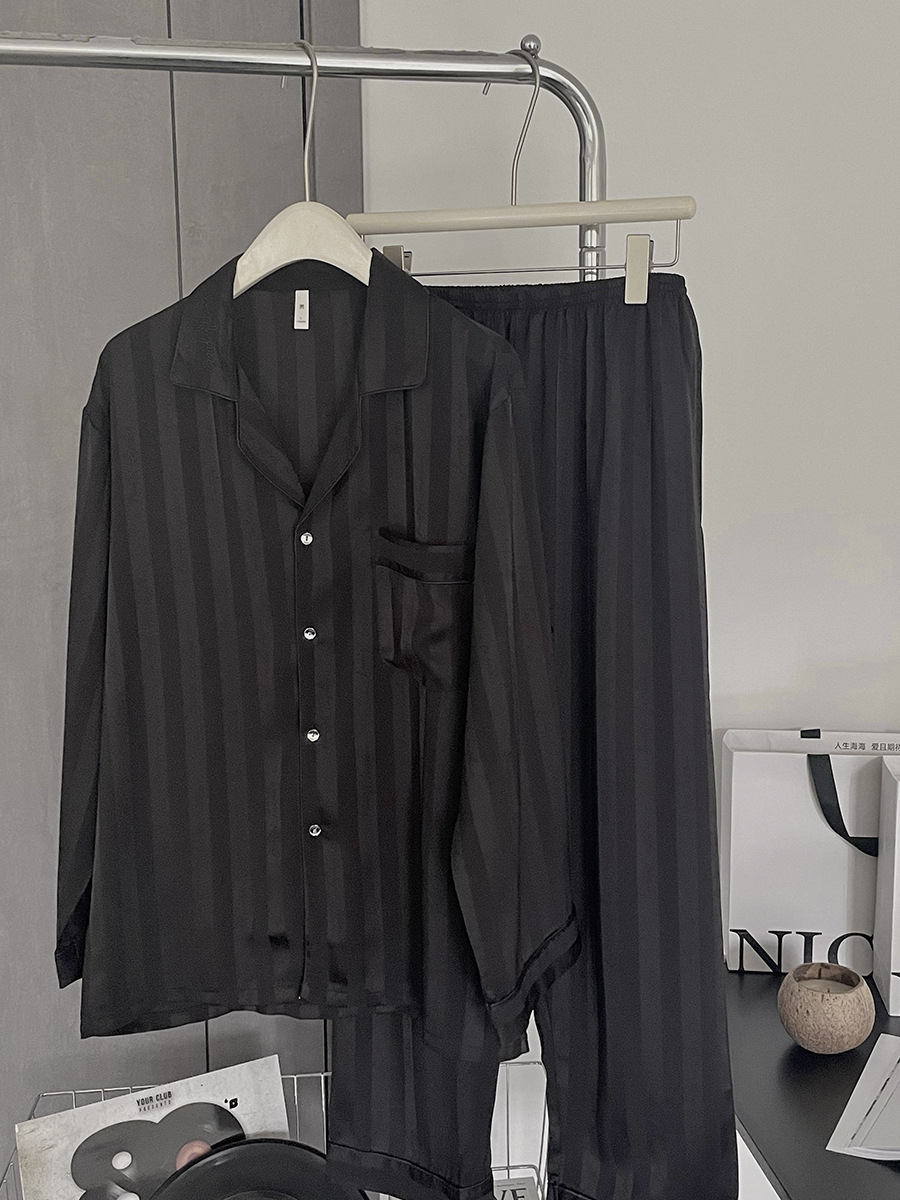 Мужской комплект домашней одежды из легкого люксового жаккарда с вышивкой из ледяного шелка, высококачественный, осенний, с длинными рукавами