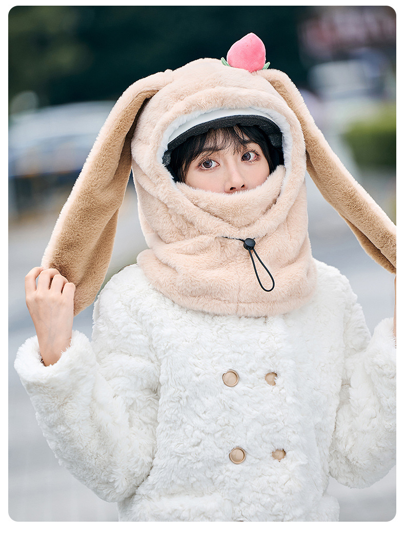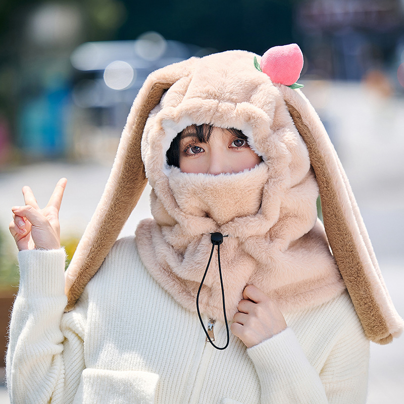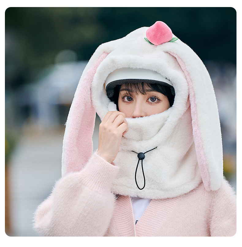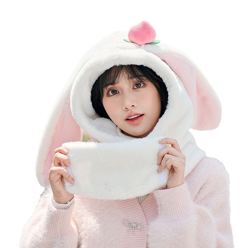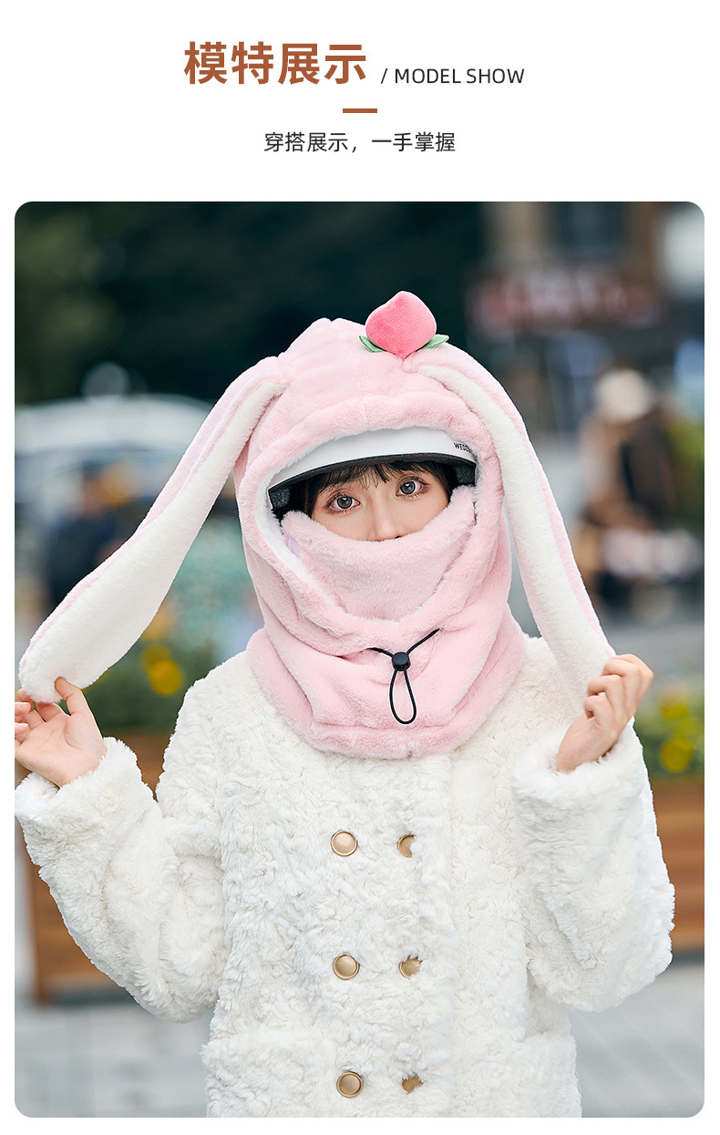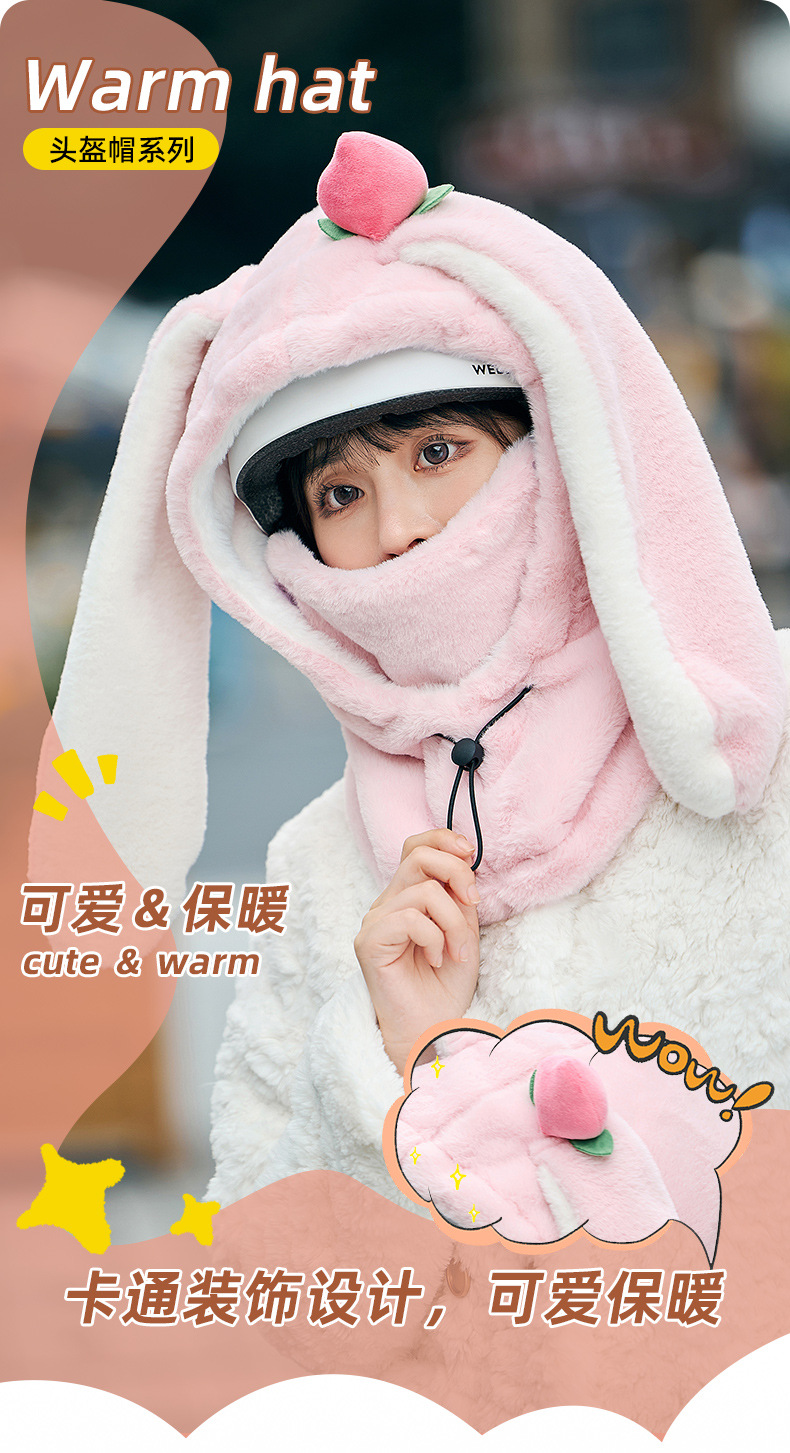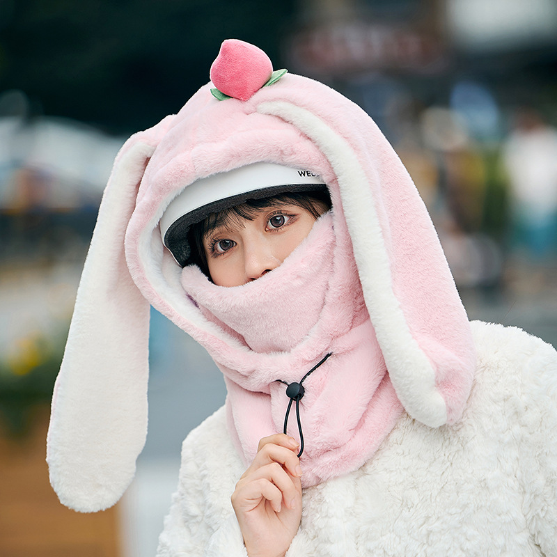 Зимняя теплая персиковая маска кролика, шапка и шарф, интегрированный Xiaomei в одном стиле, уличный лыжный и велосипедный шлем, милая шапка
