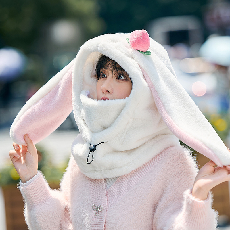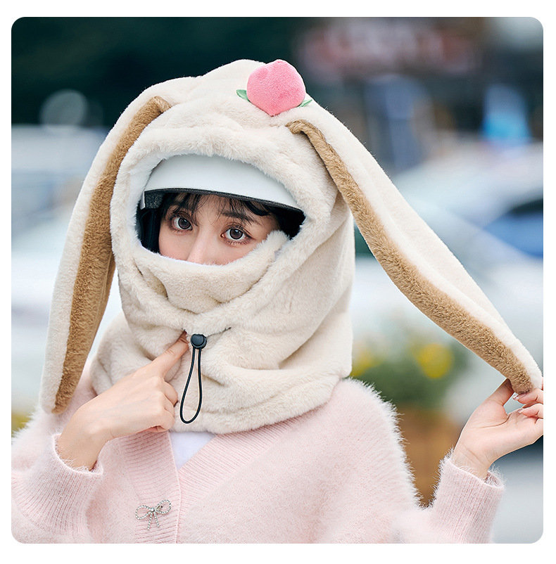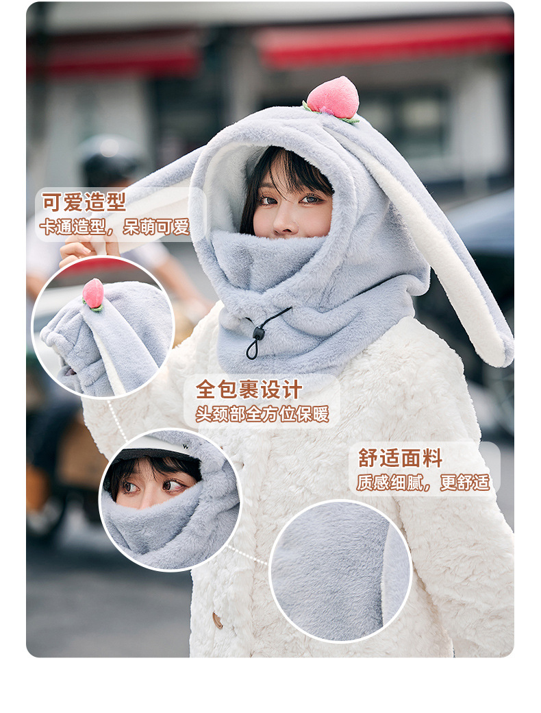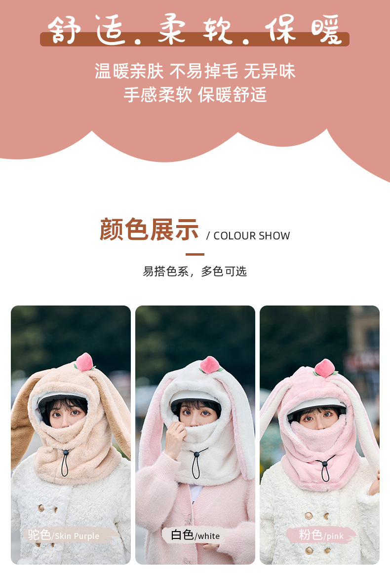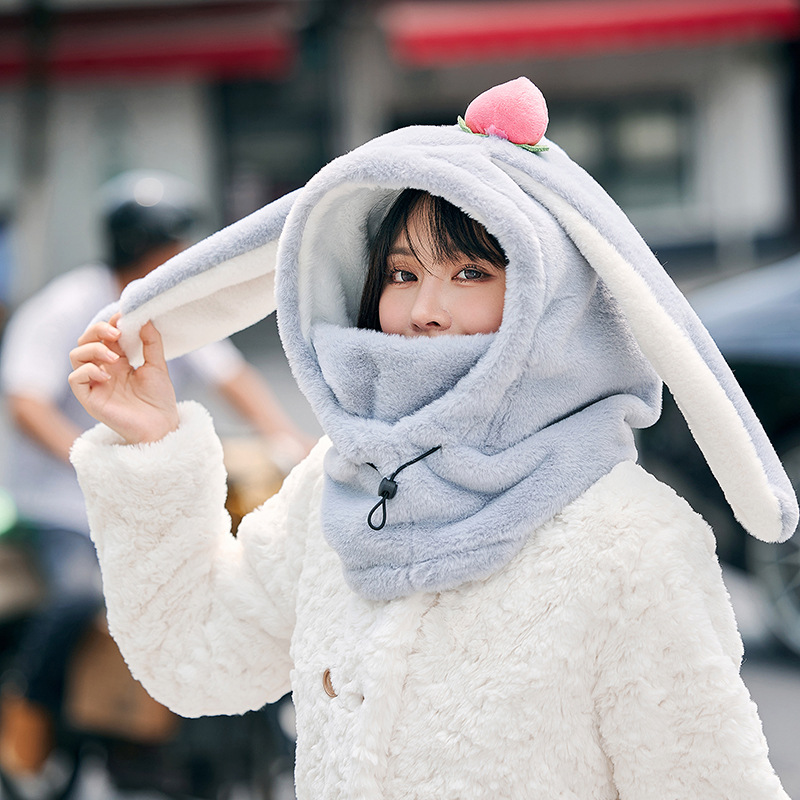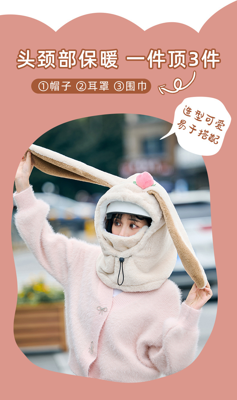 Зимняя теплая персиковая маска кролика, шапка и шарф, интегрированный Xiaomei в одном стиле, уличный лыжный и велосипедный шлем, милая шапка