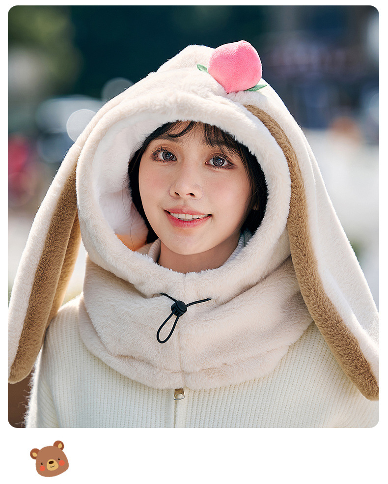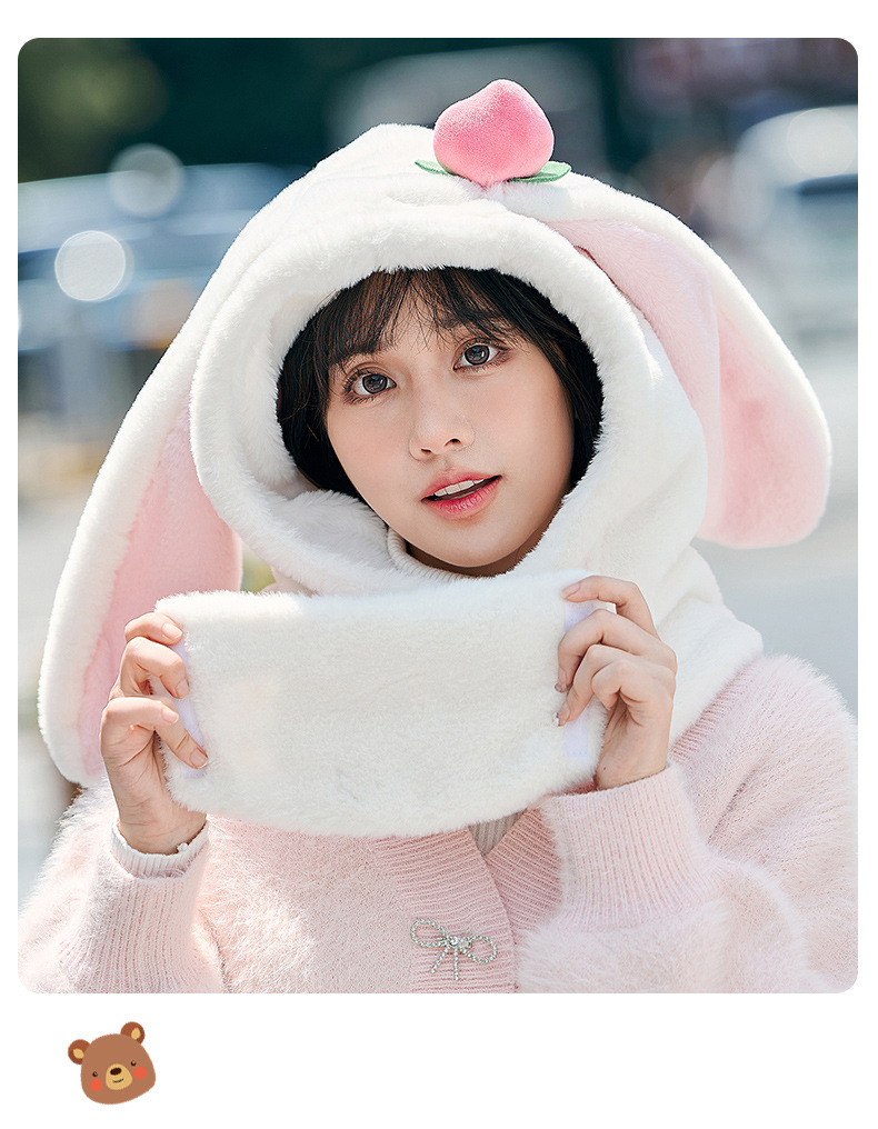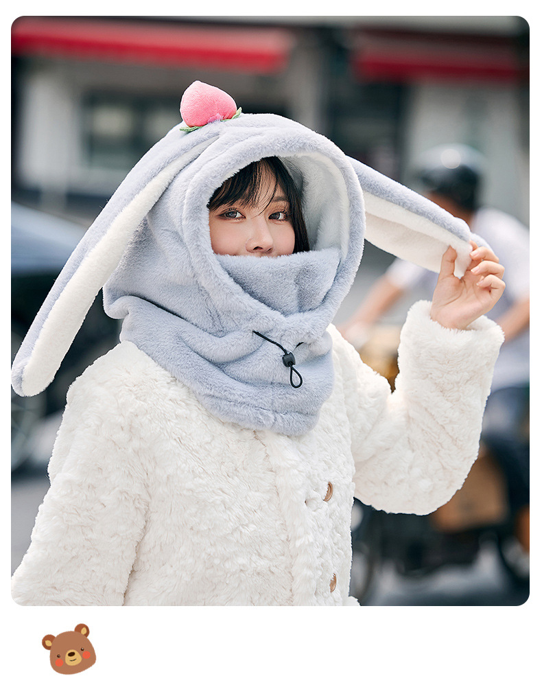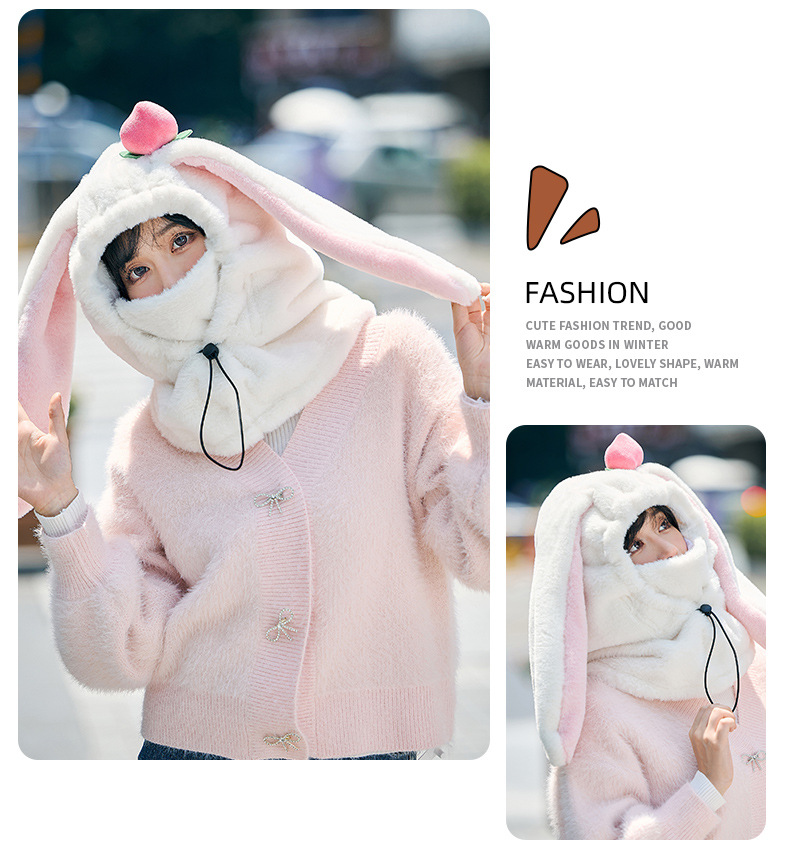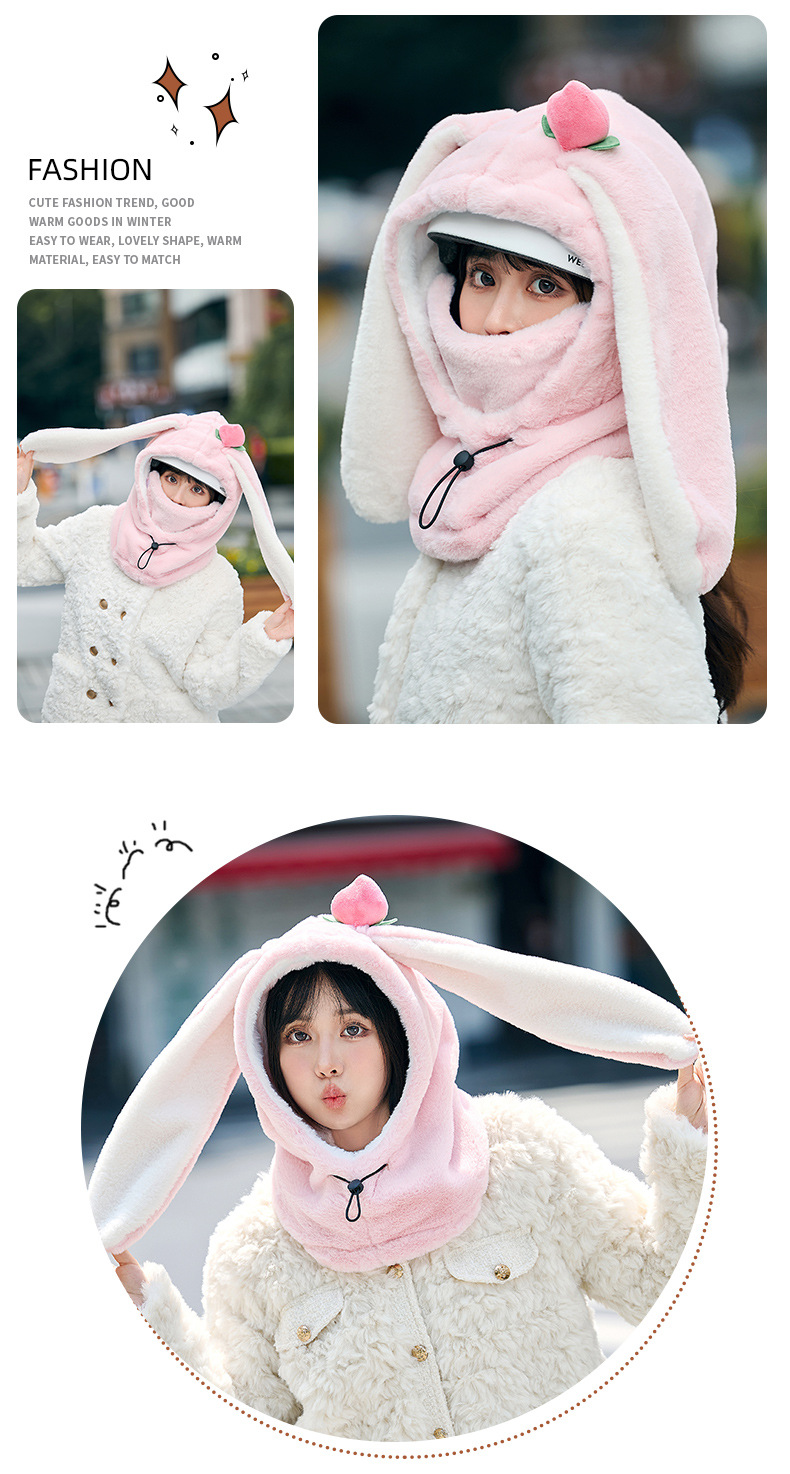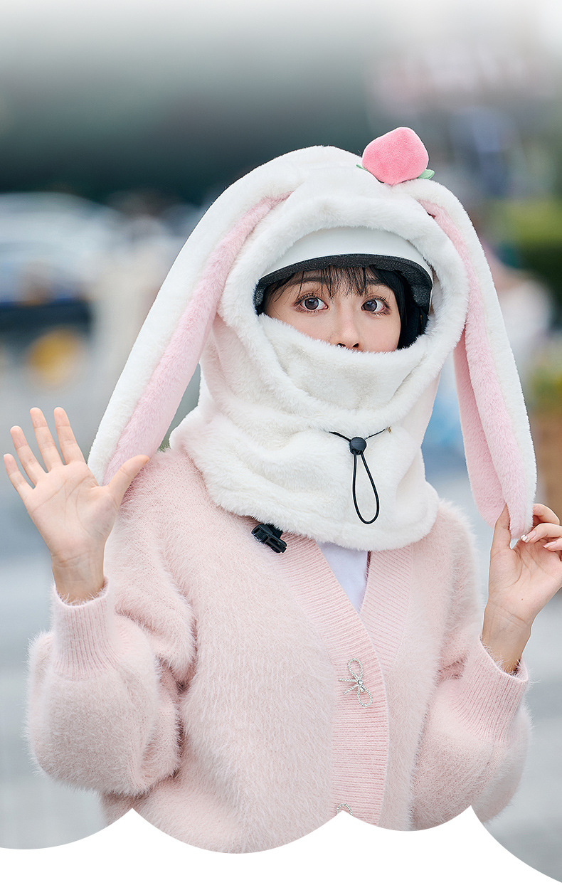 Зимняя теплая персиковая маска кролика, шапка и шарф, интегрированный Xiaomei в одном стиле, уличный лыжный и велосипедный шлем, милая шапка