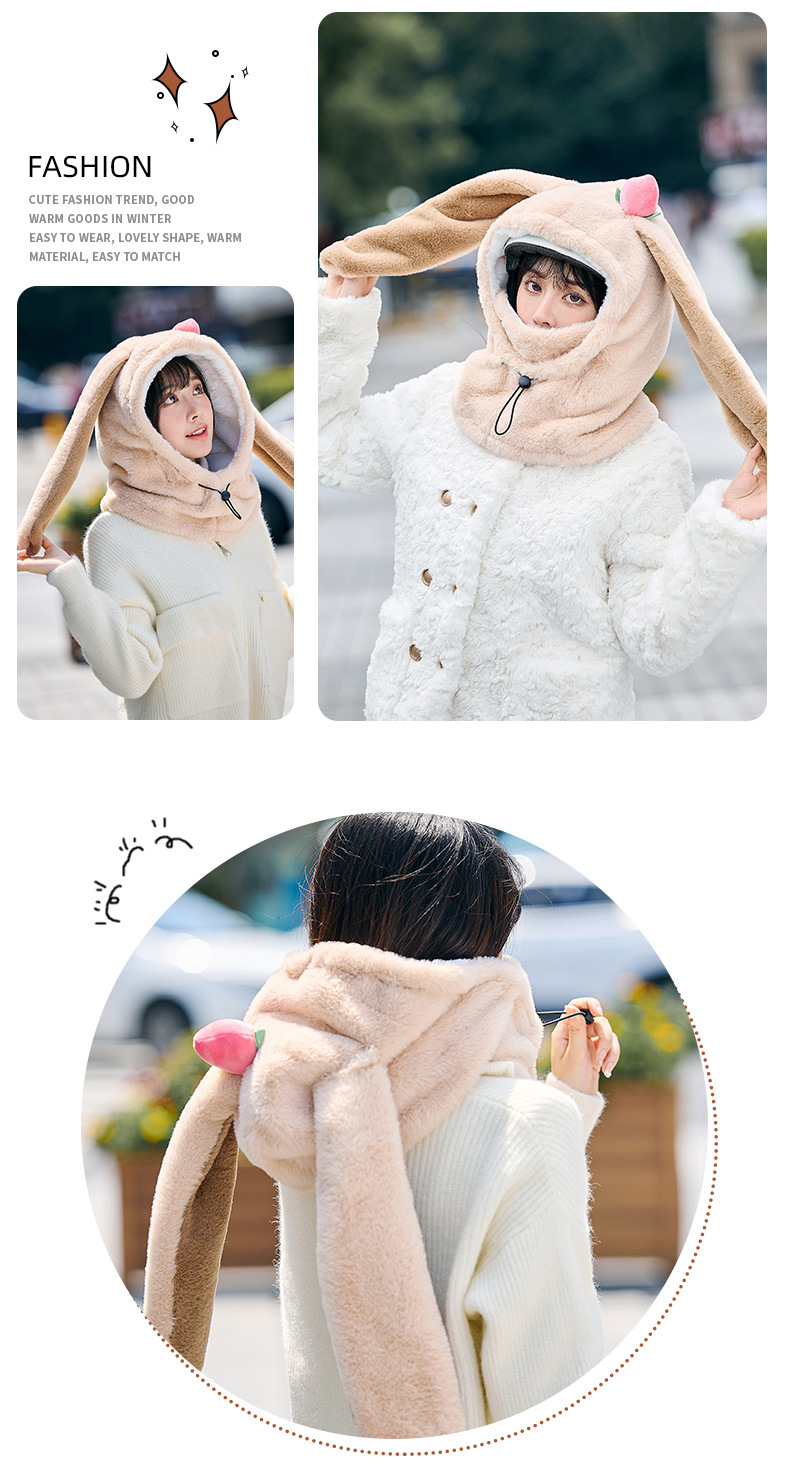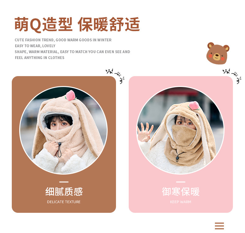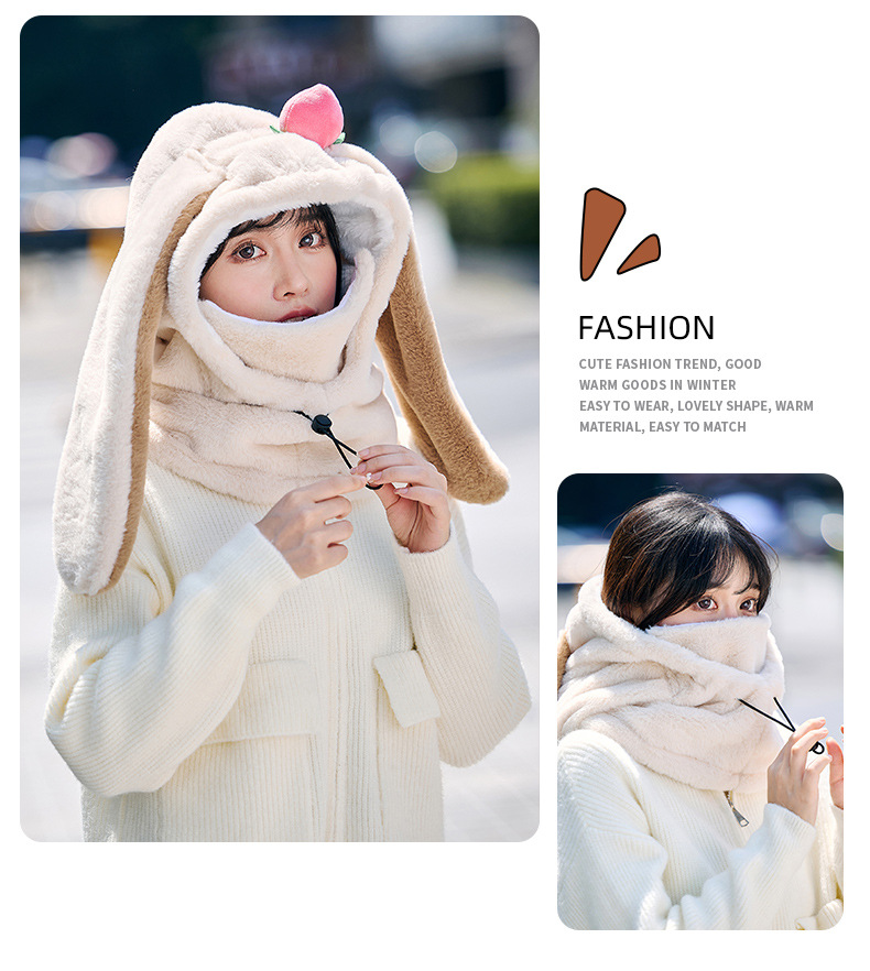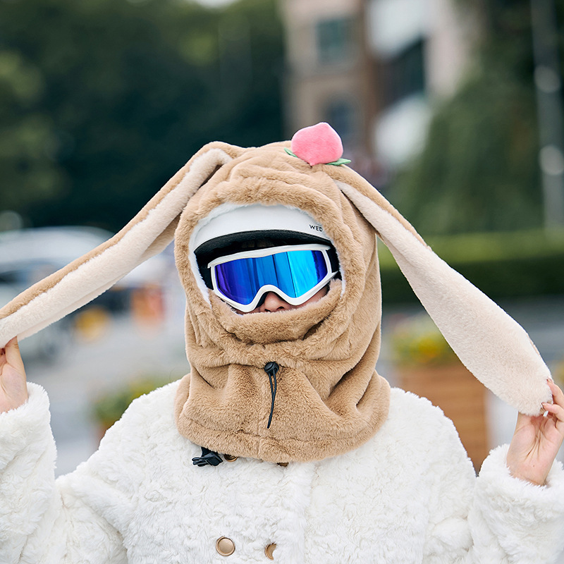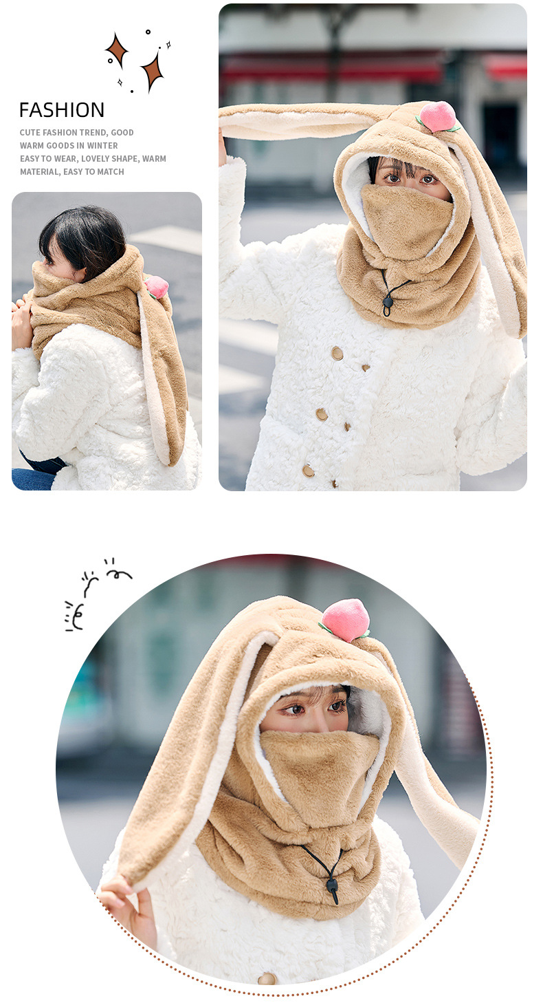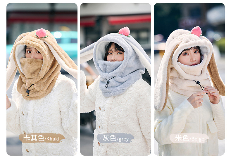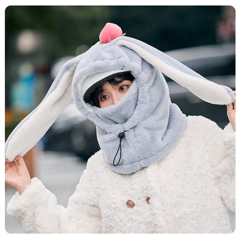 Зимняя теплая персиковая маска кролика, шапка и шарф, интегрированный Xiaomei в одном стиле, уличный лыжный и велосипедный шлем, милая шапка