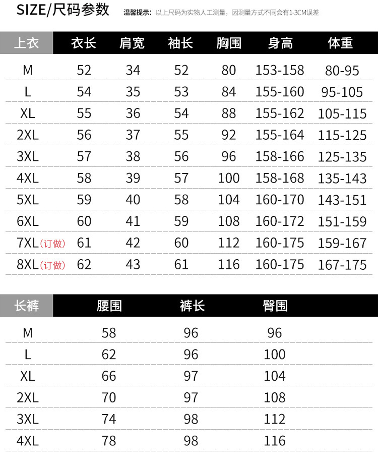 М [40,00 кг-45,00 кг]; Л [45,00 кг-50,00 кг]; XL [50,00 кг-55,00 кг]; XXL [55,00 кг-60,00 кг]; 3XL [60,00 кг-65,00 кг]; 4XL [65,00 кг-70,00 кг]; 5XL【 70-75kg 】; 6XL [75,00 кг-80,00 кг]