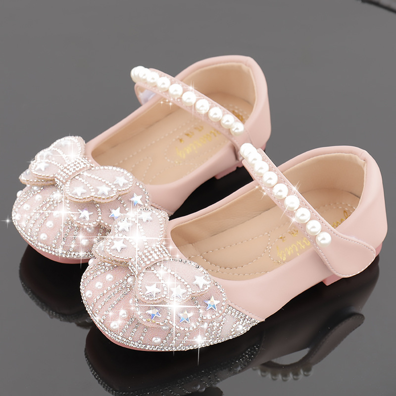 Туфли принцессы для девочек Туфли на мягкой подошве со стразами Однослойная обувь Детская обувь Маленькая кожаная обувь со стразами Новая детская обувь на мягкой подошве