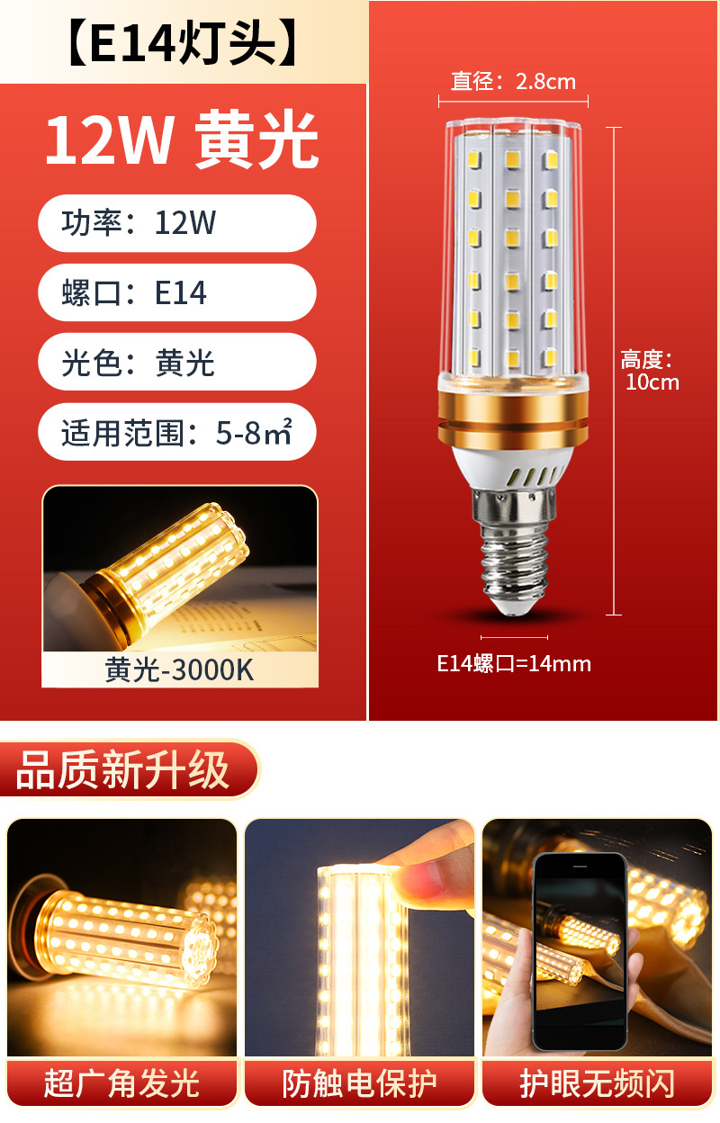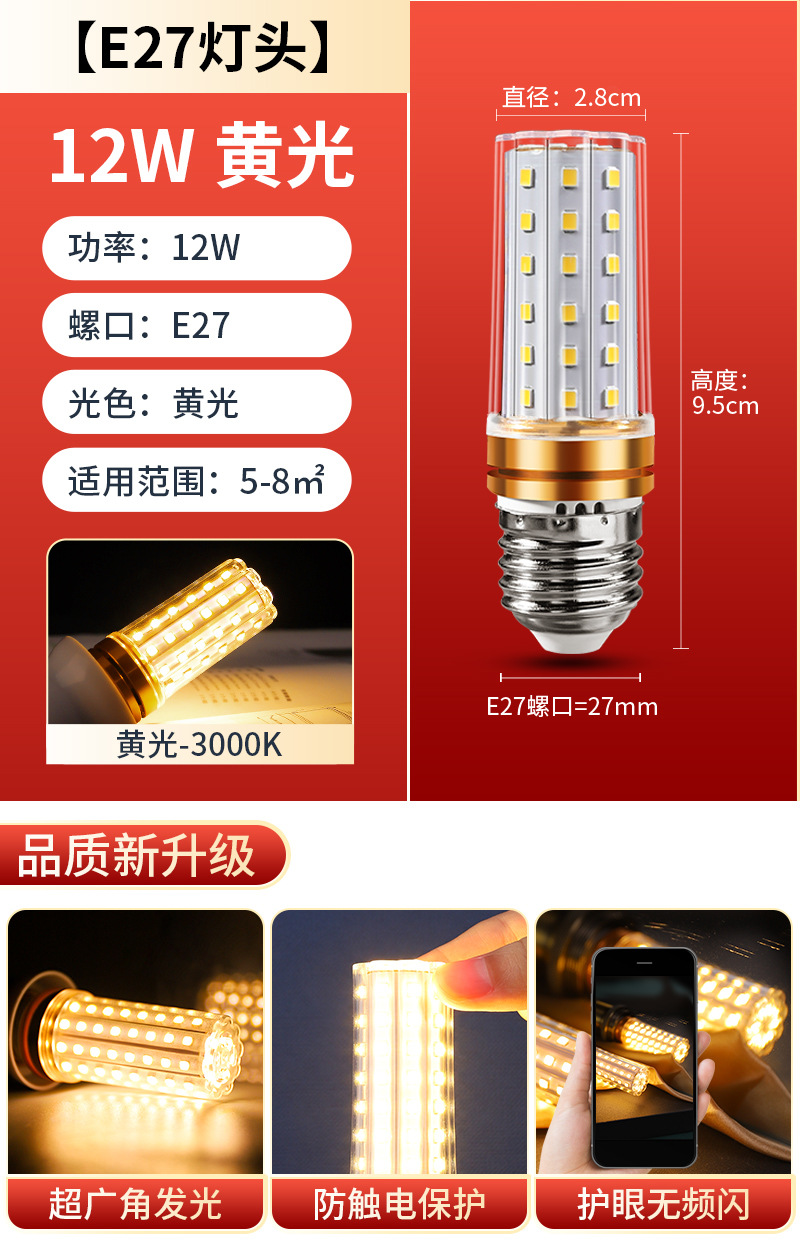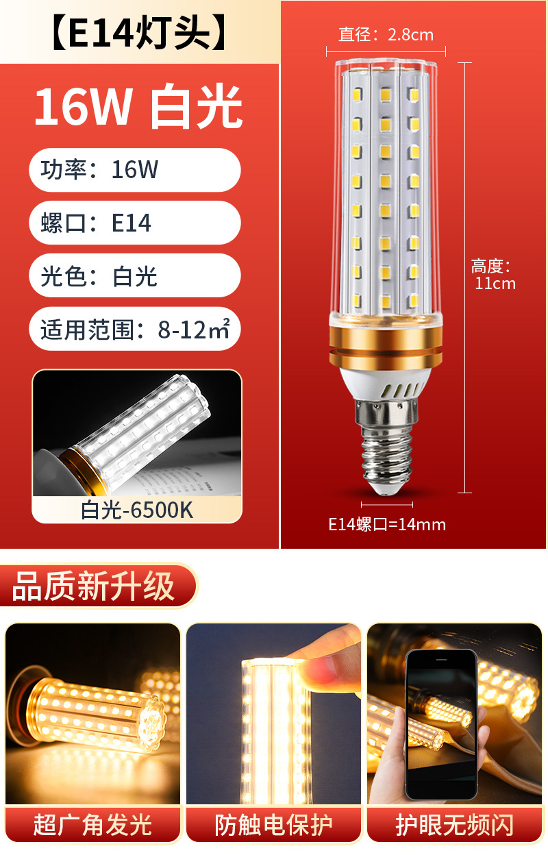Светодиодная лампа кукурузная лампа E14 маленькая винтовая горловина E27 энергосберегающая лампа с резьбой Бытовая супер яркая Трехцветная Подвесная лампа с затемнением источник света