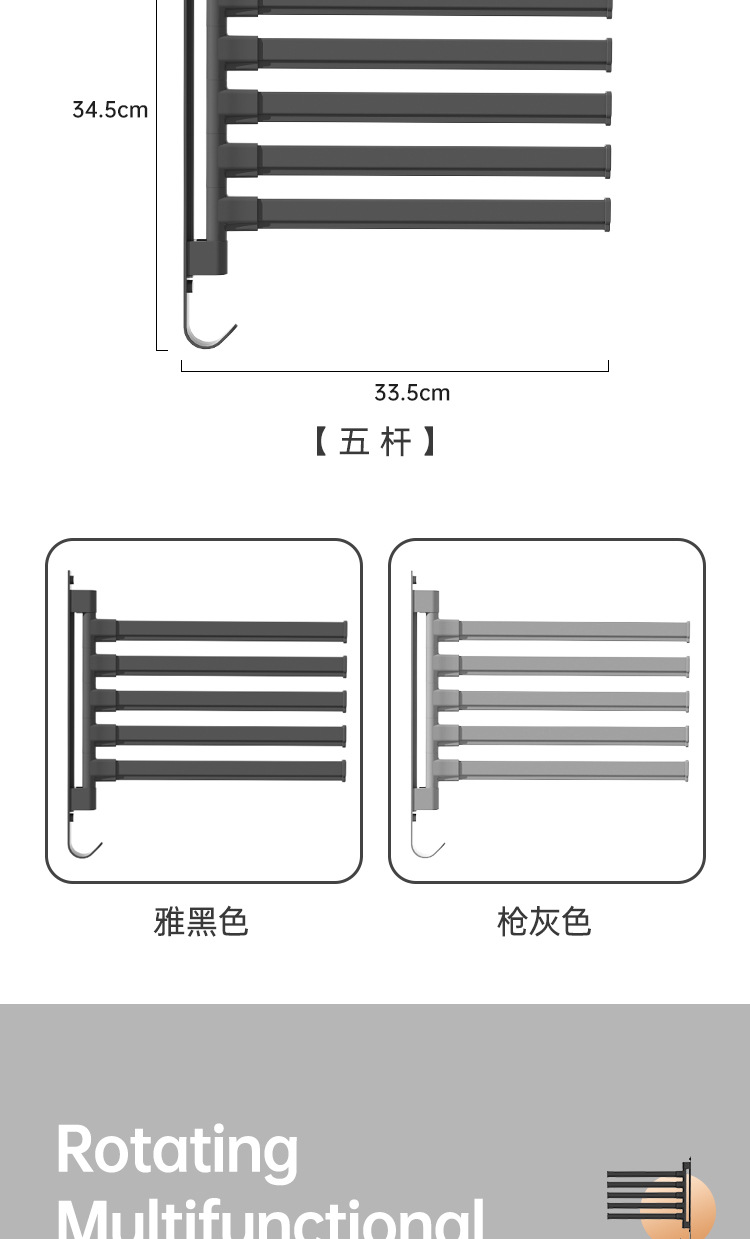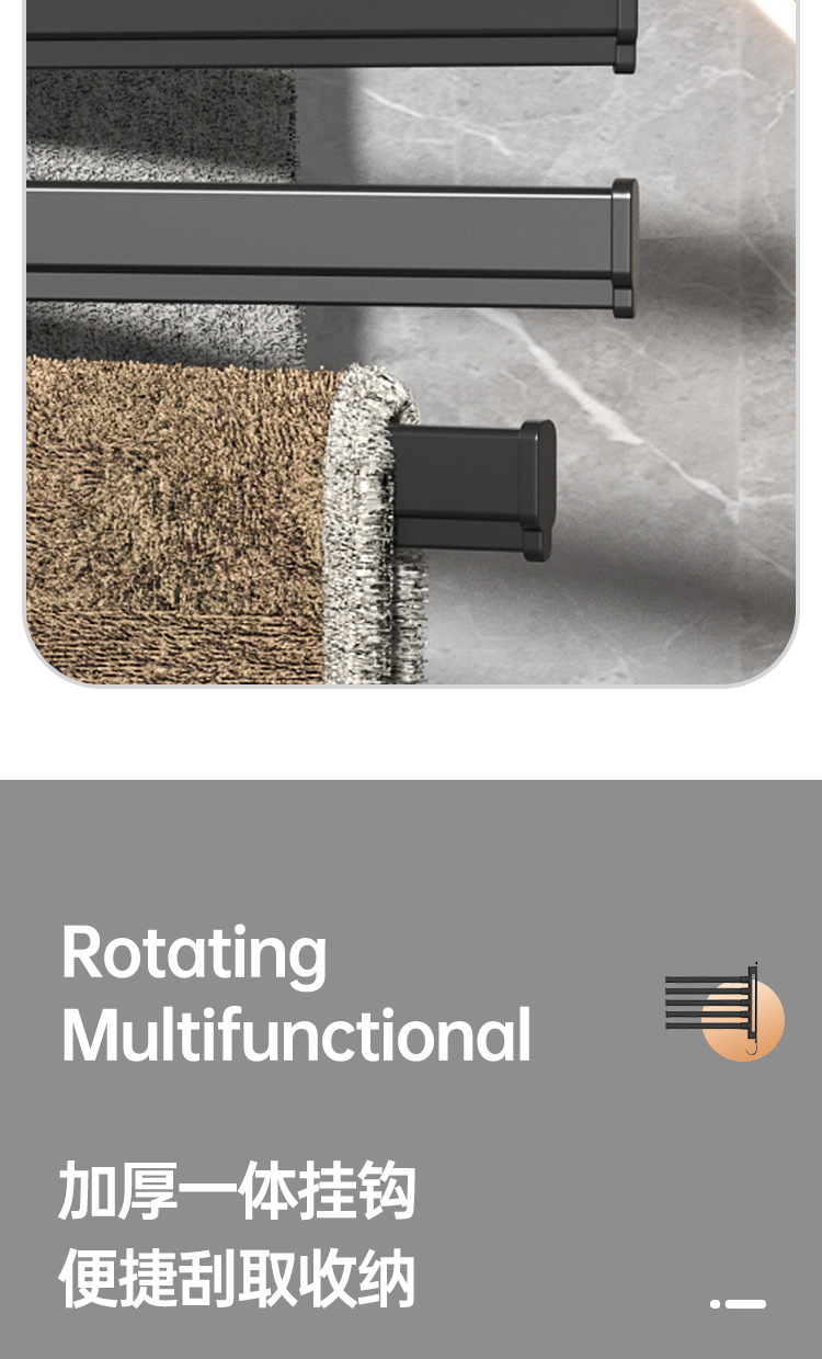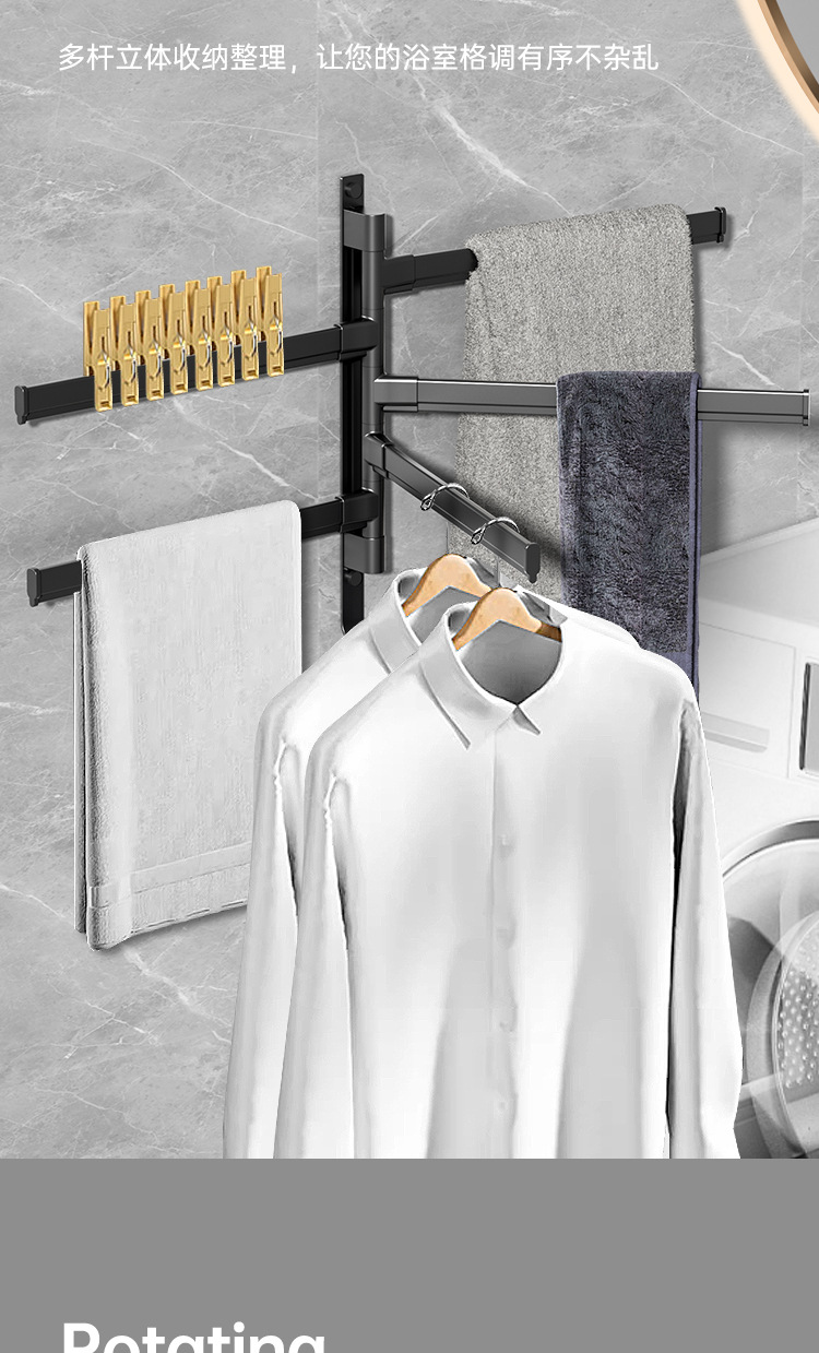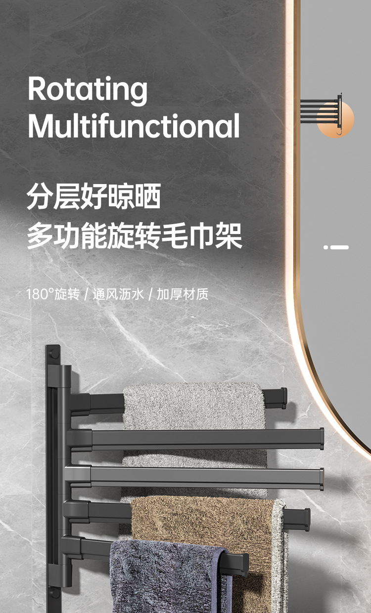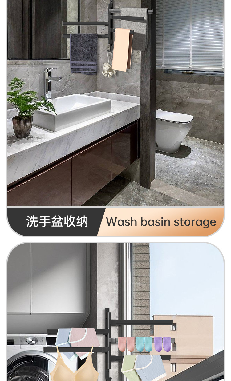 Вешалка для полотенец без перфорации Вращающаяся подвижная вешалка для полотенец Подвижная штанга для хранения в ванной Вешалка для полотенец для студенческого общежития