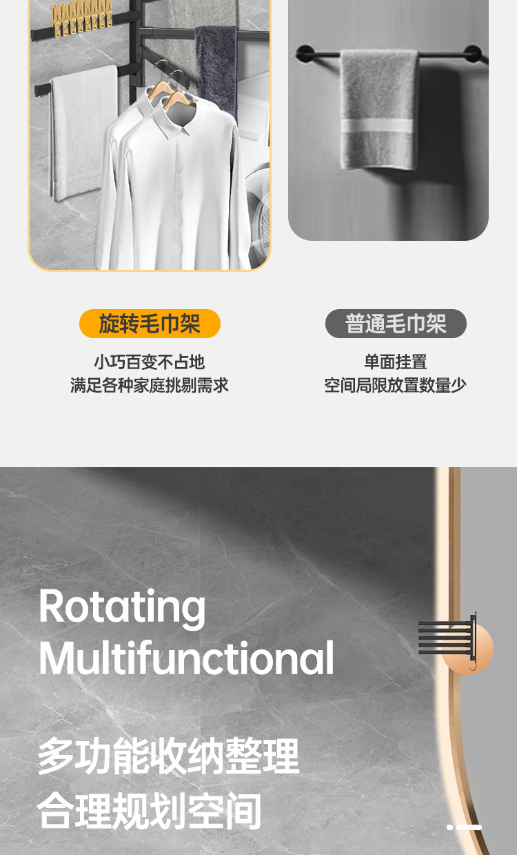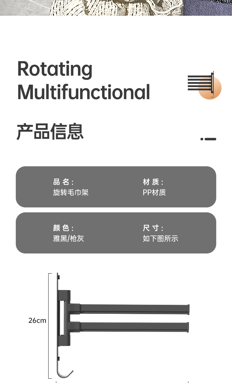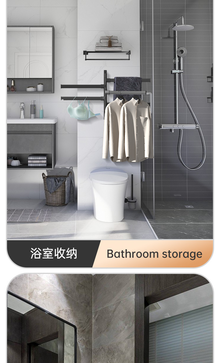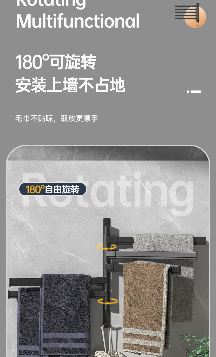Вешалка для полотенец без перфорации Вращающаяся подвижная вешалка для полотенец Подвижная штанга для хранения в ванной Вешалка для полотенец для студенческого общежития