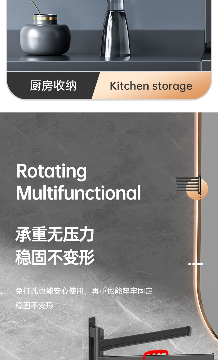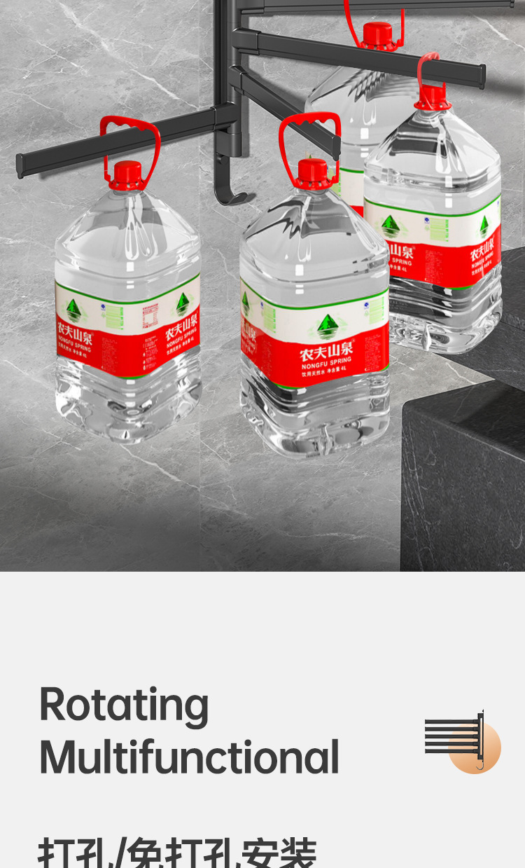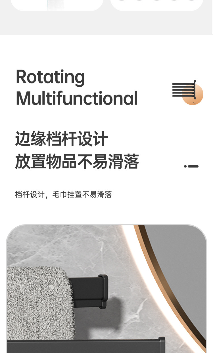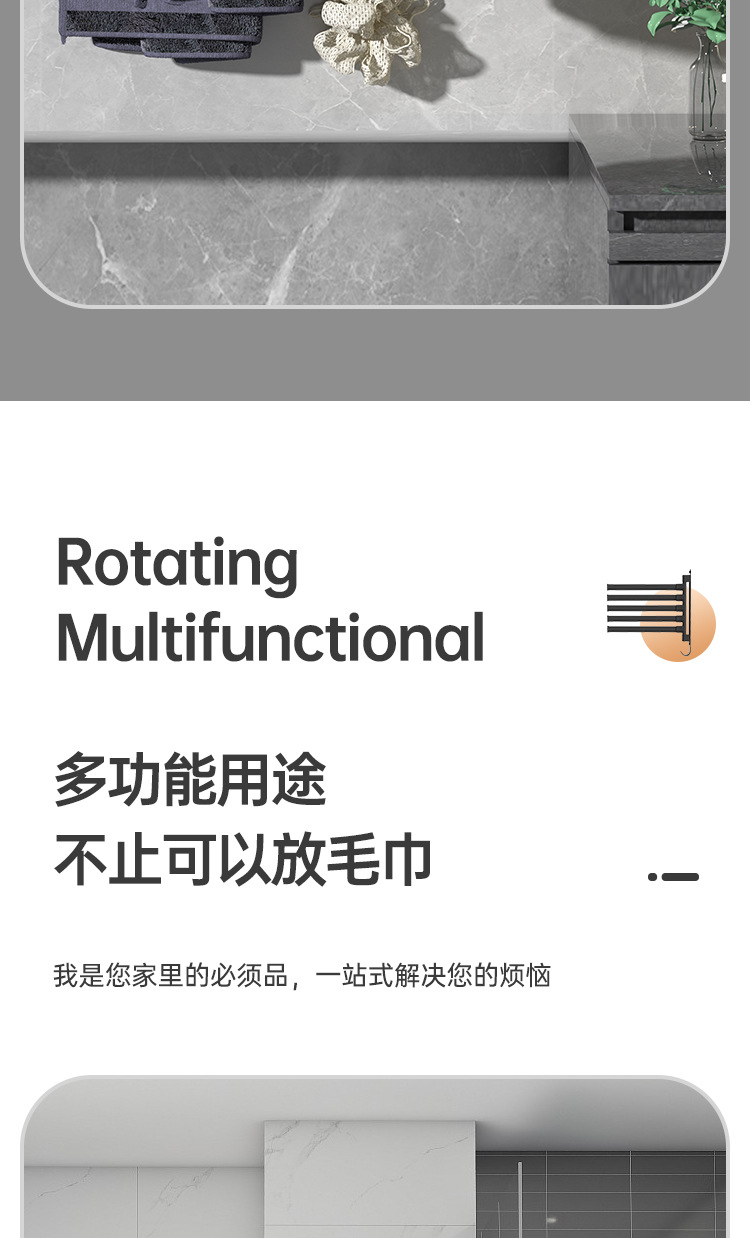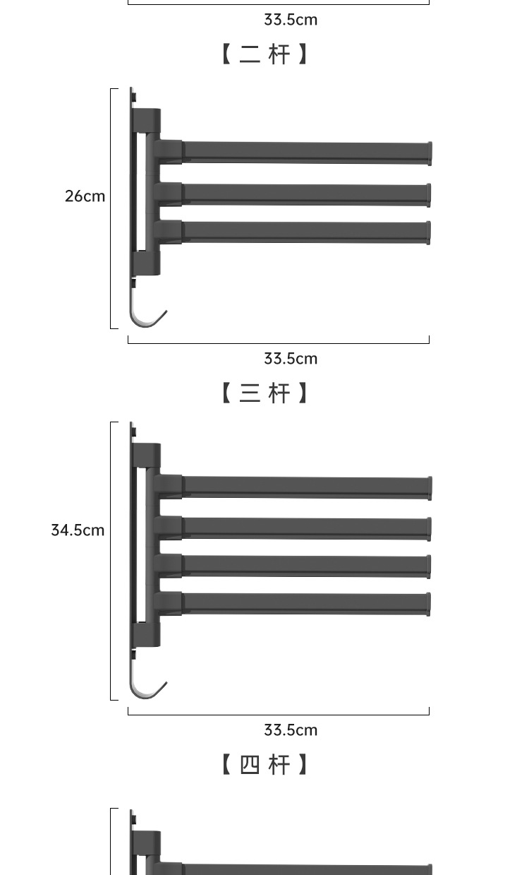 Вешалка для полотенец без перфорации Вращающаяся подвижная вешалка для полотенец Подвижная штанга для хранения в ванной Вешалка для полотенец для студенческого общежития