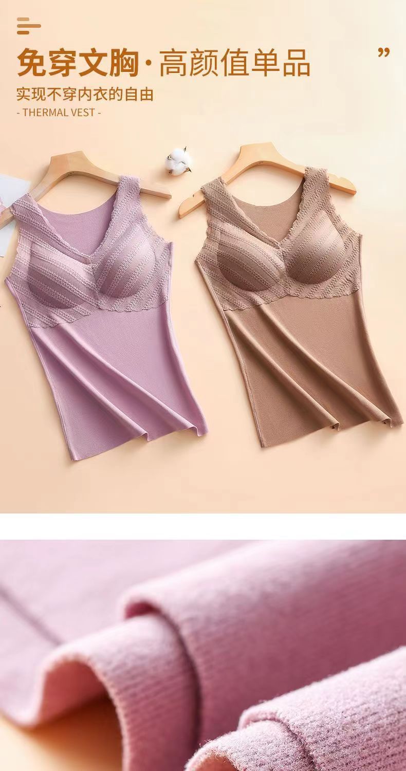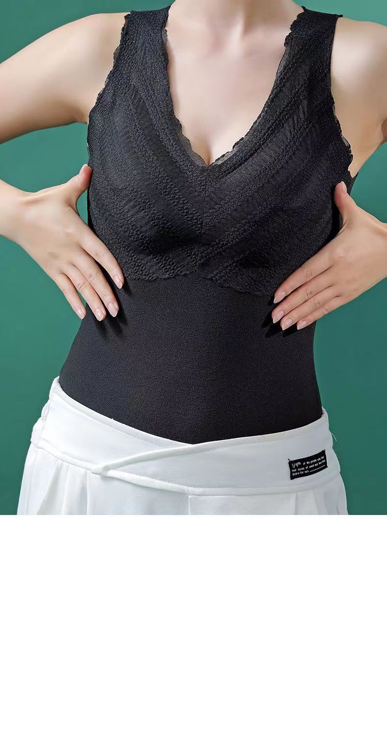 Осенне-зимний бархатный термо-жилет, Женский базовый топ без бюстгальтера с V-образным вырезом, облегающее удобное термобелье