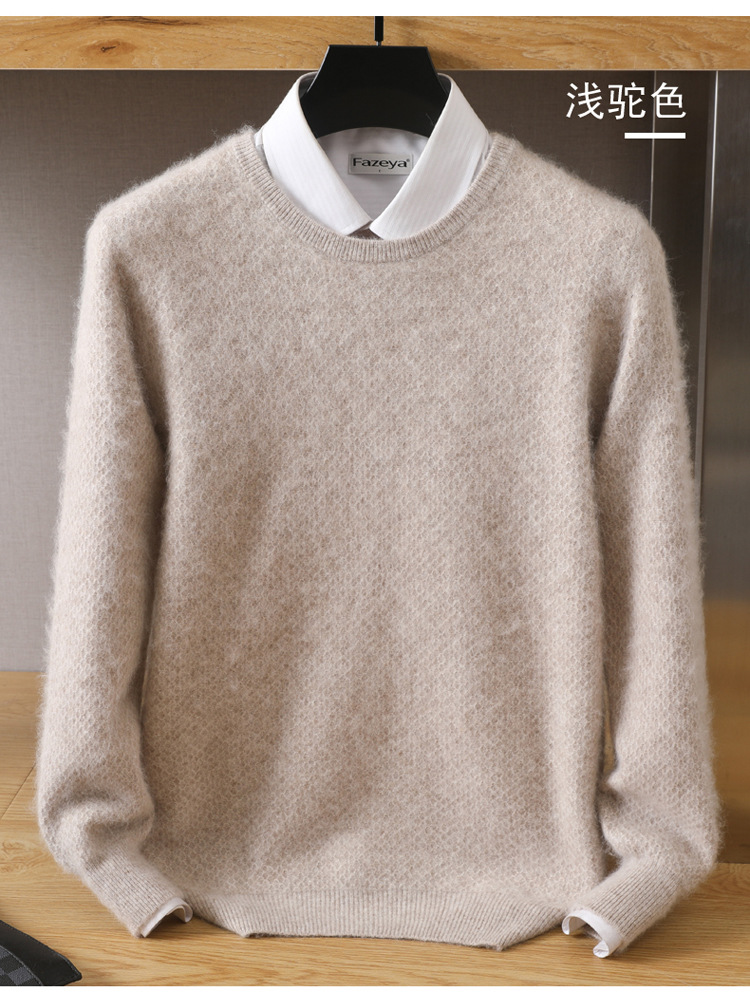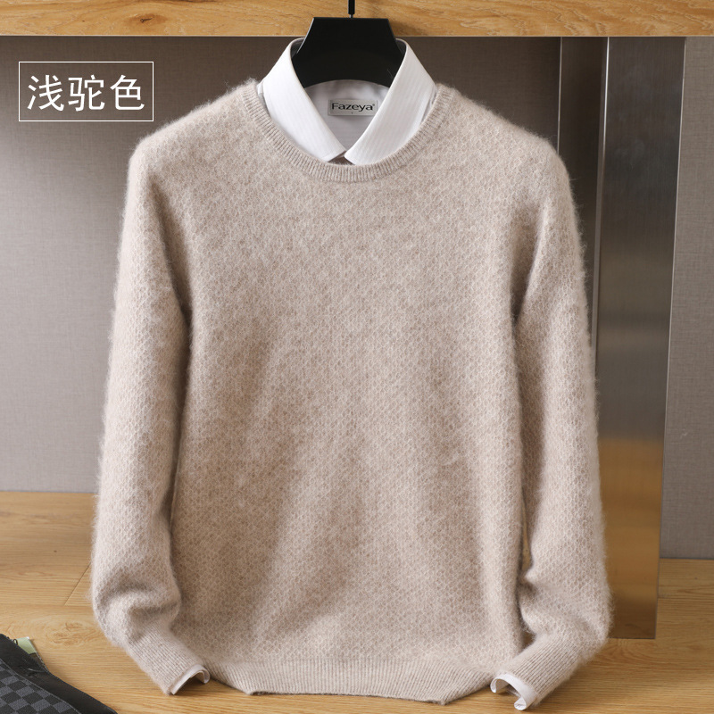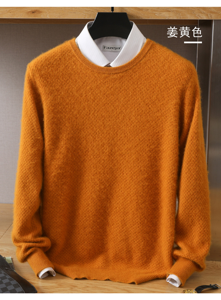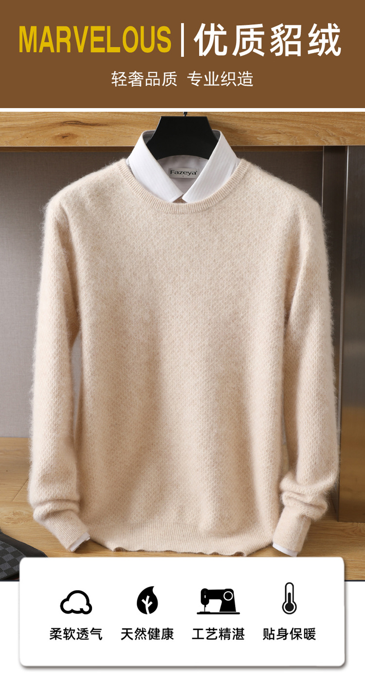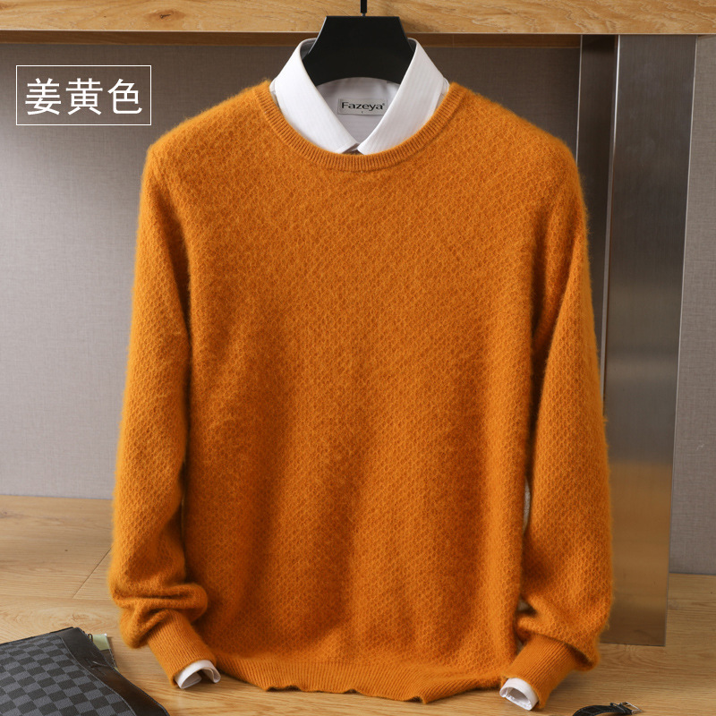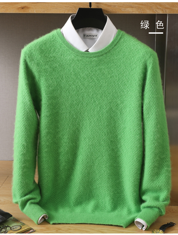 Новый осенне-зимний мужской свободный Однотонный свитер из норки с круглым вырезом, пуловер, повседневная трикотажная одежда, базовый свитер, шерстяной свитер
