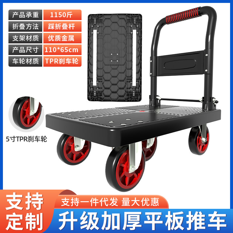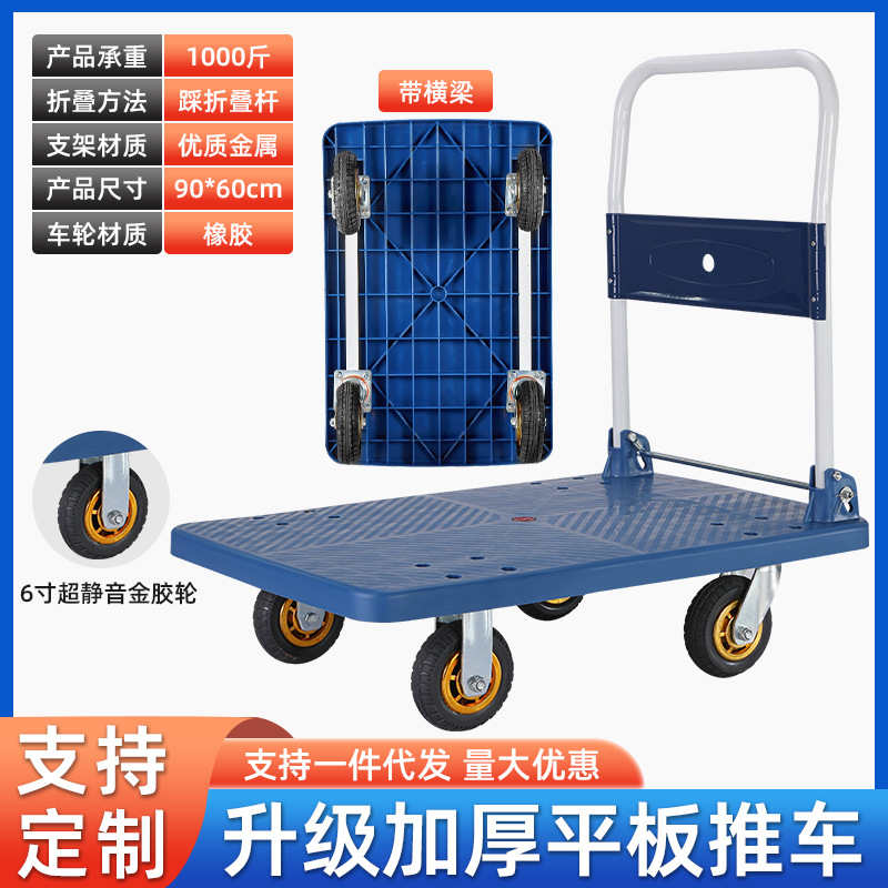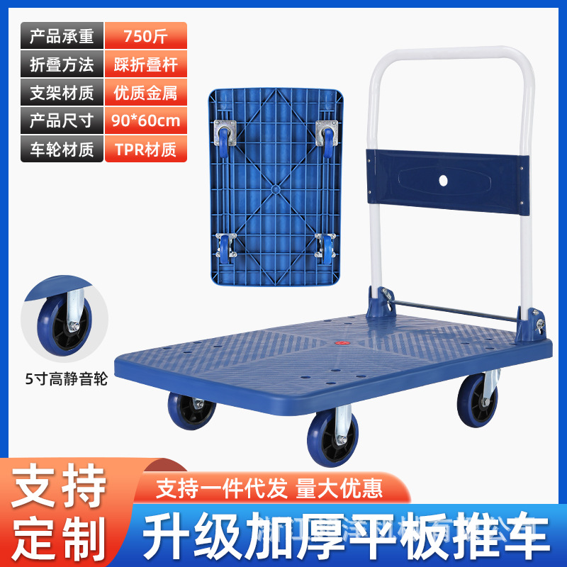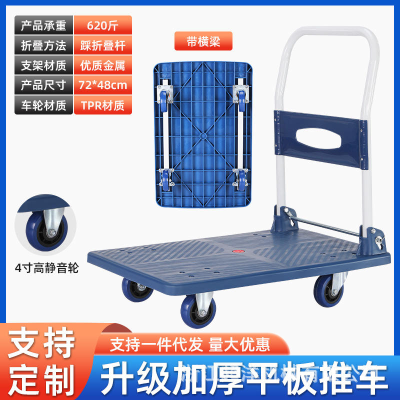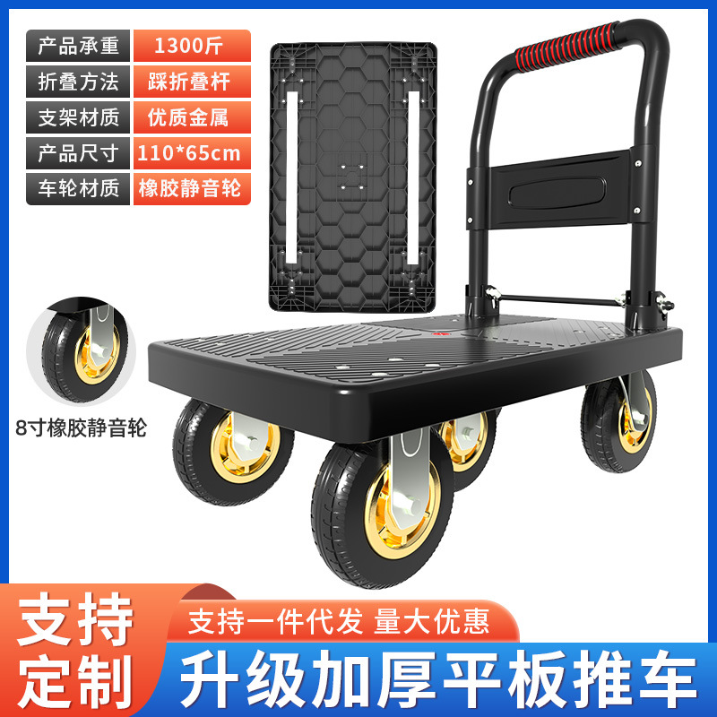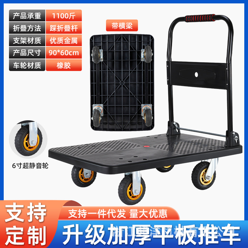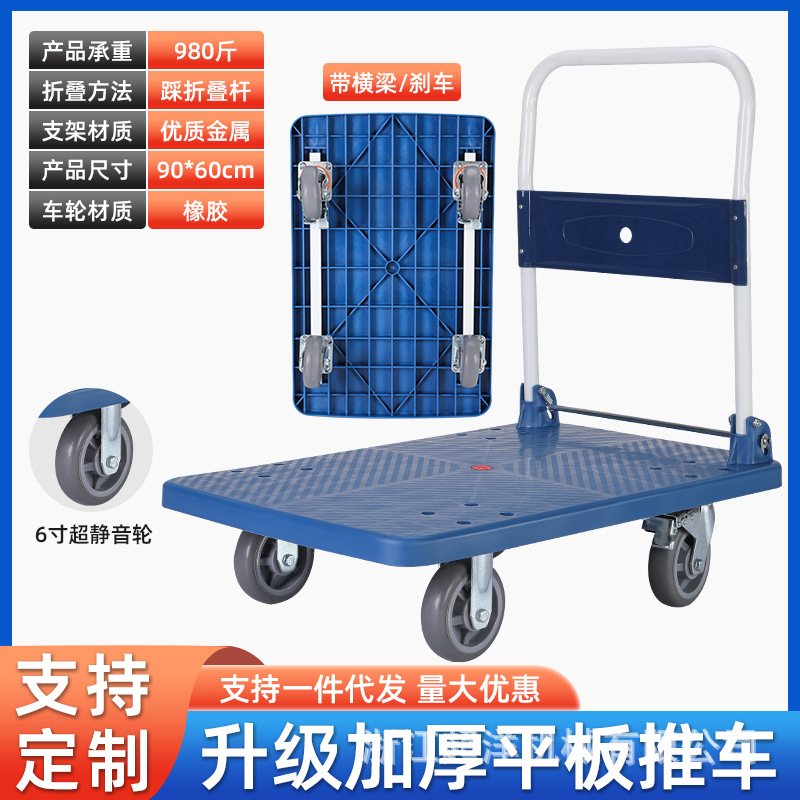 物流手推车一件代发多功能置物小推车拉货跨境静音折叠平板车