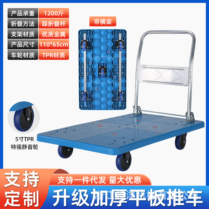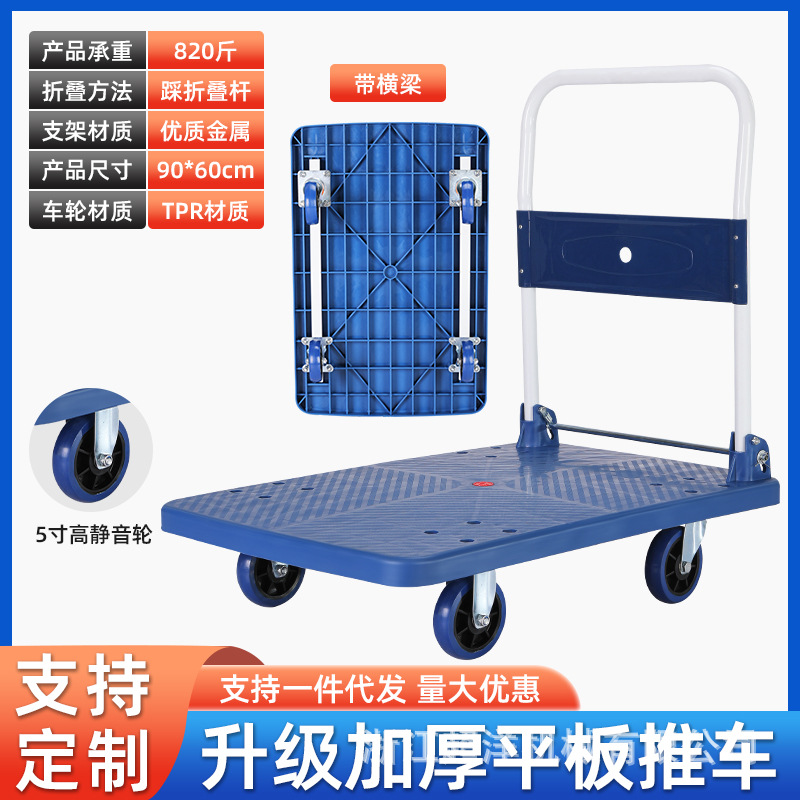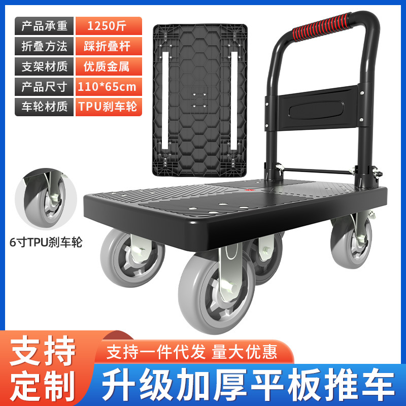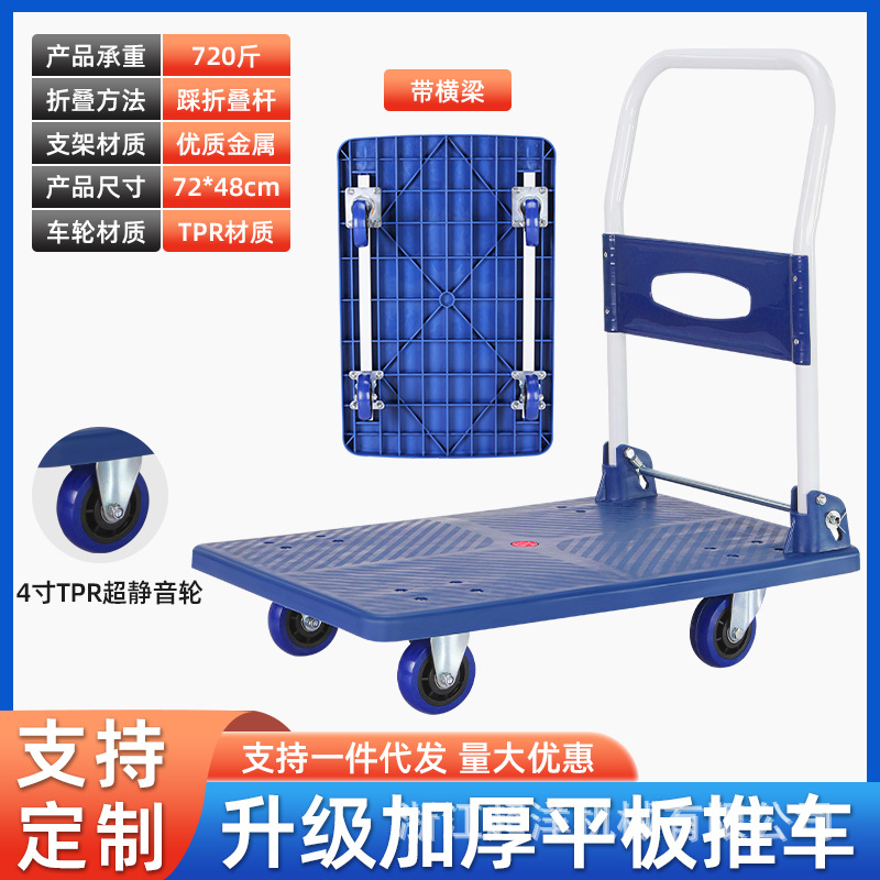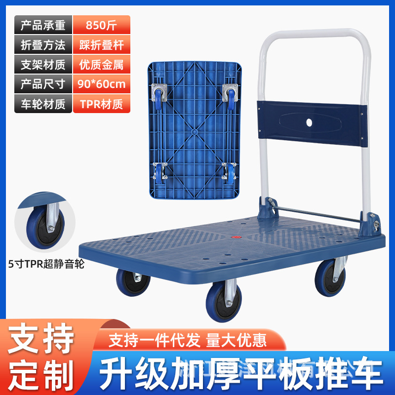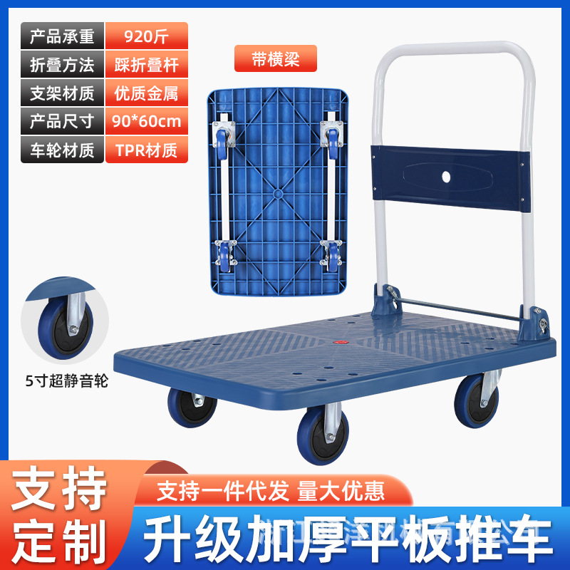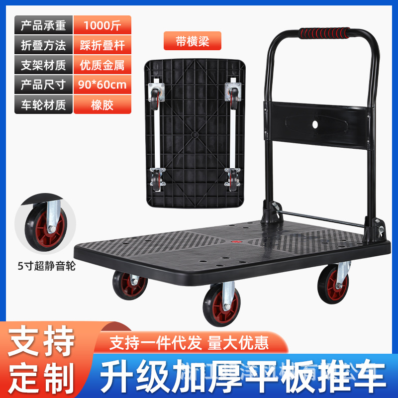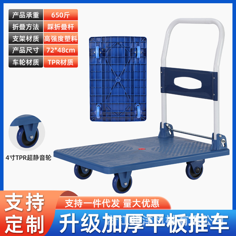 物流手推车一件代发多功能置物小推车拉货跨境静音折叠平板车