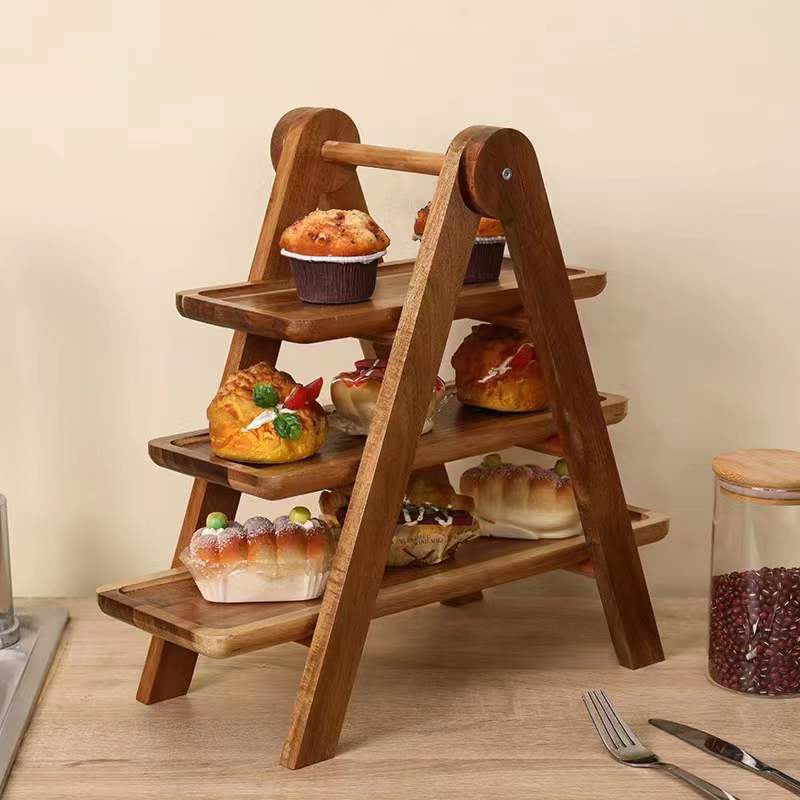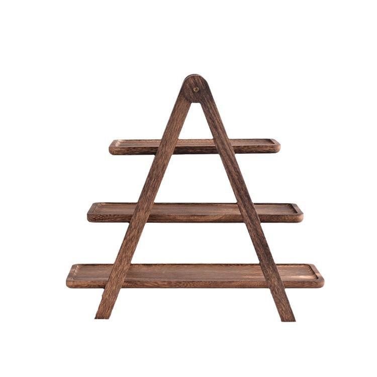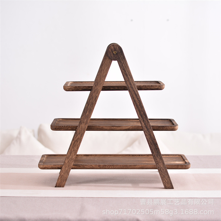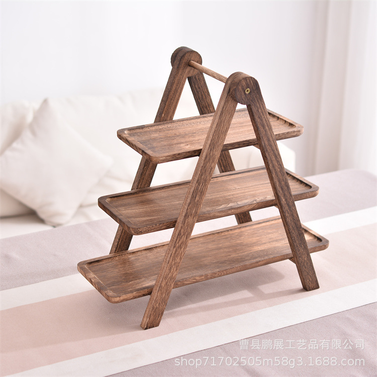 Креативный деревянный поднос Трехслойный фруктовый торт Стеллаж для хранения обеденной тарелки Многослойный поднос из цельного дерева Стеллаж для выставки товаров