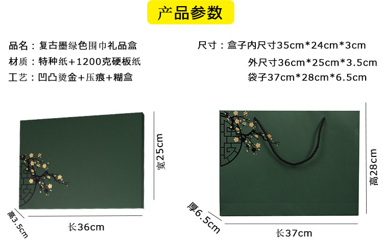 Темно-зеленый старинные кашемировый шарф подарочная коробка шаль шарф упаковочная коробка пустая коробка небо и земля крышка Чонсам Подарочная коробка оптом