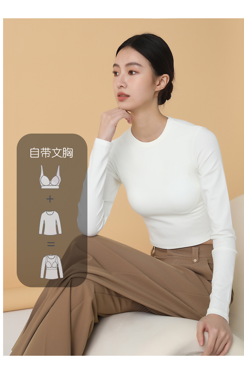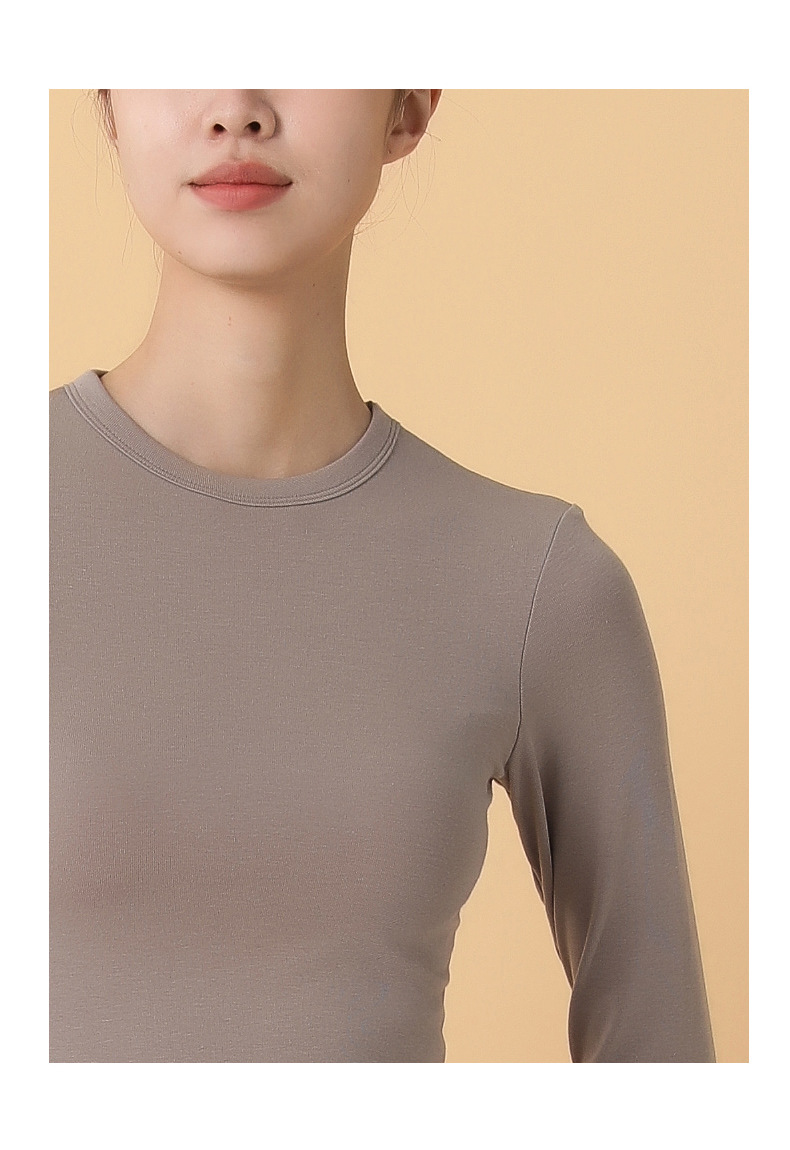 Женский бюстгальтер Цельный длинный внутренний топ Маленькая футболка с круглым вырезом Бюстгальтер с длинным рукавом Тонкая Базовая рубашка