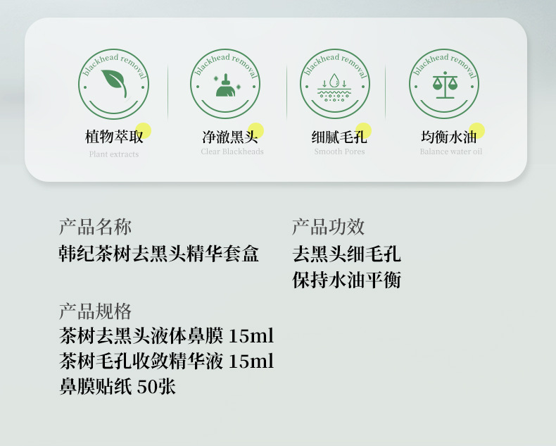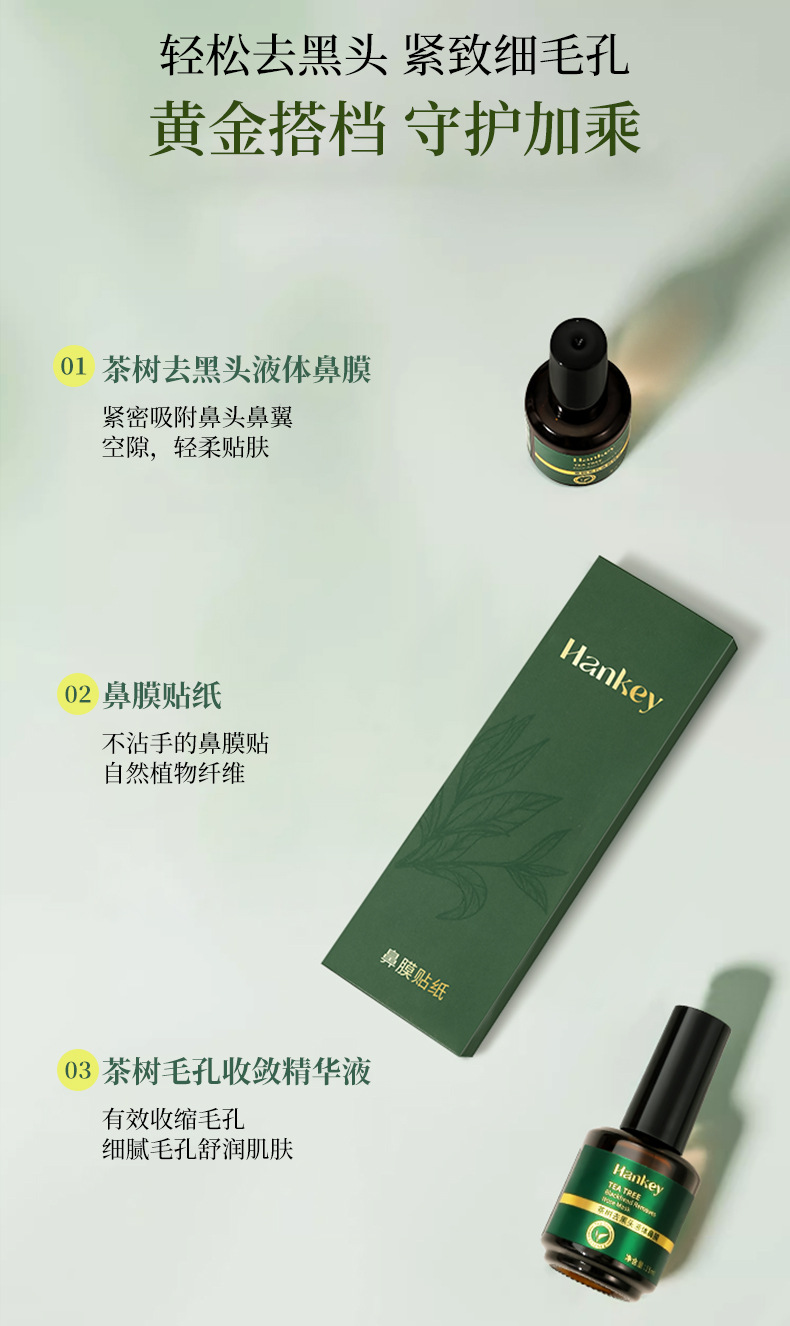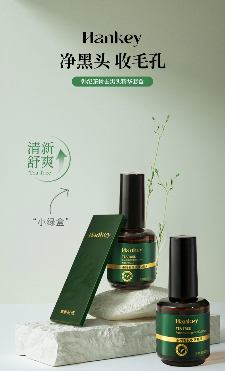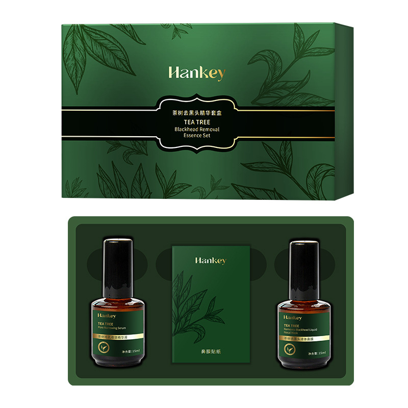 Набор эссенции для удаления черных точек Hanji с Чайным Деревом, коробка, наклейка для носа, назальная маска для трех черных точек, жидкий Набор для сокращения пор и свинца