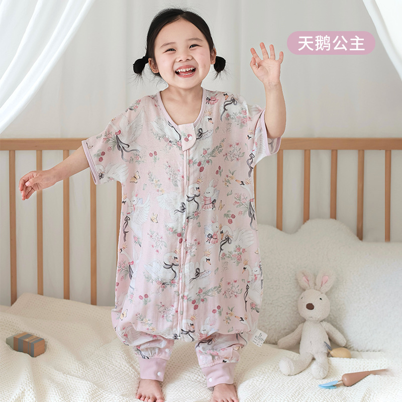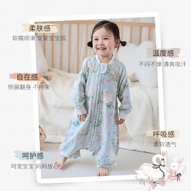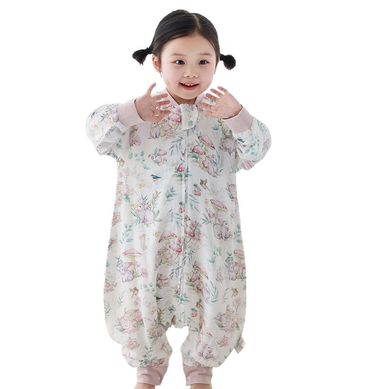 Четырехслойные и шестислойные пижамы из бамбукового хлопка, комбинезон для ползания с раздельными штанинами, весенне-летний детский спальный мешок с защитой от раскрывания, детский спальный мешок-кокон.