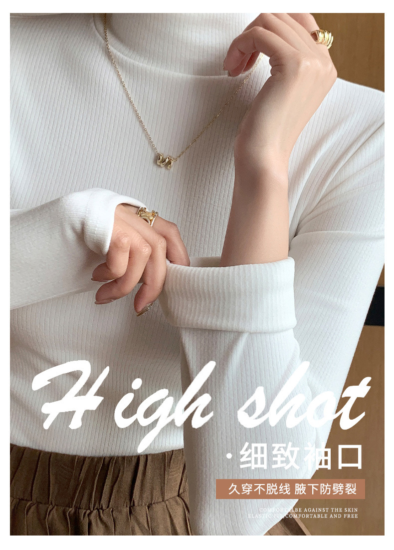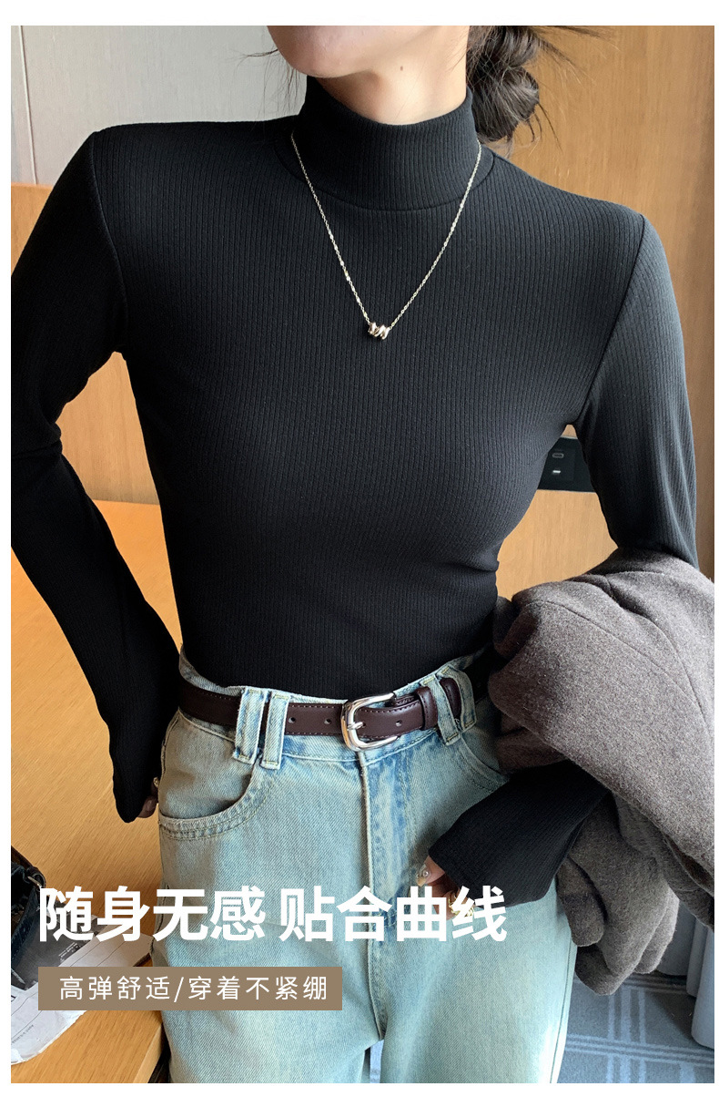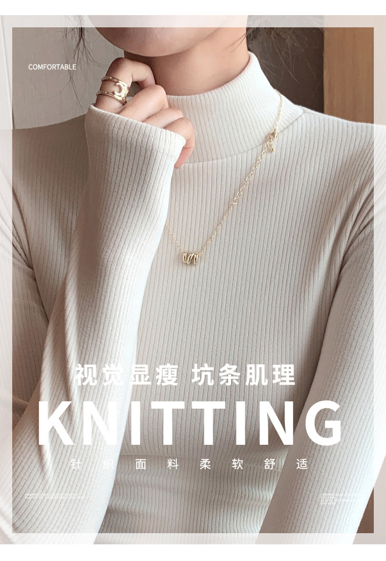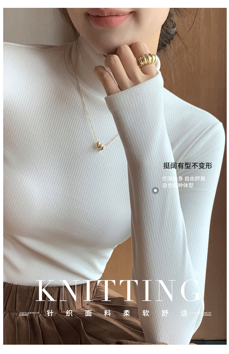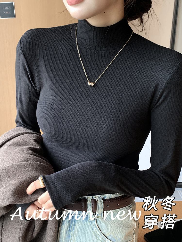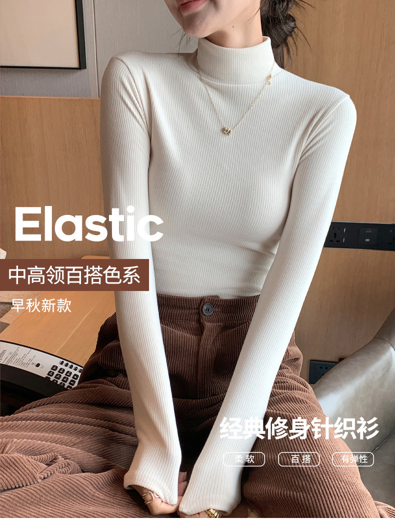 H527 однотонный трикотаж с широкими полосками и половиной высокого воротника для женщин, нижняя рубашка, осенне-зимний топ, универсальный тонкий трикотаж
