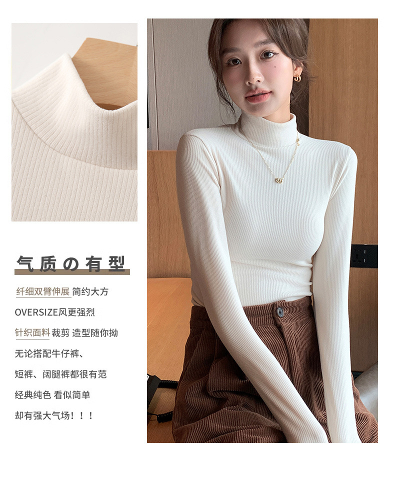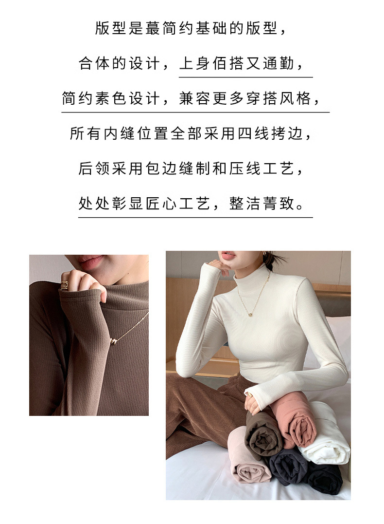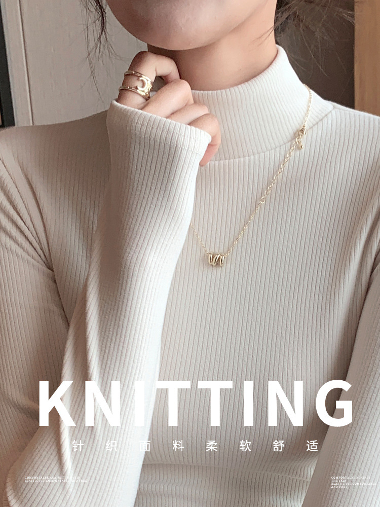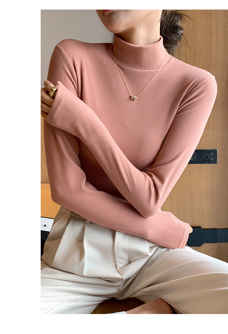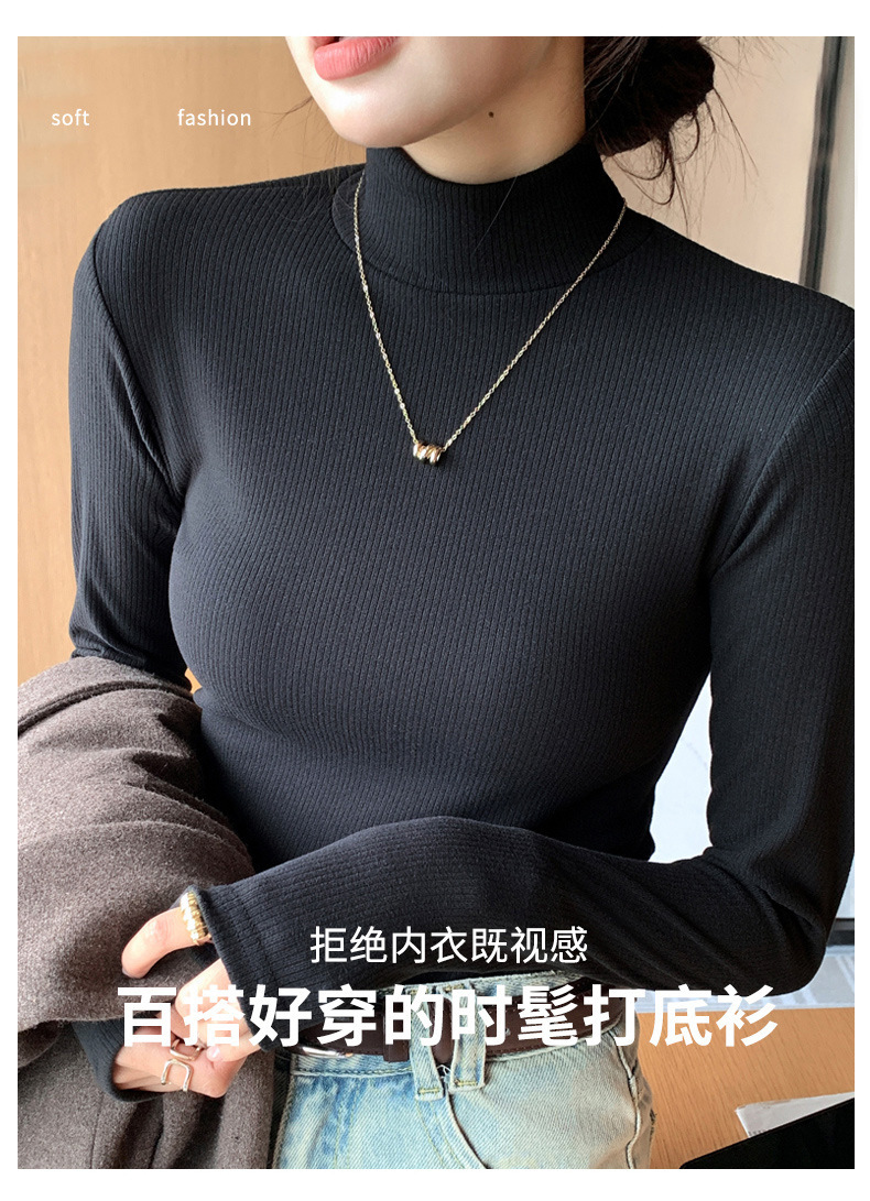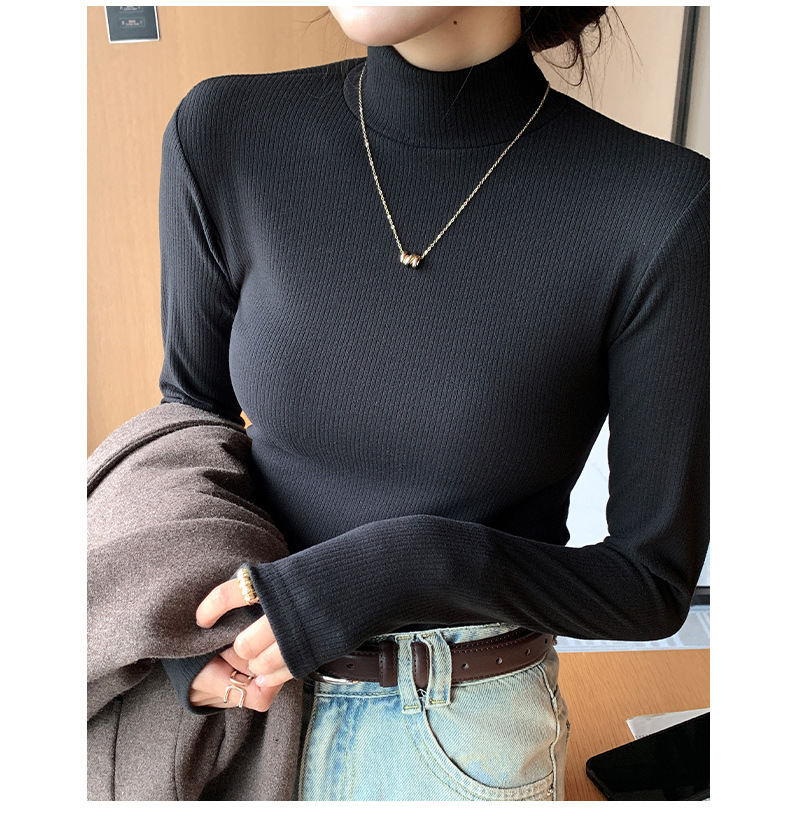 H527 однотонный трикотаж с широкими полосками и половиной высокого воротника для женщин, нижняя рубашка, осенне-зимний топ, универсальный тонкий трикотаж