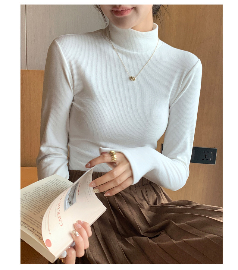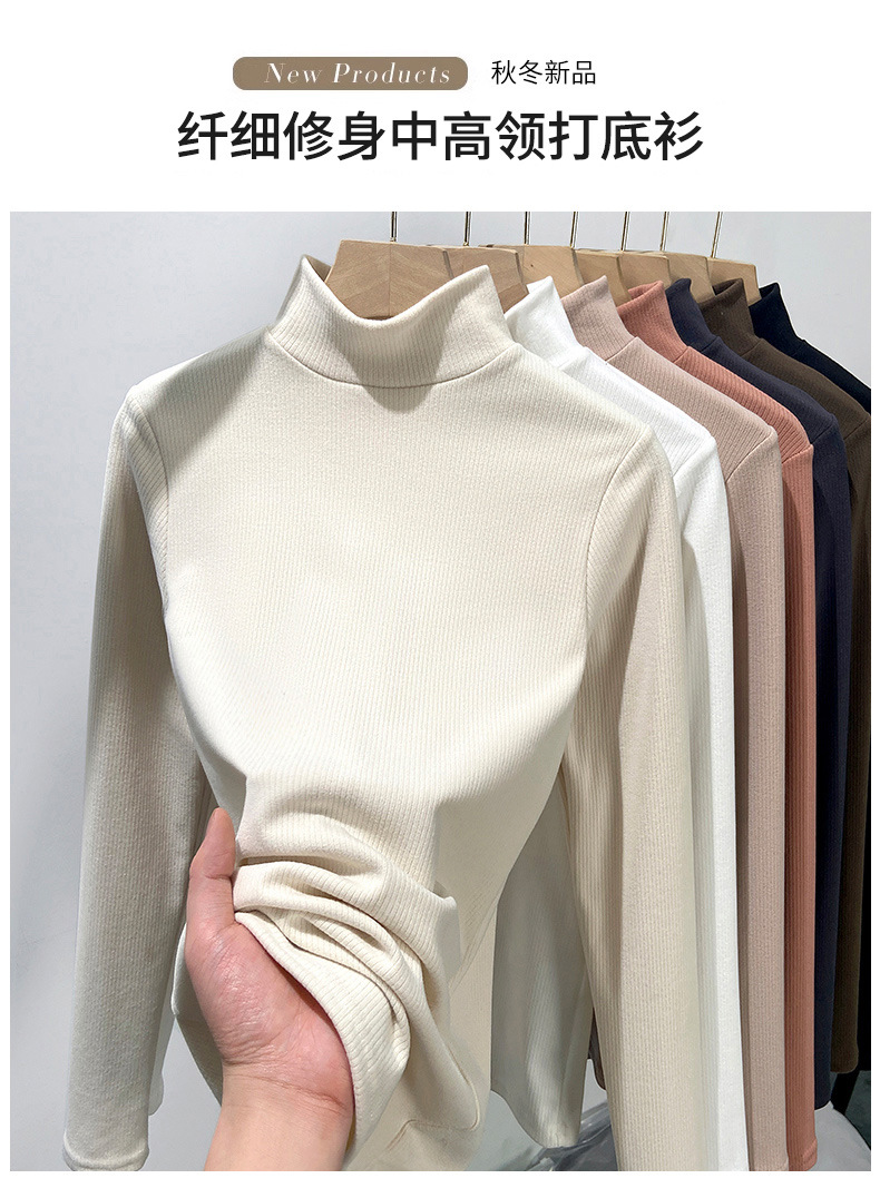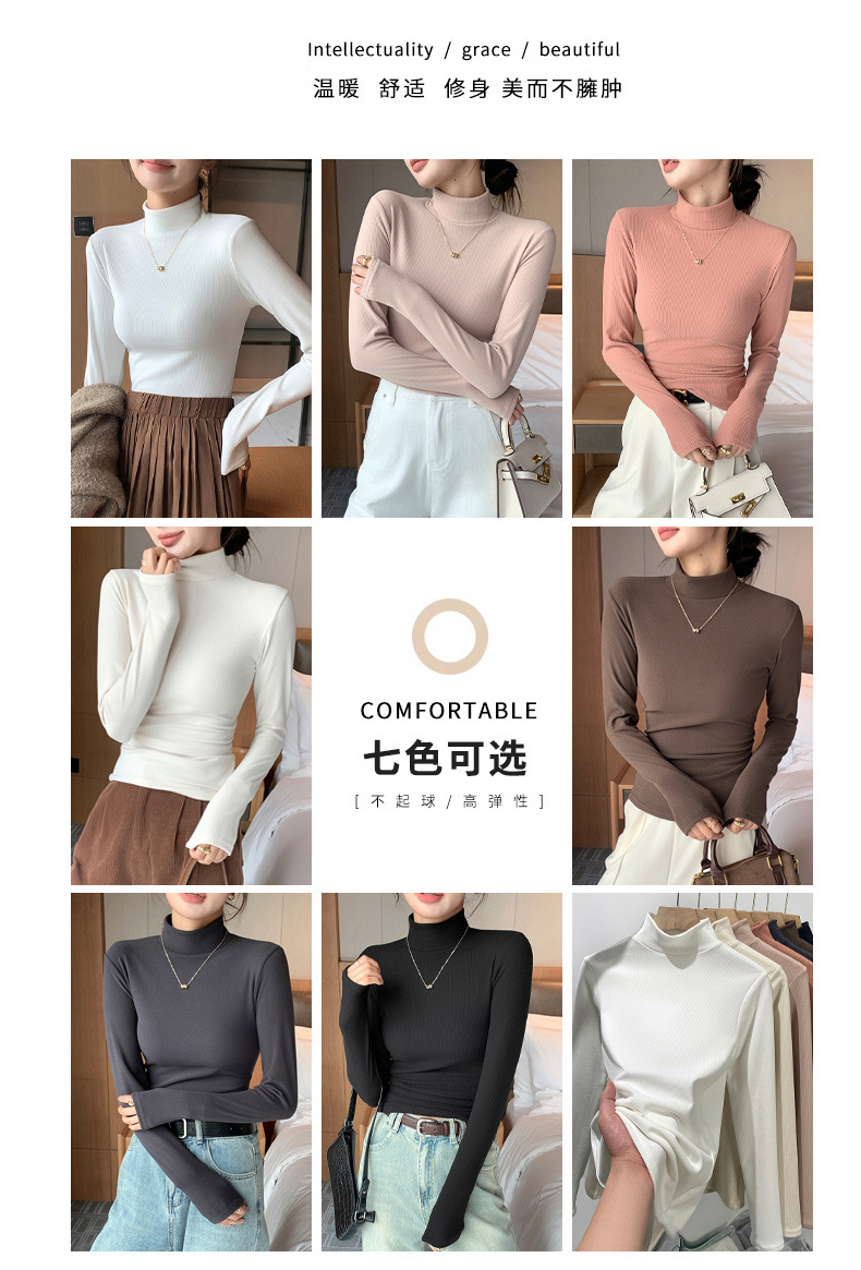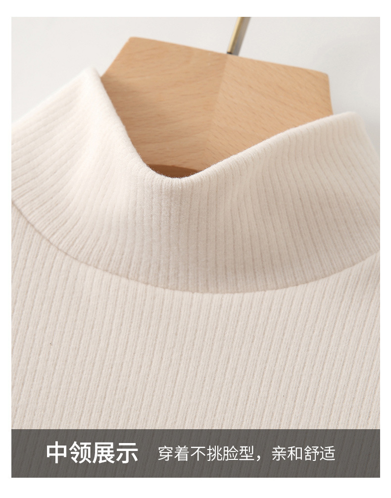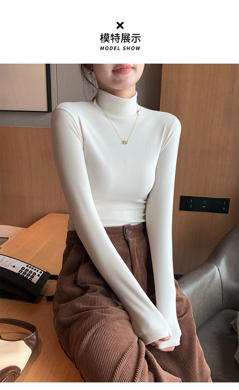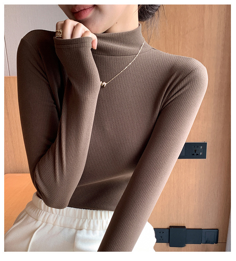 H527 однотонный трикотаж с широкими полосками и половиной высокого воротника для женщин, нижняя рубашка, осенне-зимний топ, универсальный тонкий трикотаж