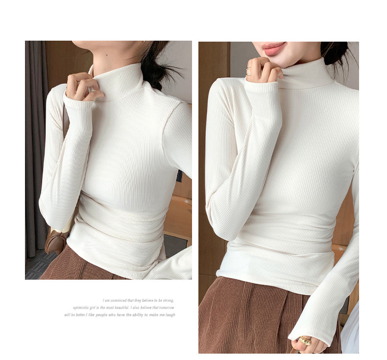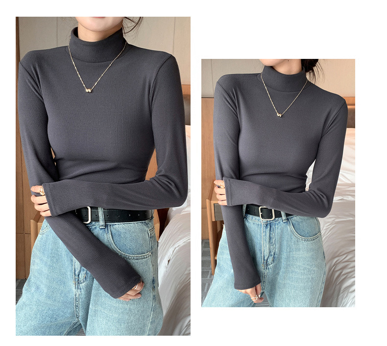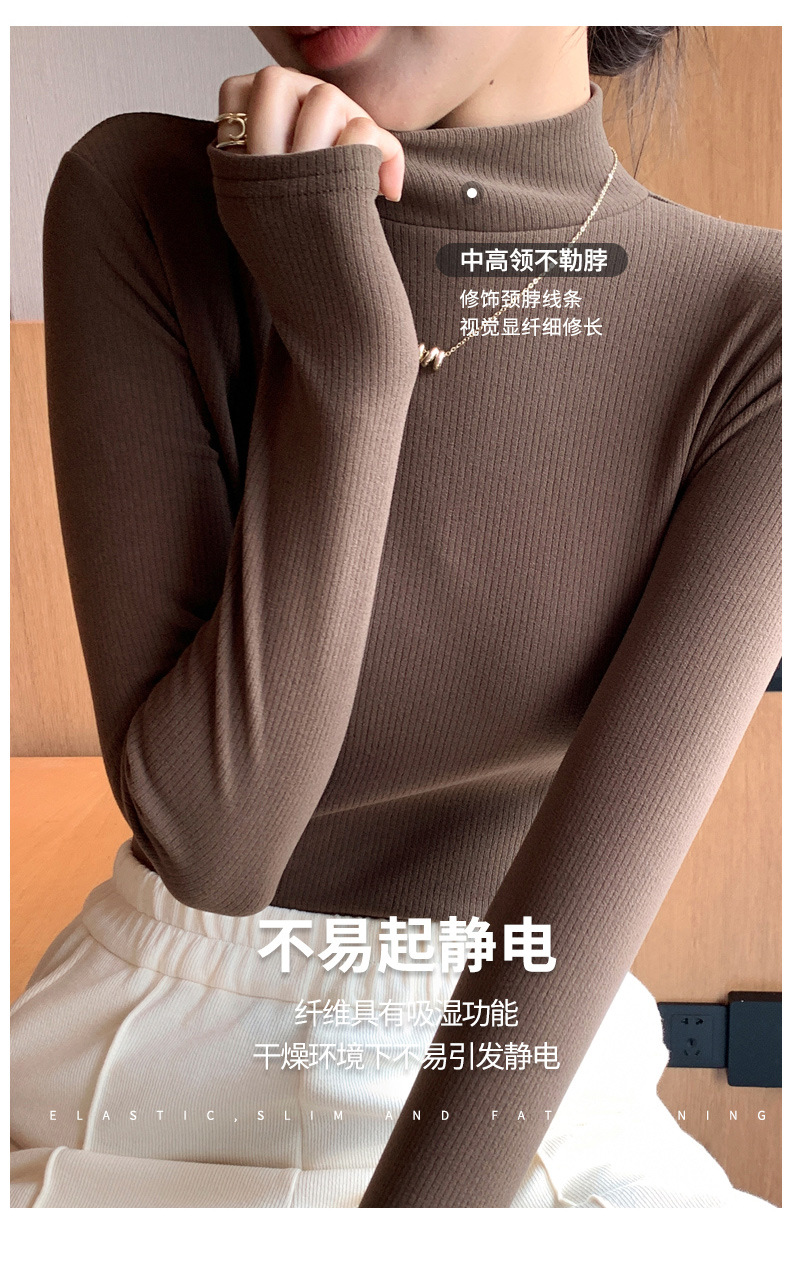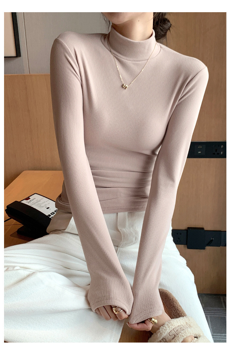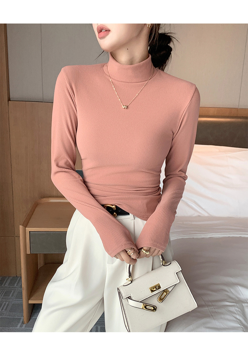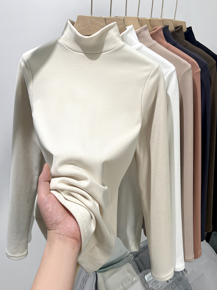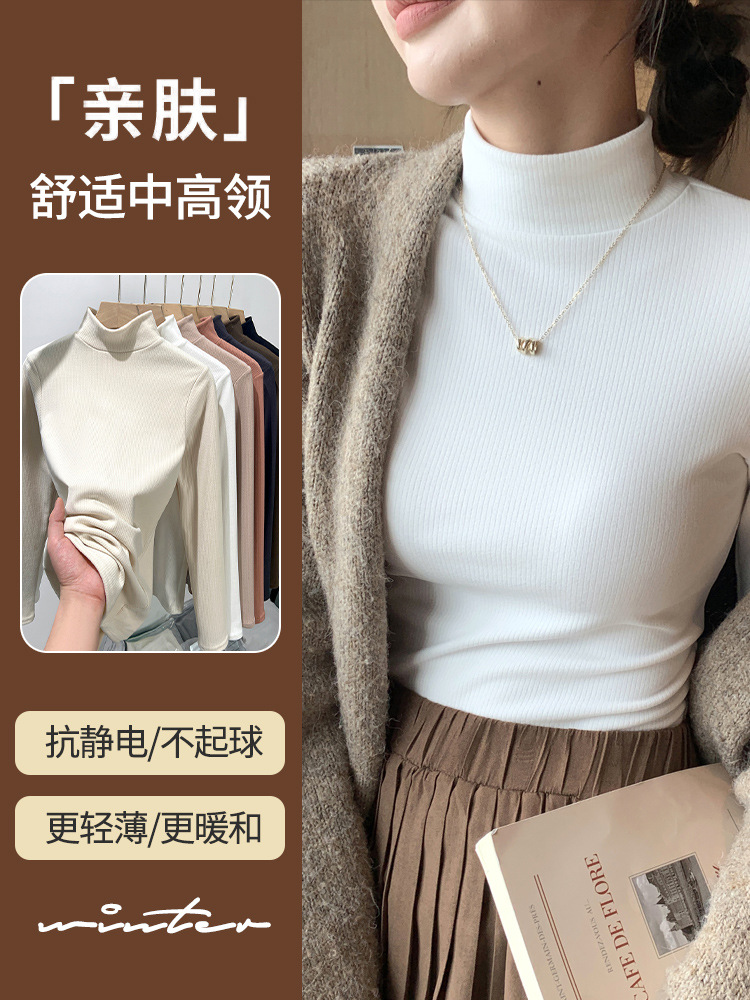 H527 однотонный трикотаж с широкими полосками и половиной высокого воротника для женщин, нижняя рубашка, осенне-зимний топ, универсальный тонкий трикотаж