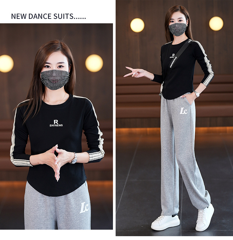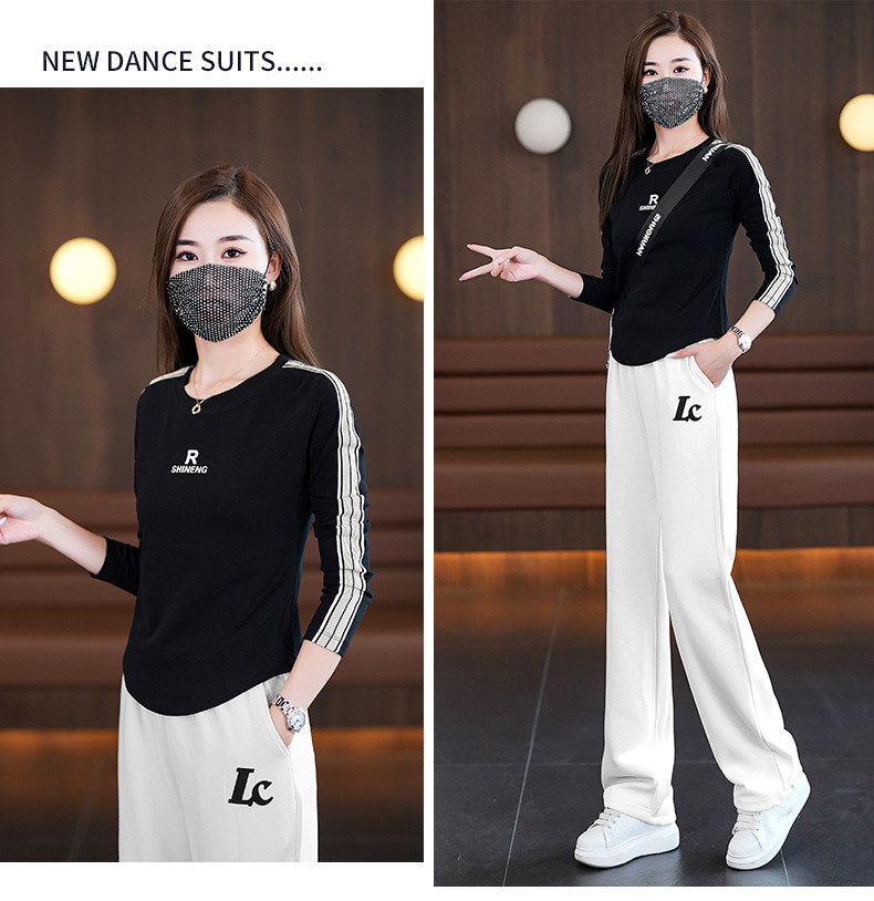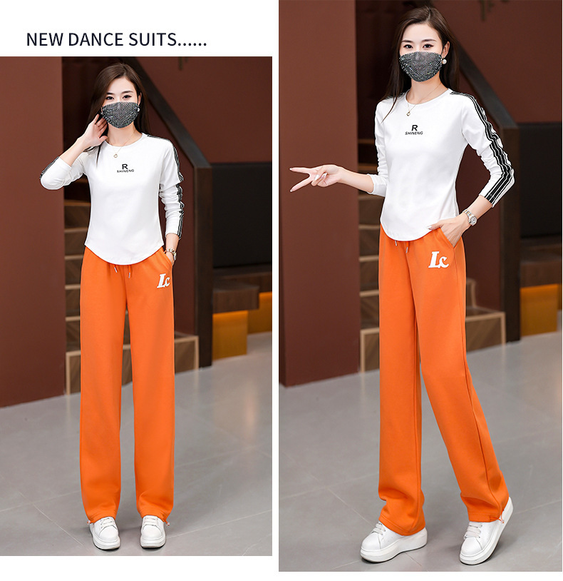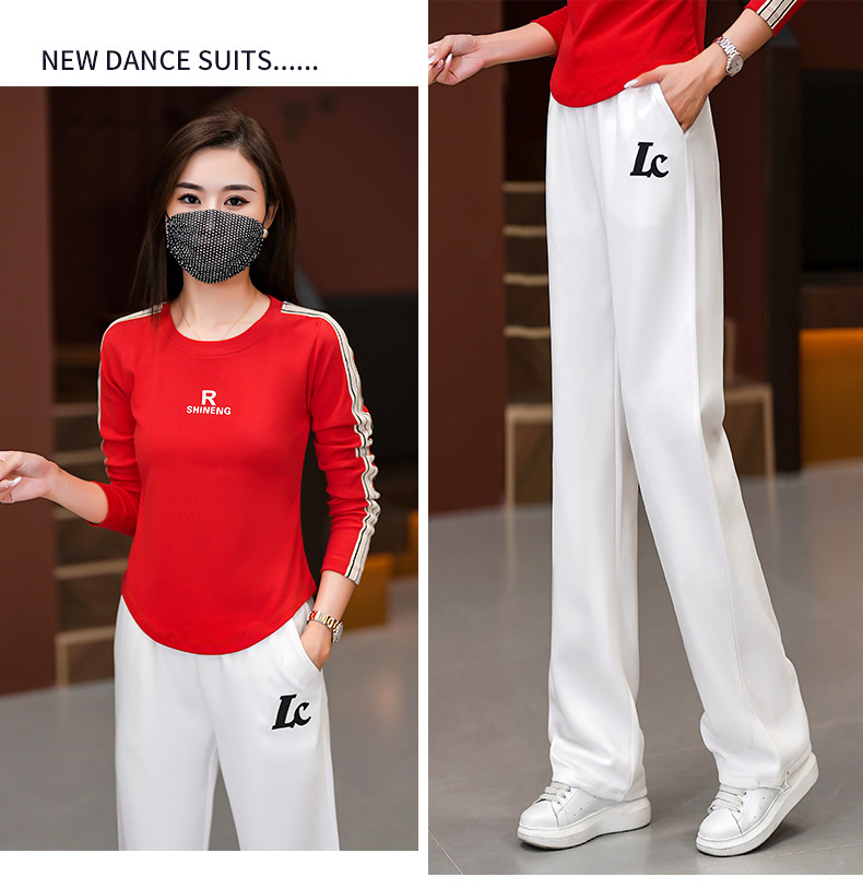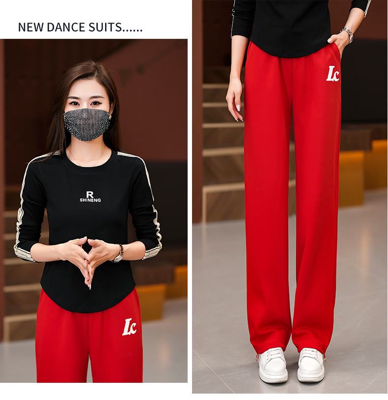 2023 осень и зима Новая квадратная танцевальная одежда костюм для взрослых хлопковые брюки с круглым вырезом и длинными рукавами Спортивная домашняя одежда для отдыха женская