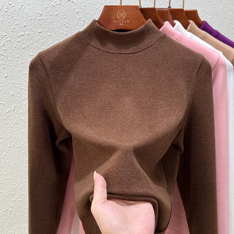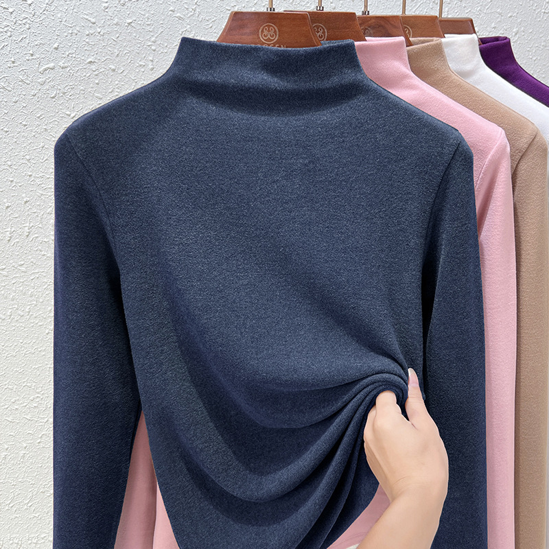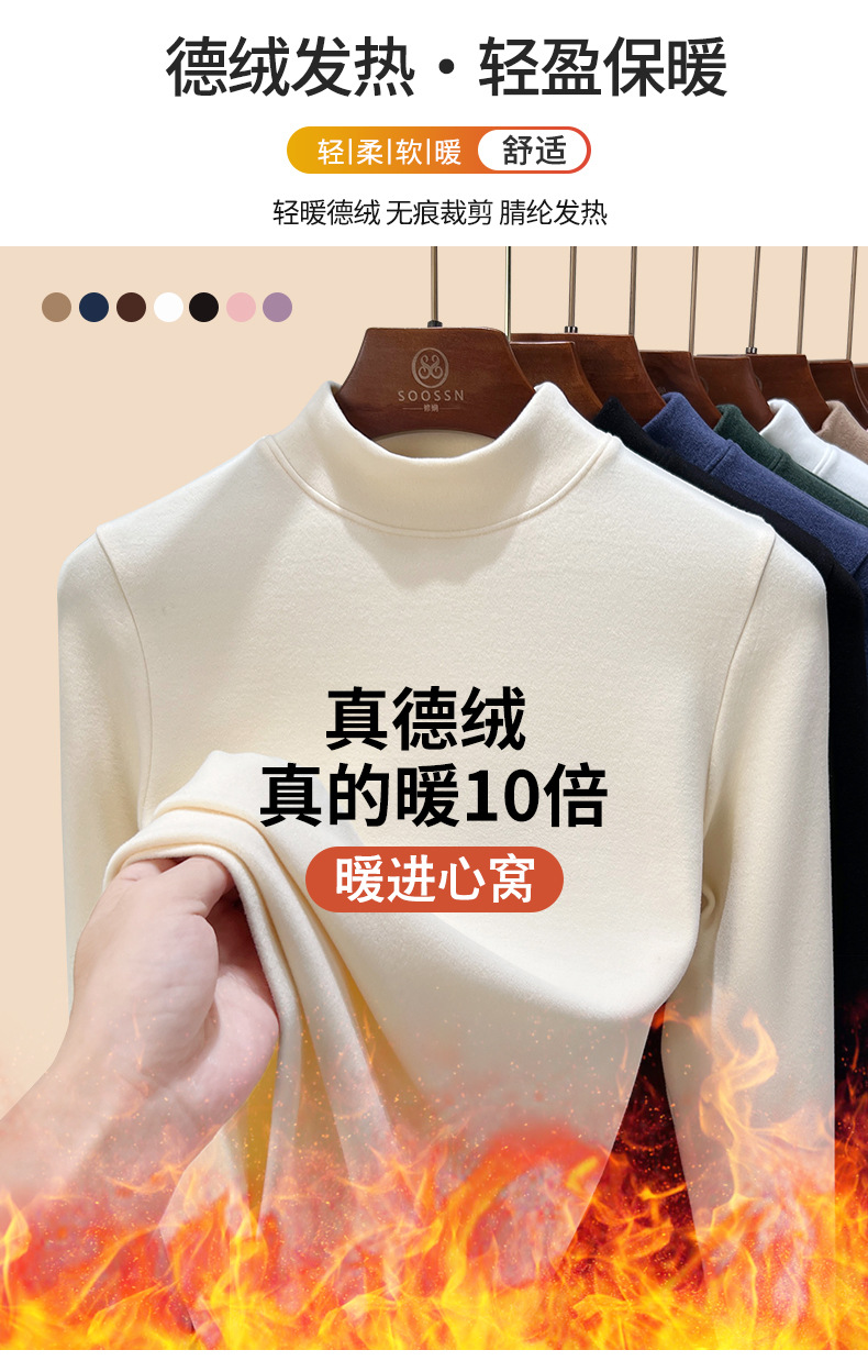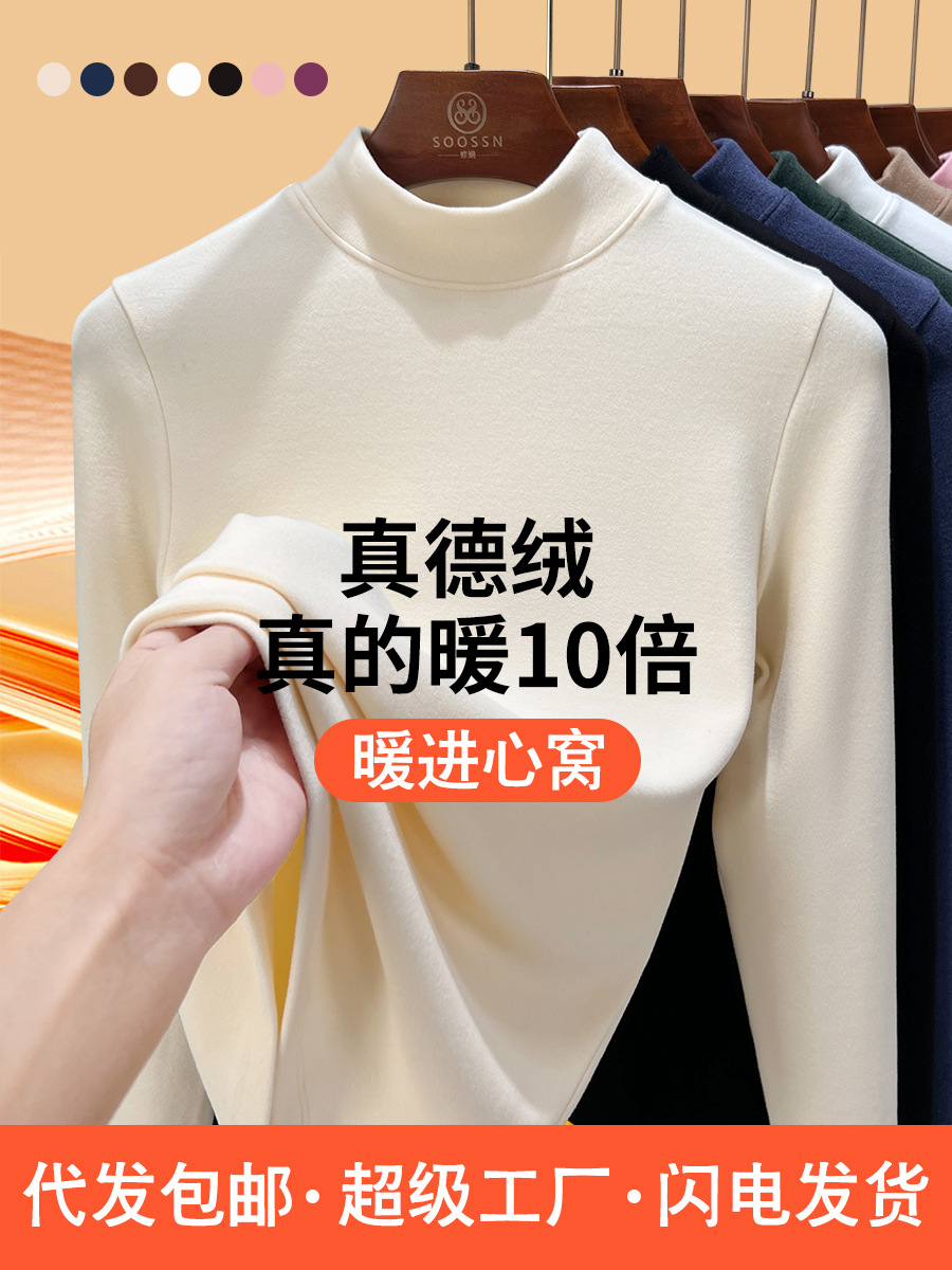Нижняя рубашка среднего воротника Деронга женская лихорадка теплая длинные рукава 2024 новая двухсторонняя бархатная куртка женская