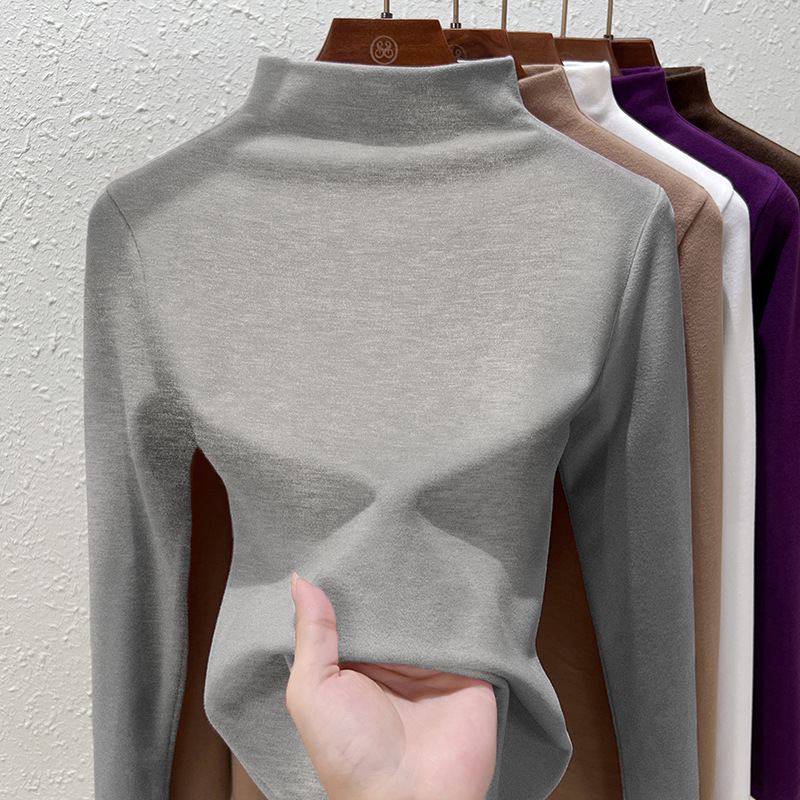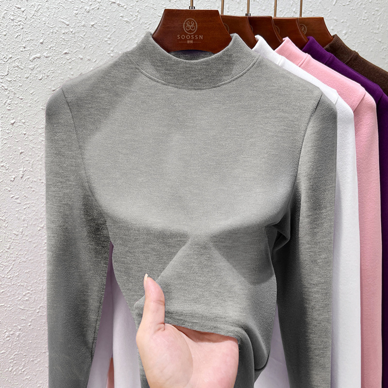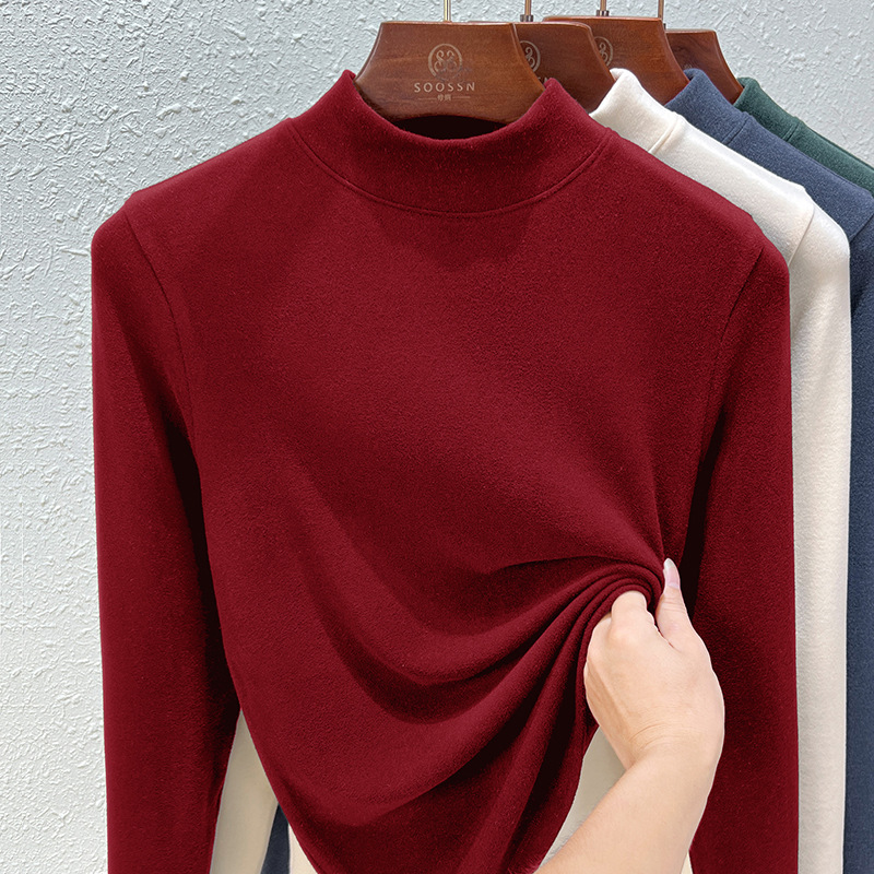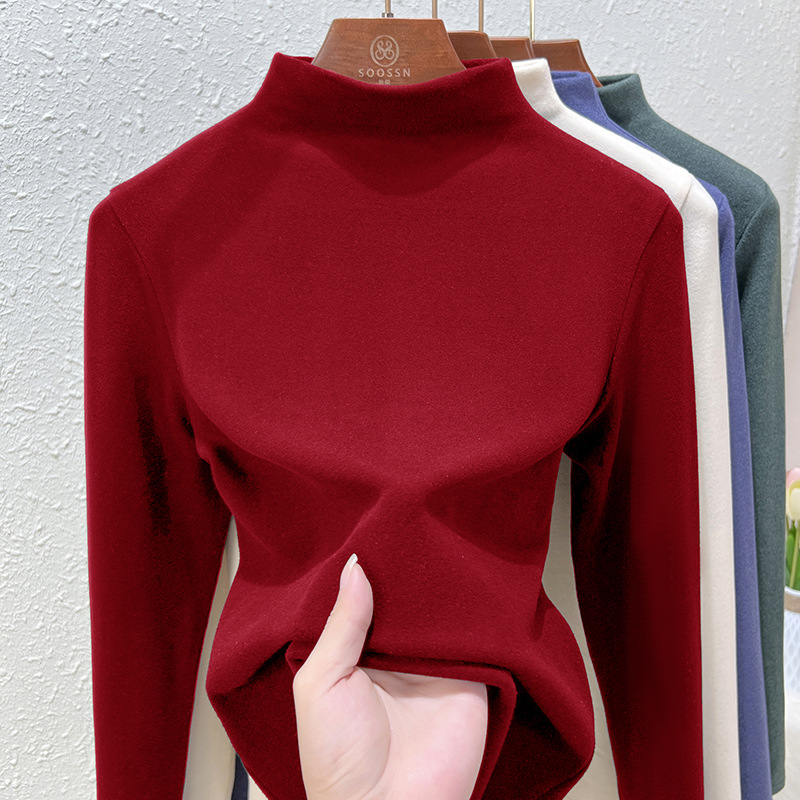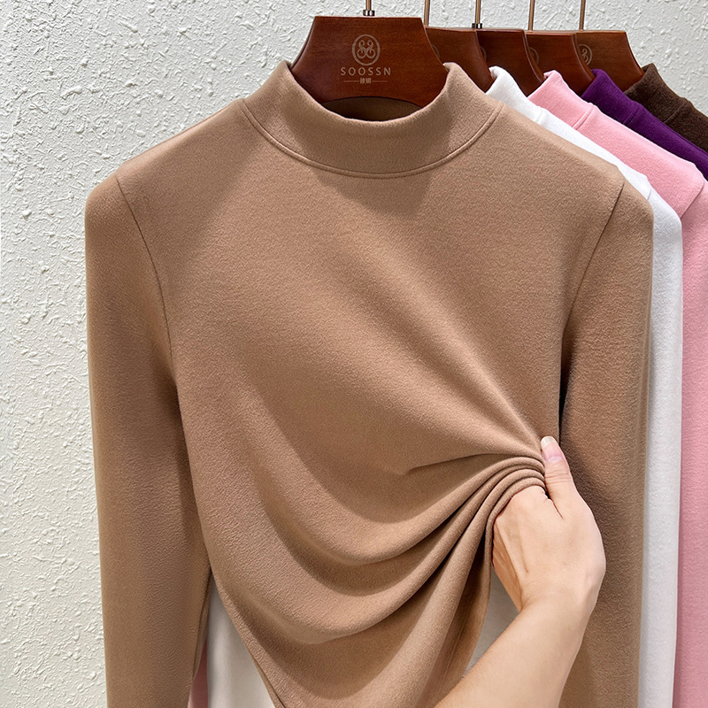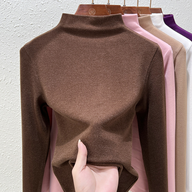 Нижняя рубашка среднего воротника Деронга женская лихорадка теплая длинные рукава 2024 новая двухсторонняя бархатная куртка женская