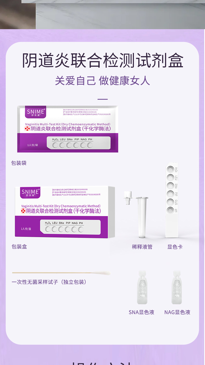 Тест-набор Shunaimei для диагностики вагинита, гинекологических заболеваний, лейкореи, грибковых и трихомонозных инфекций, шестикомпонентный набор