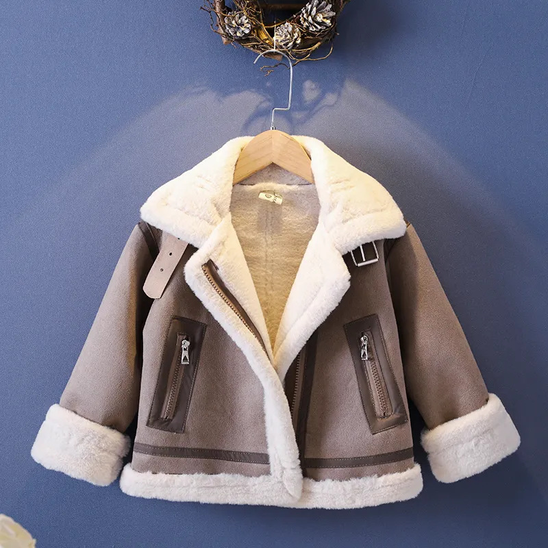 Детская меховая цельная куртка, зимняя замшевая велосипедная Одежда для мальчиков и младенцев, теплая зимняя одежда из искусственного меха в западном стиле