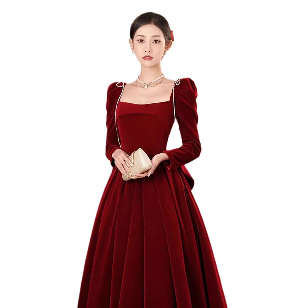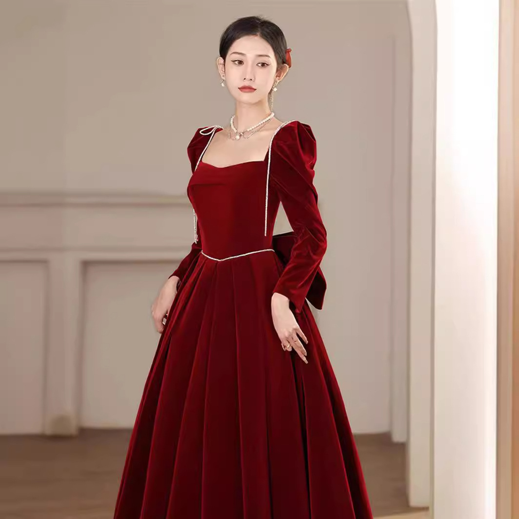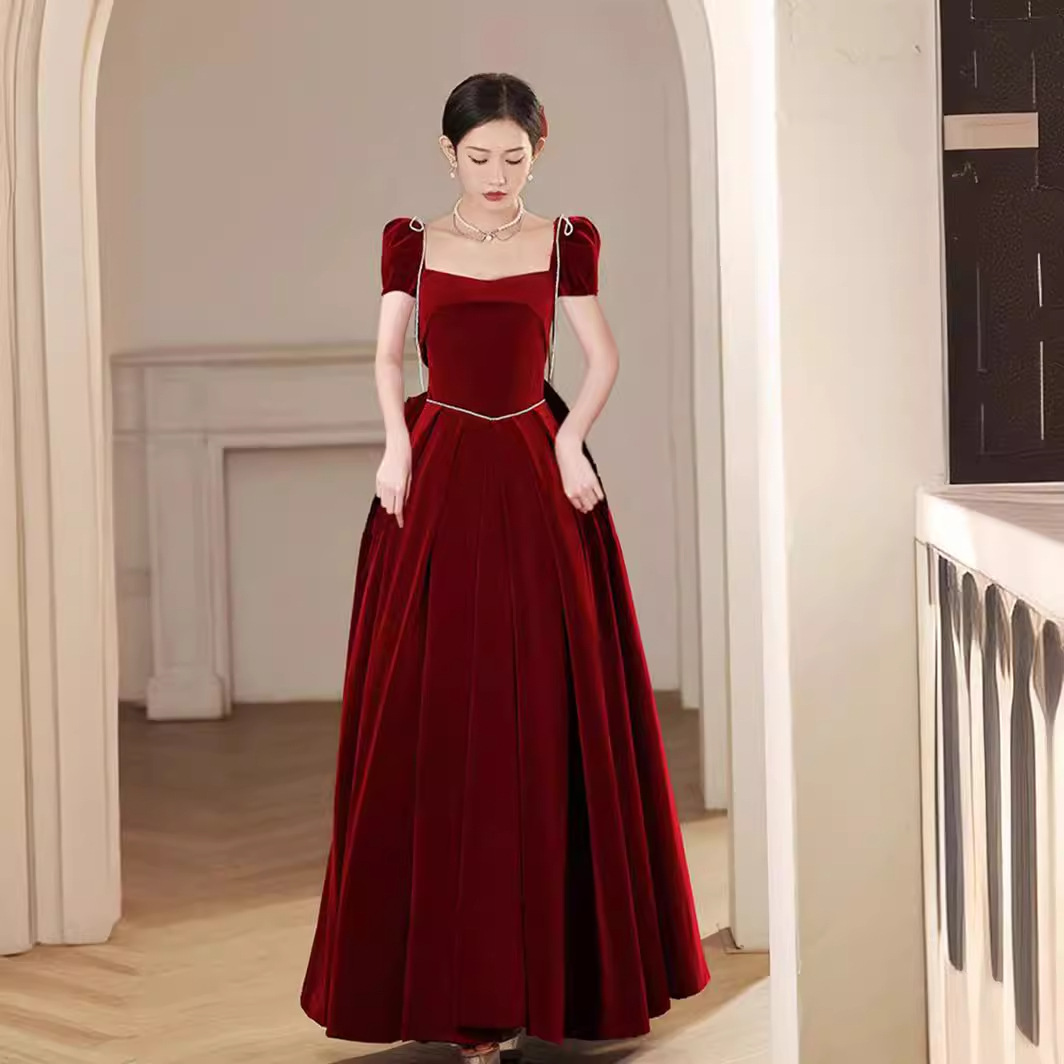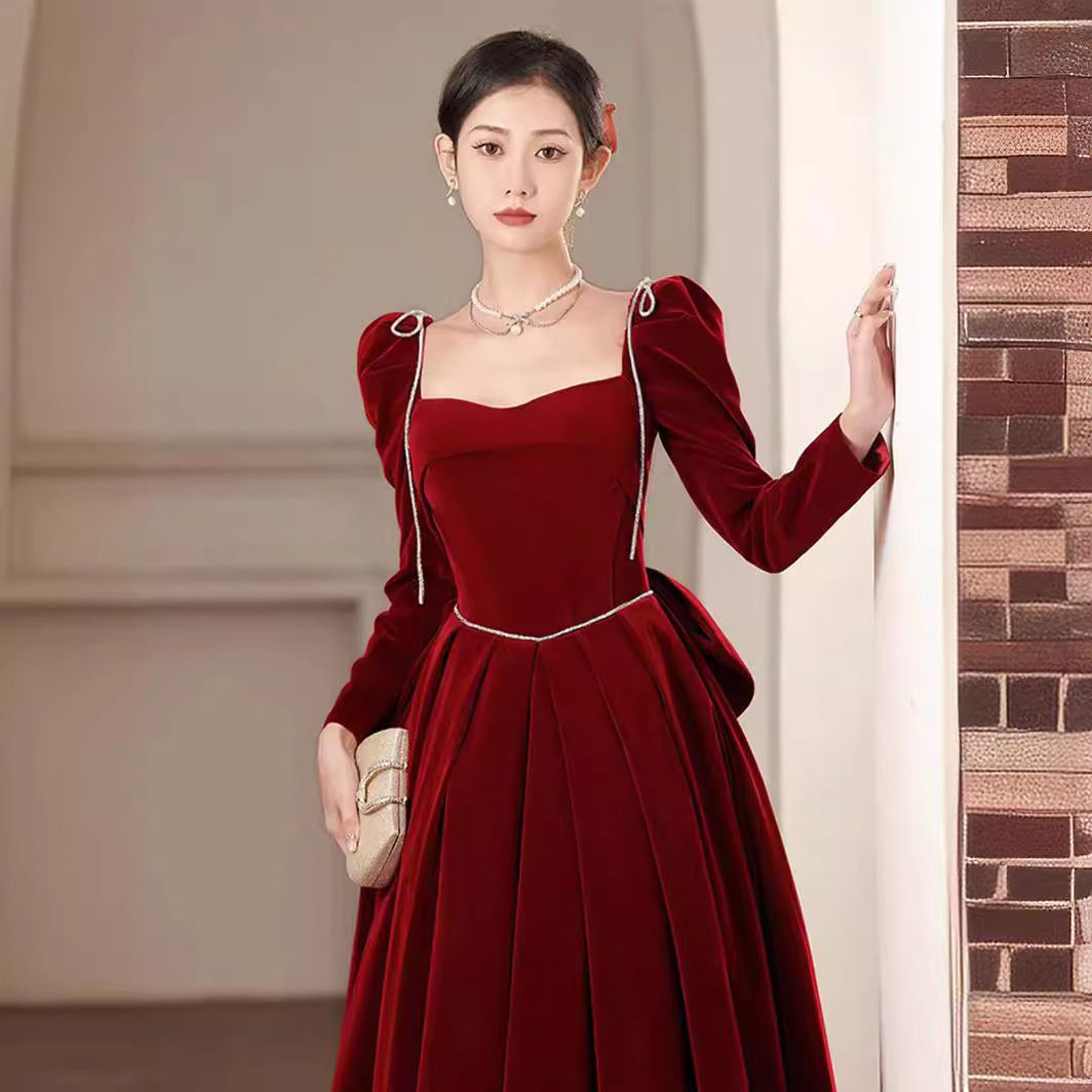 Красное бархатное платье для невесты в стиле бегущей невесты, новое элитное вечернее платье для помолвки и свадьбы для миниатюрных женщин.