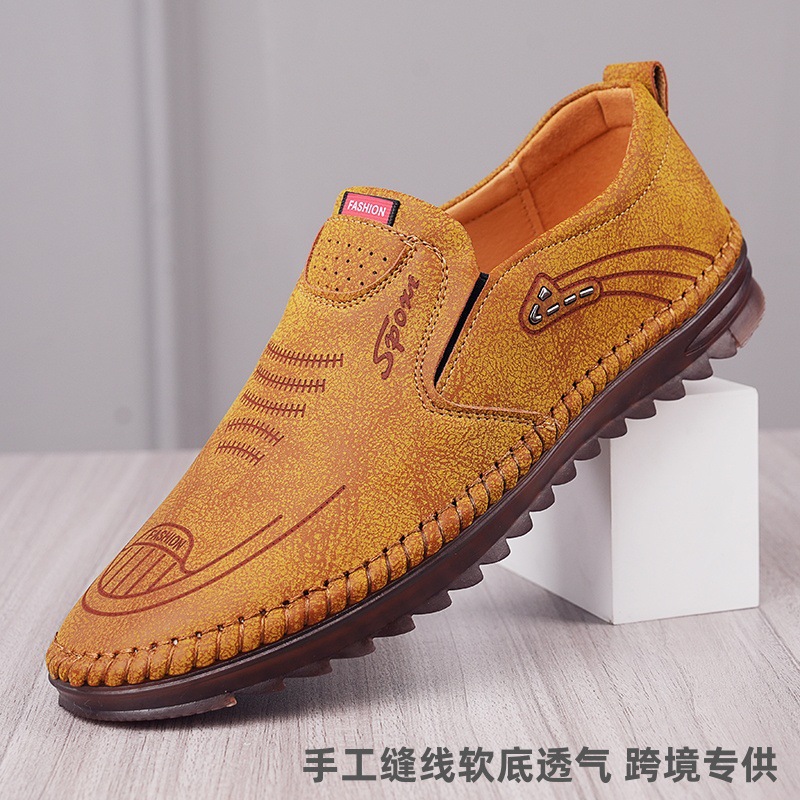 Мужские дышащие лоферы из мягкой кожи для весны и лета, легкие слипоны на мягкой подошве, универсальные рабочие туфли для трансграничных продаж.