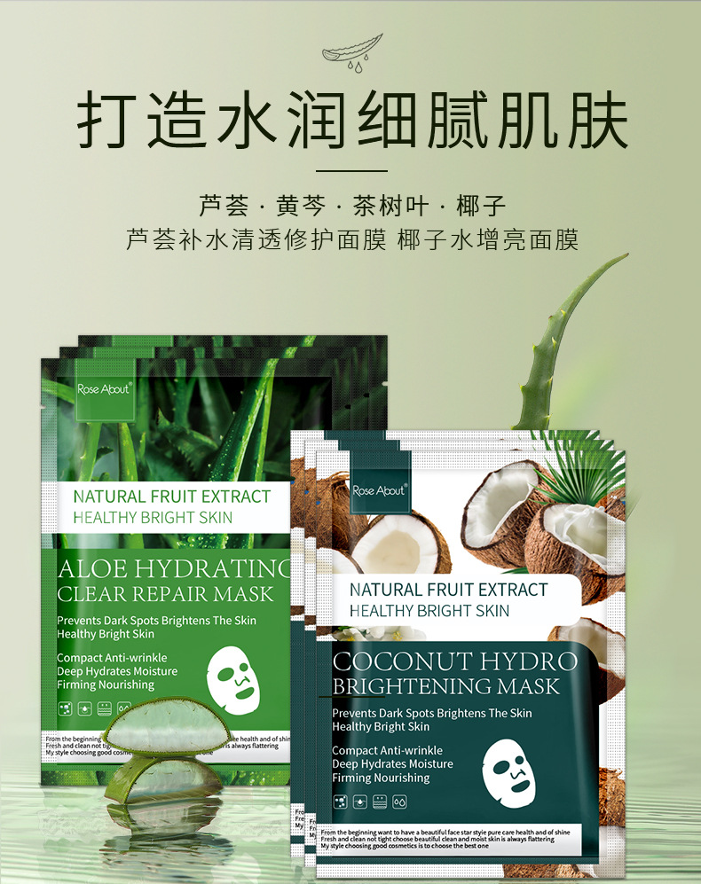Оптовая переработка масок с алоэ вера, ниацинамидом и розой, увлажняющих и питательных, малыми партиями, на заказ.