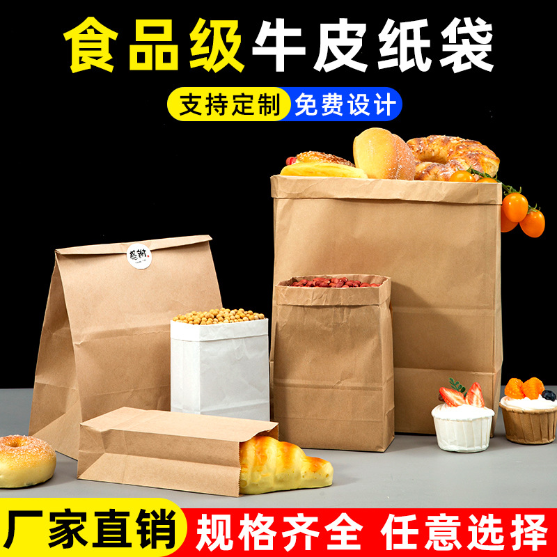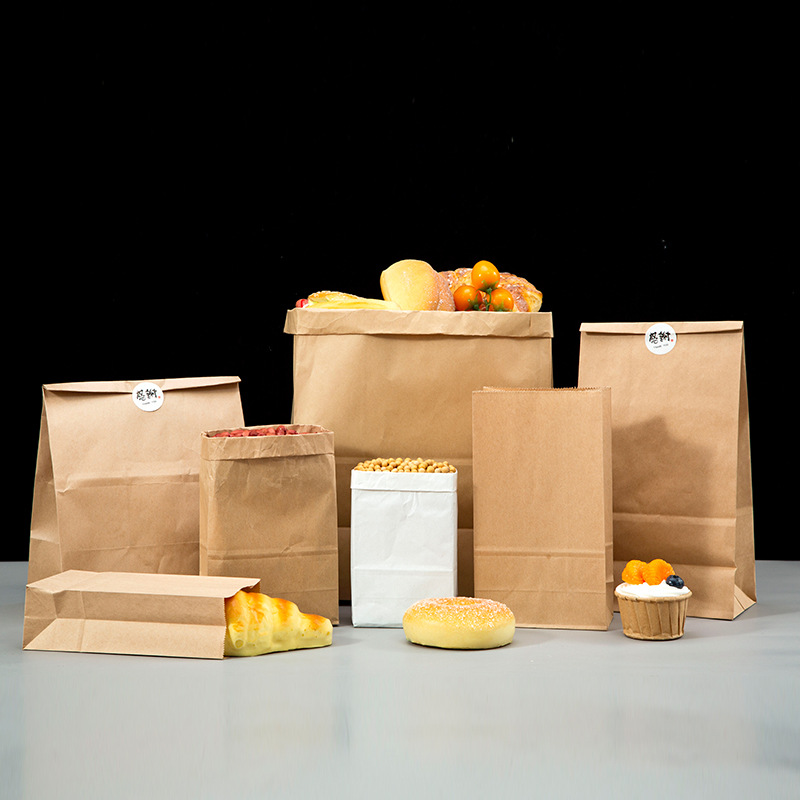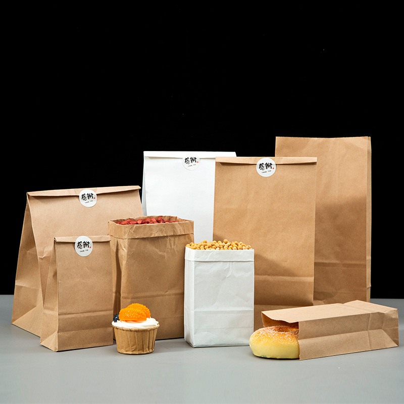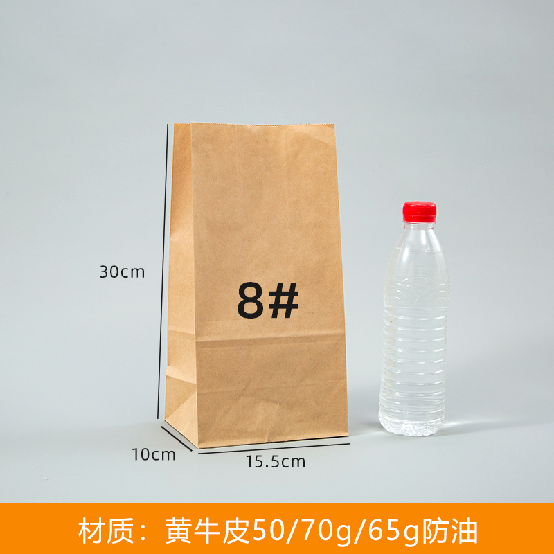 [Маленький оптовый] Крафт-бумажный пакет Квадратный нижний мешок для выпечки пищевых продуктов Утолщенный упаковочный пакет на вынос Гамбургский упаковочный бумажный пакет
