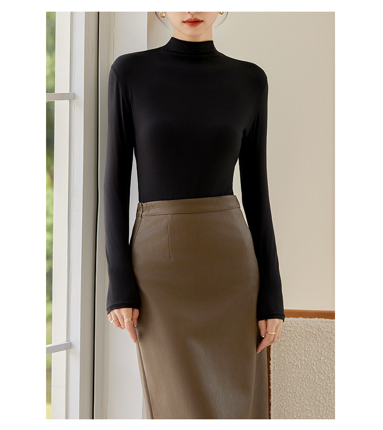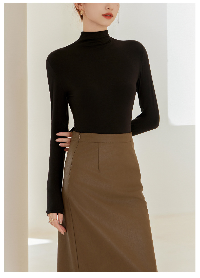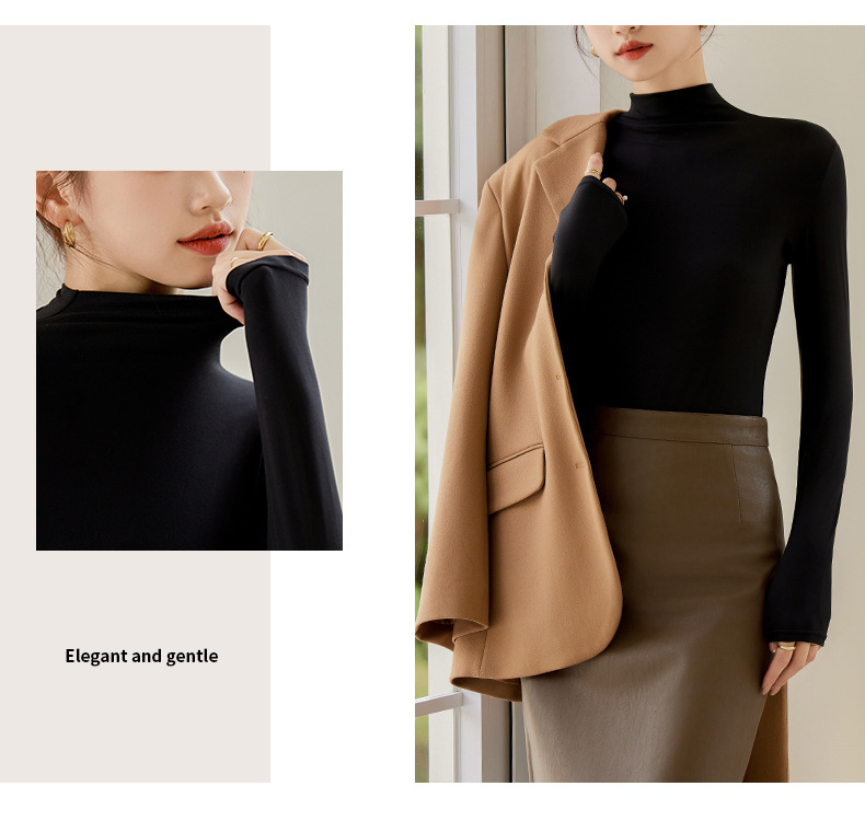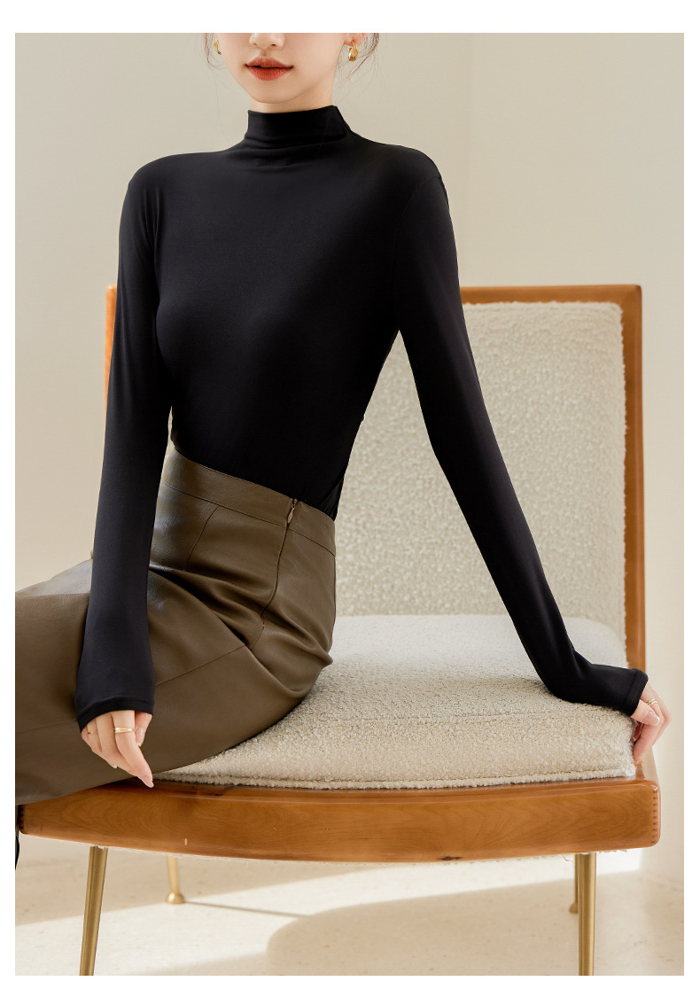Женская рубашка с коротким воротником, с длинными рукавами, новинка на осень и зиму, однотонная внутренняя футболка с воротником-стойкой, Осенний Топ, женская футболка