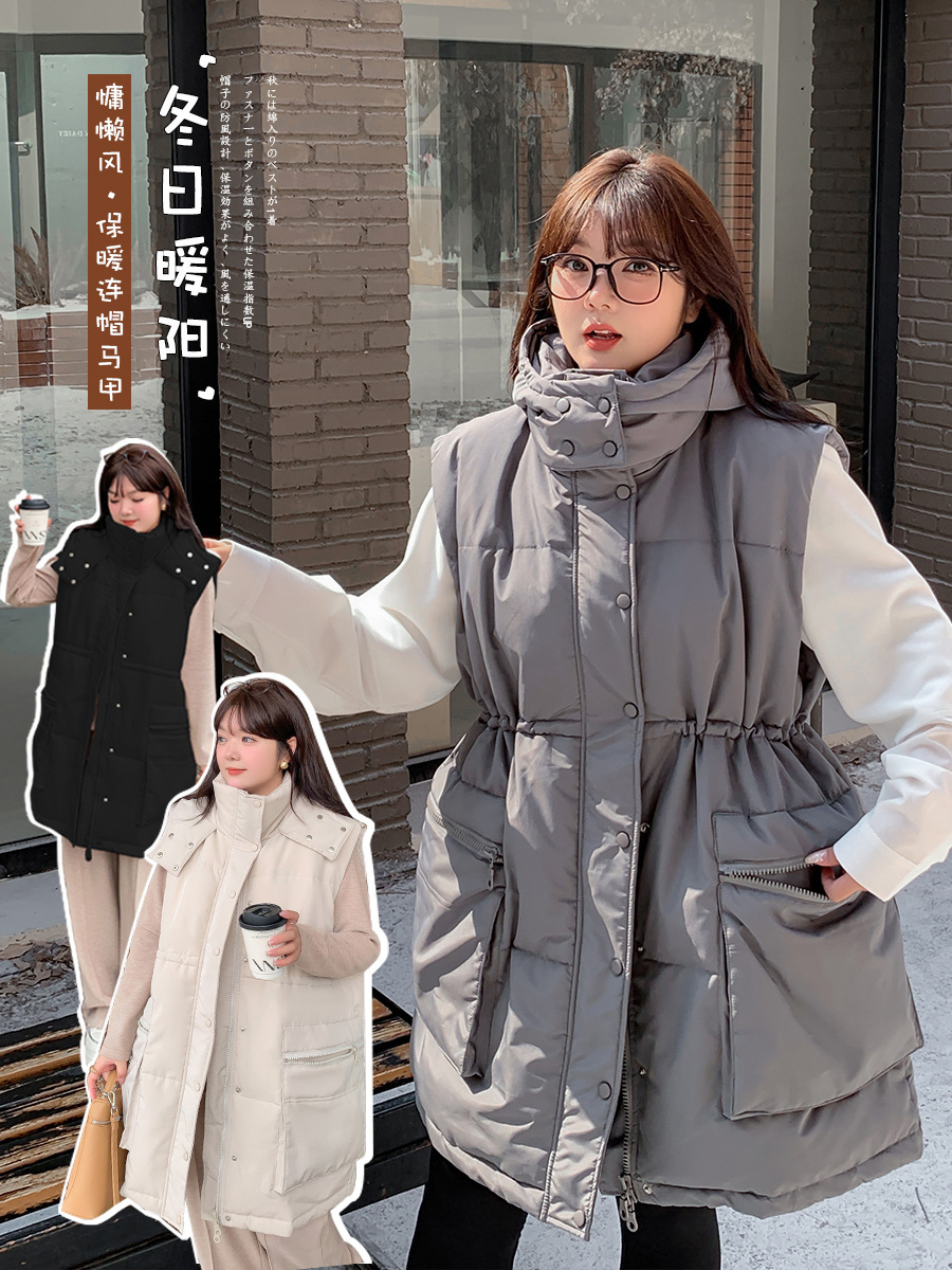MJ002 Xuanchen большой размер толстый MM женский досуг ленивый ветер хлопок утолщение теплое жилет с капюшоном