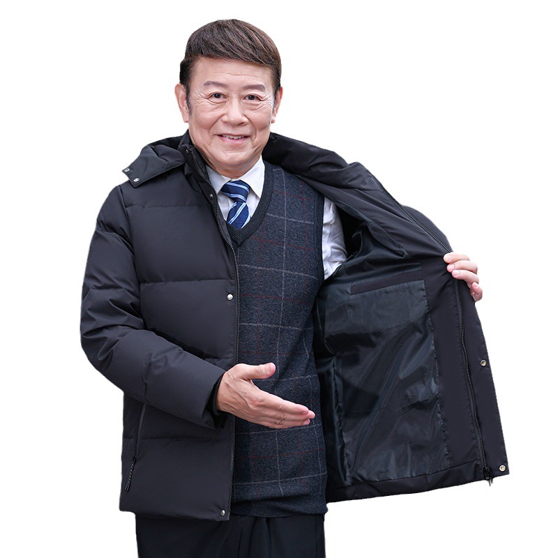 Новая зимняя куртка 2025 года для мужчин среднего и старшего возраста, теплая повседневная зимняя куртка из белого утиного пуха, пуховик для папы.