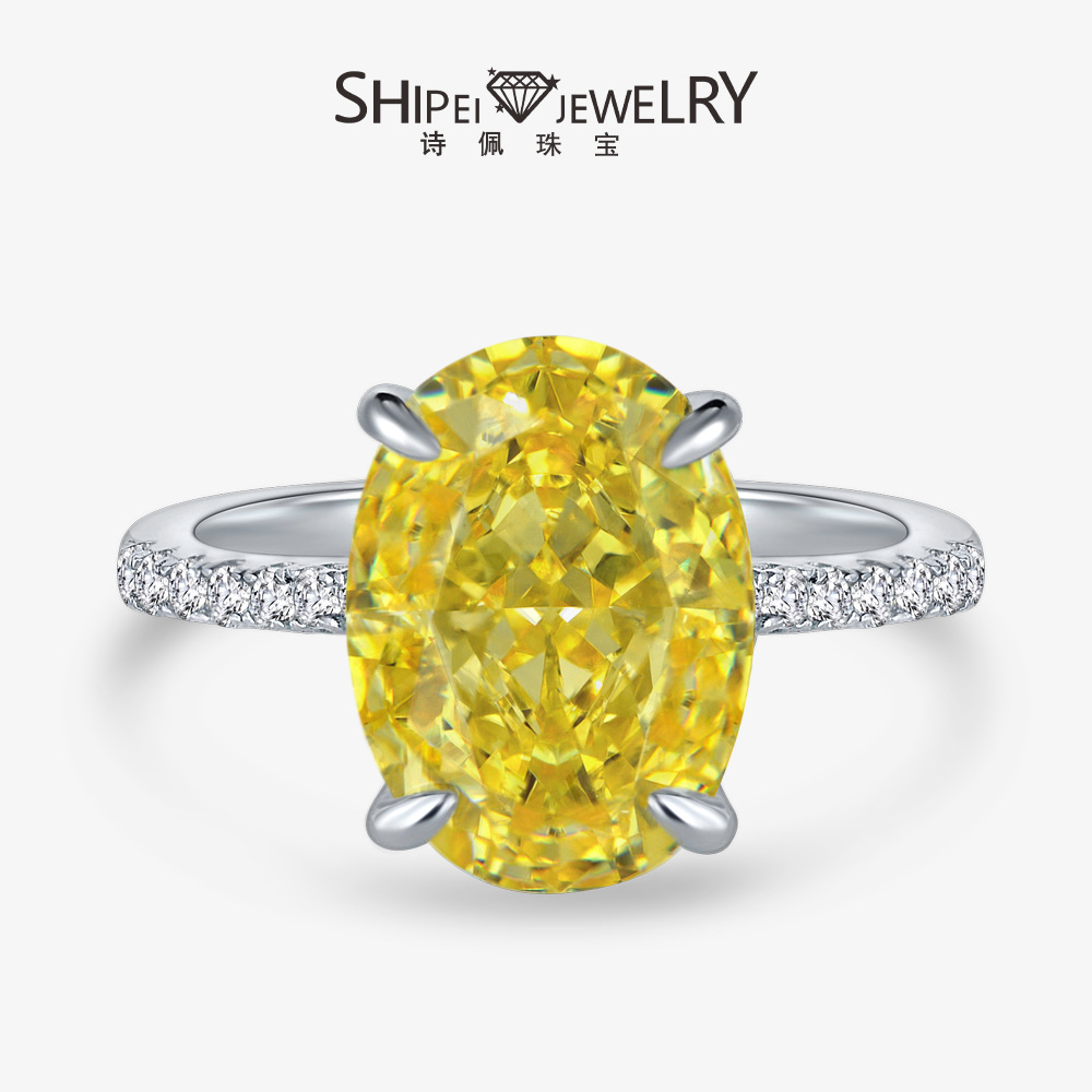 Shipei Jewelry 4ct Красочное желтое высокоуглеродистое кольцо с бриллиантом на все тело 925, инкрустированное 9*13 легким роскошным женским кольцом в европейском и американском стиле