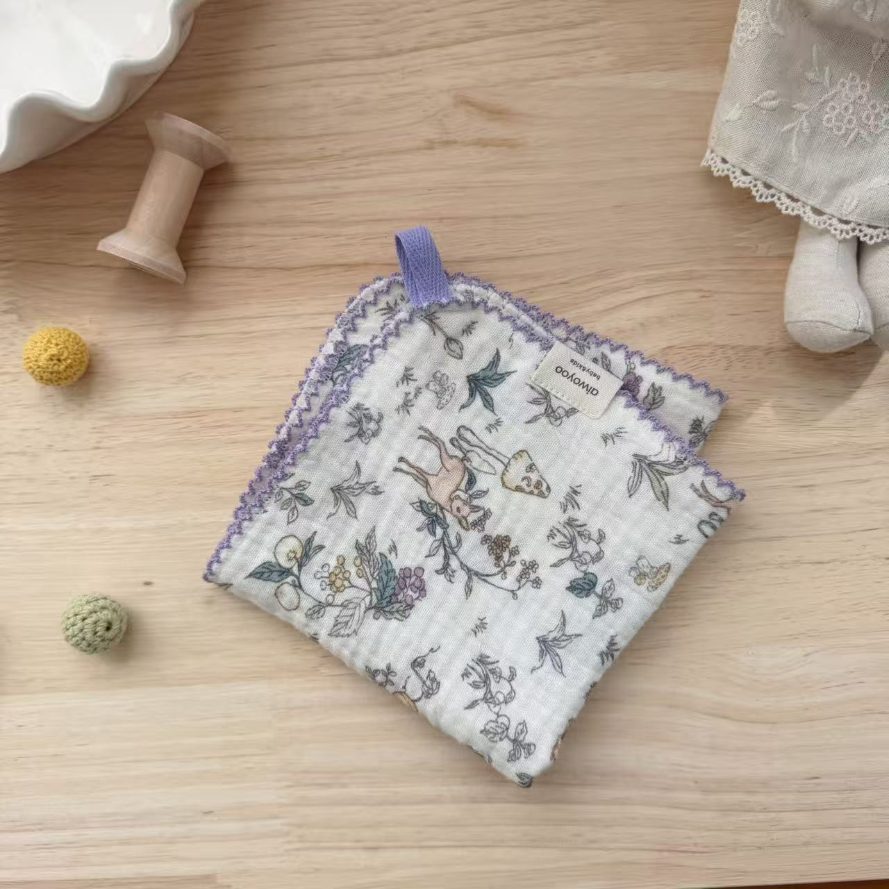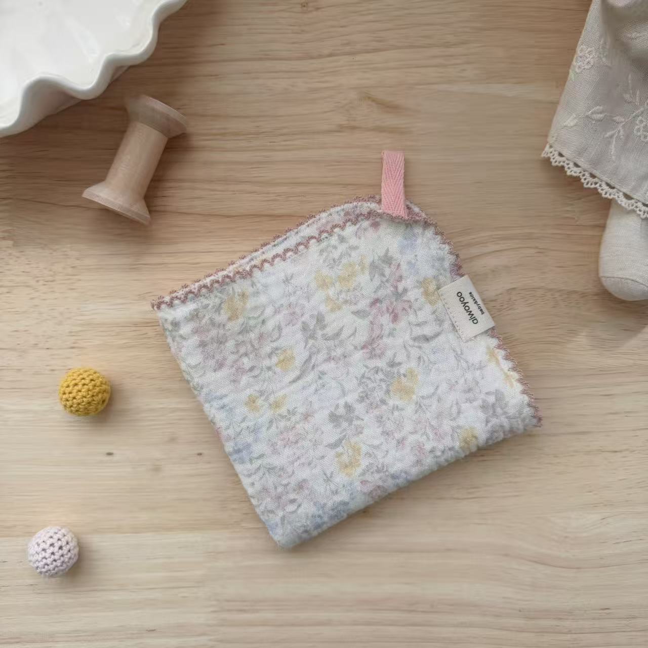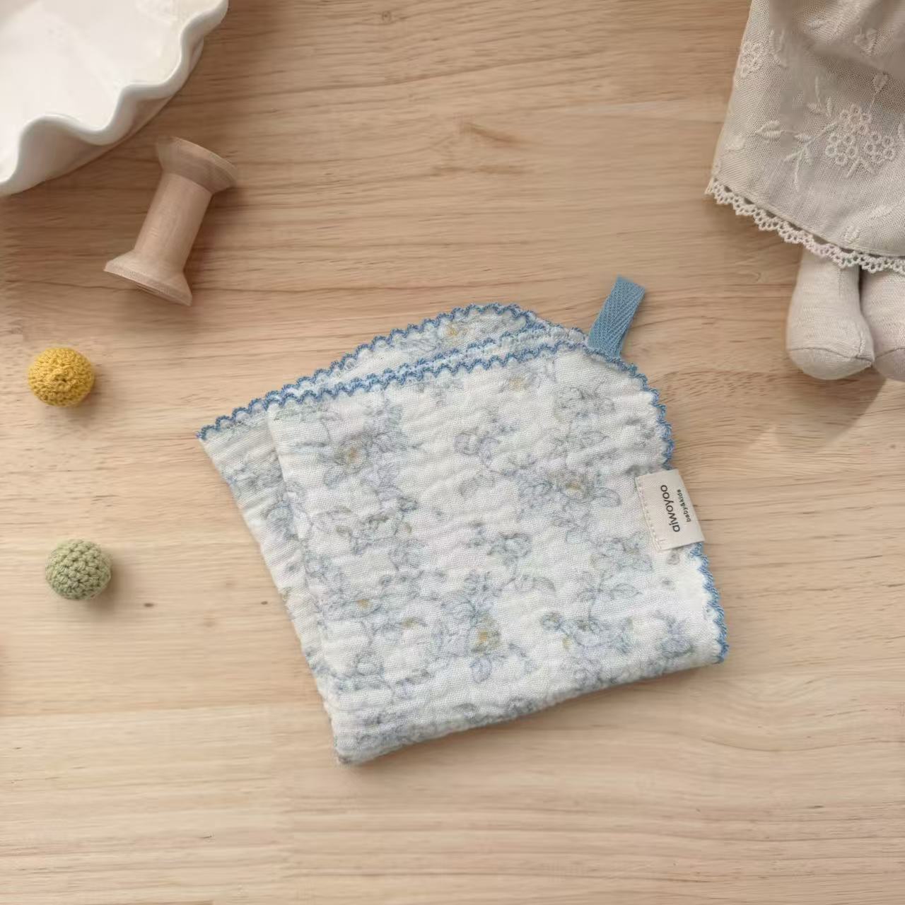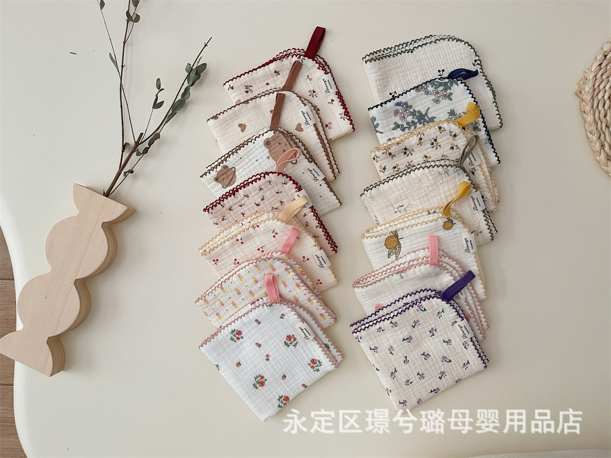 Корейский стиль, маленькое четырехслойное хлопково-марлевое детское полотенце с цветочным принтом, квадратное полотенце для протирания лица, впитывающее пот полотенце, маленький носовой платок, подставка для столовых приборов