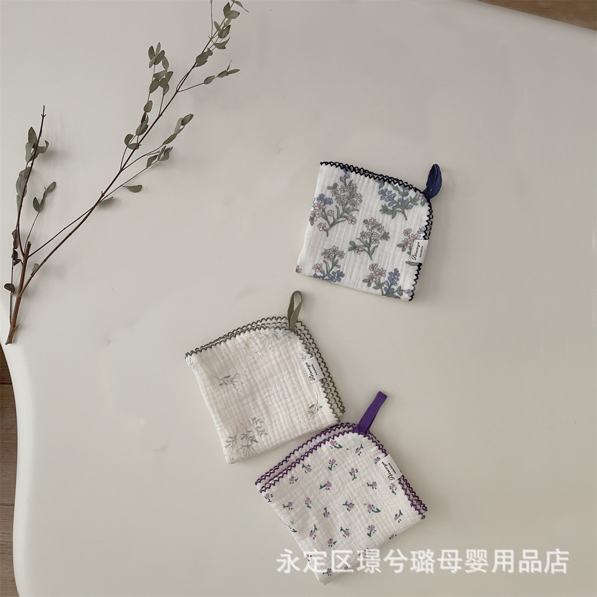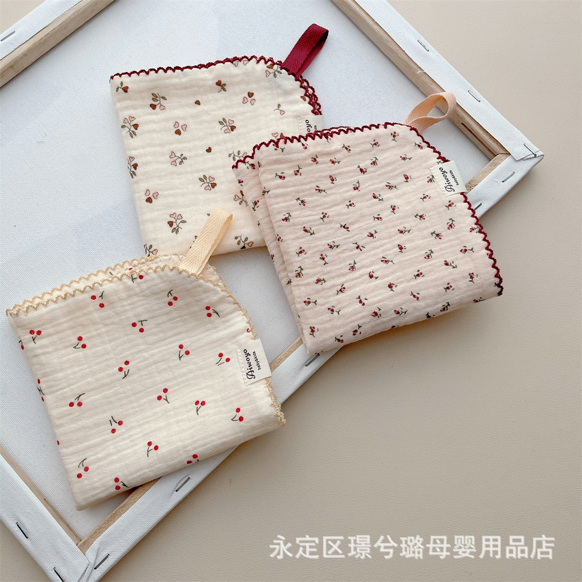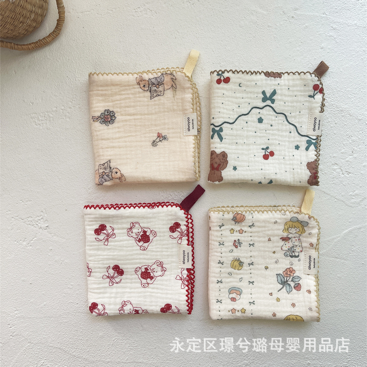 Корейский стиль, маленькое четырехслойное хлопково-марлевое детское полотенце с цветочным принтом, квадратное полотенце для протирания лица, впитывающее пот полотенце, маленький носовой платок, подставка для столовых приборов