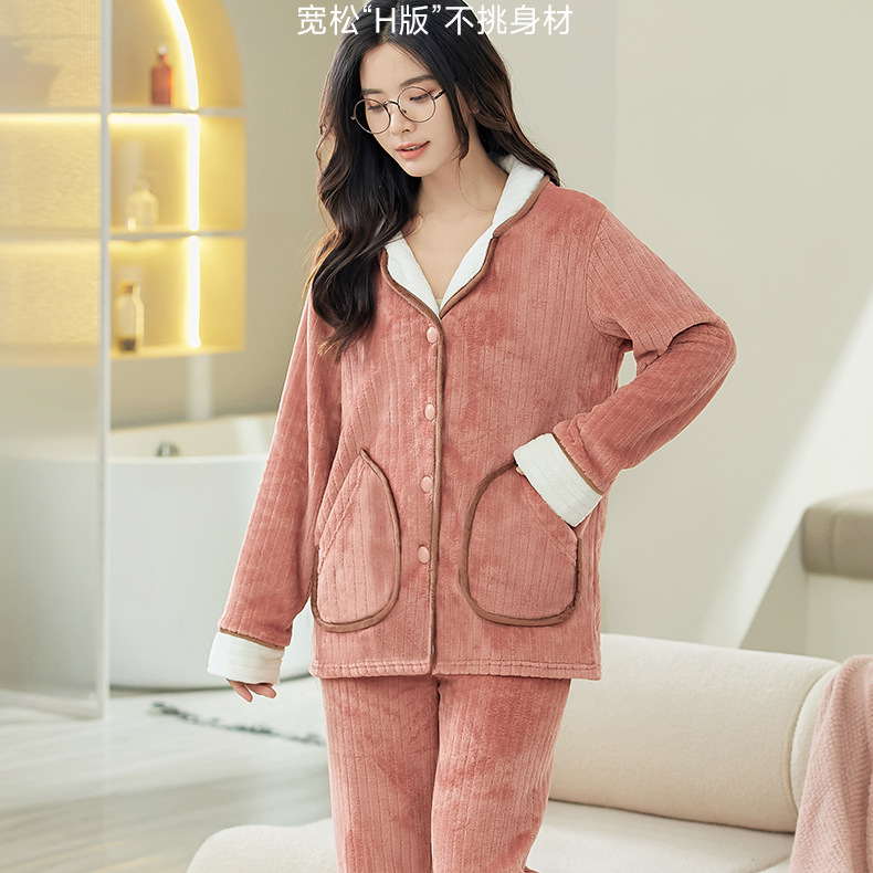 Новые фланелевые пижамы для женщин, теплые осенне-зимние повседневные мужские домашние костюмы из кораллового вельвета, оптом.