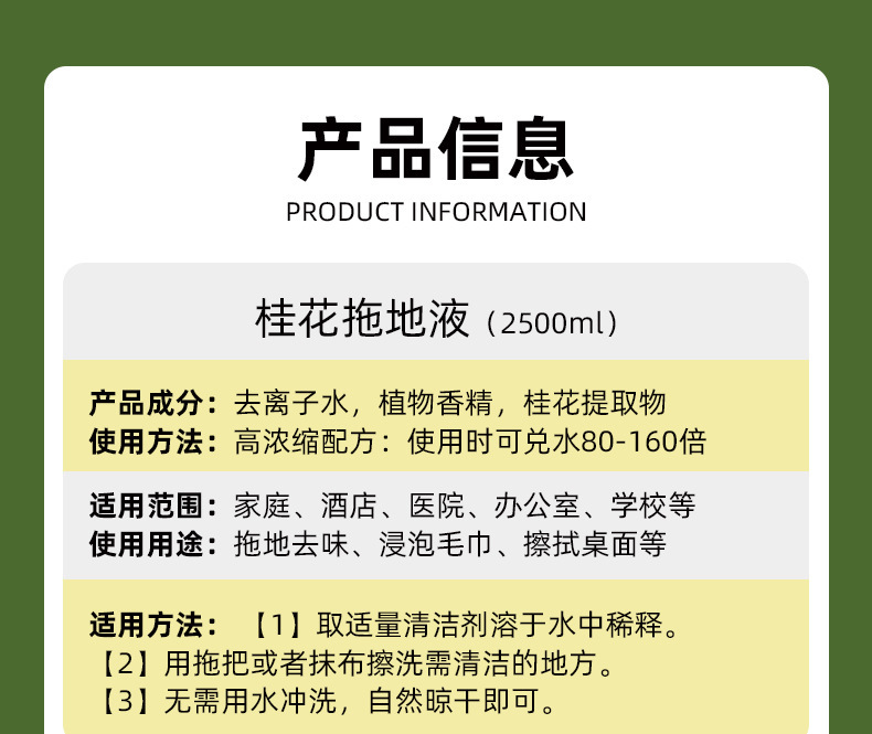 Бытовые прочные ароматы османтуса Легкая жидкость для мытья полов Отель Супермаркет Очиститель пола плитки, чтобы пахнуть водой со шваброй
