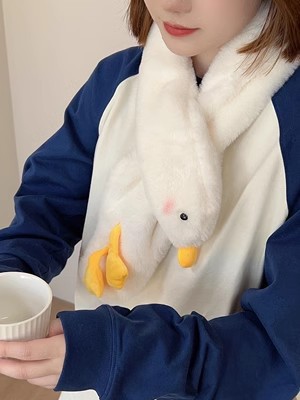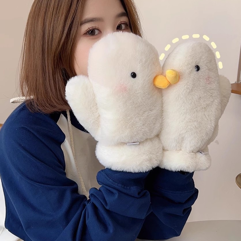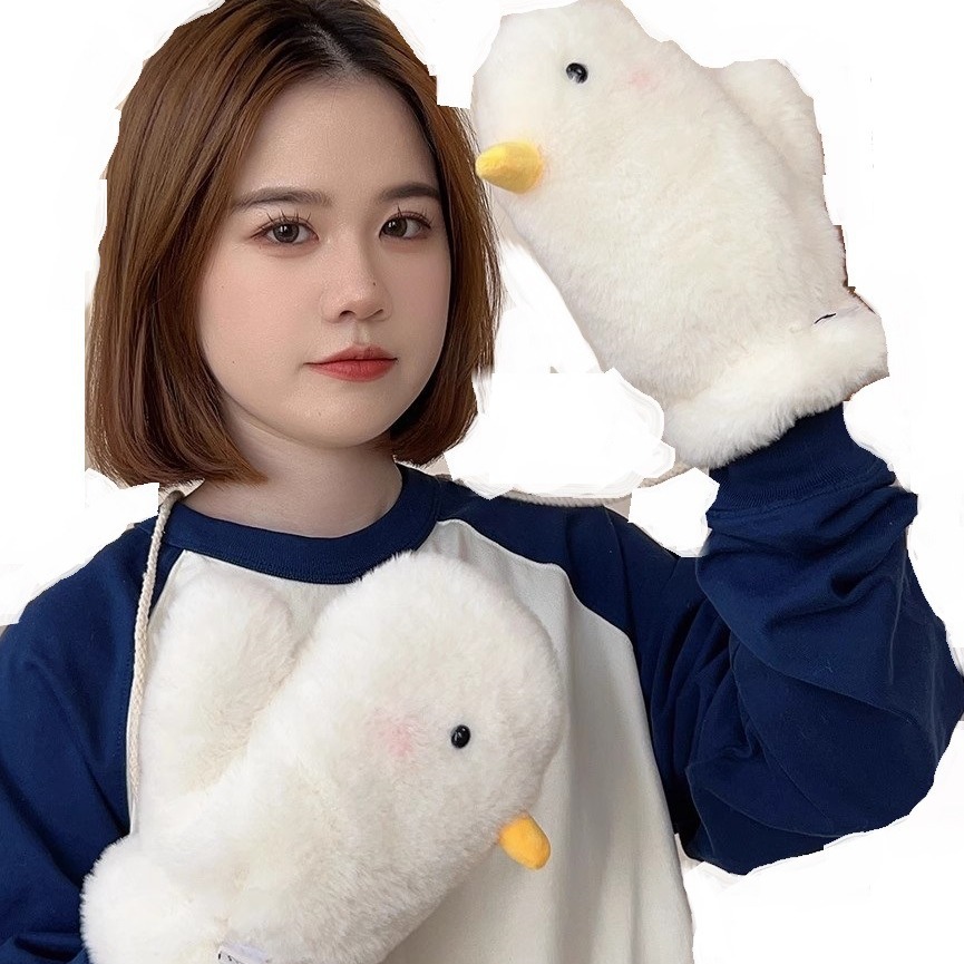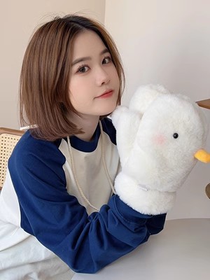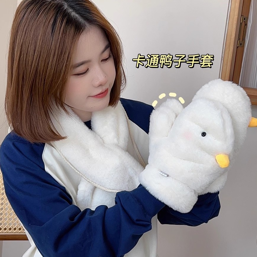 Мультяшные маленькие утиные перчатки женские Южная Корея новые зимние теплые плюшевые милые Висячие варежки на шею