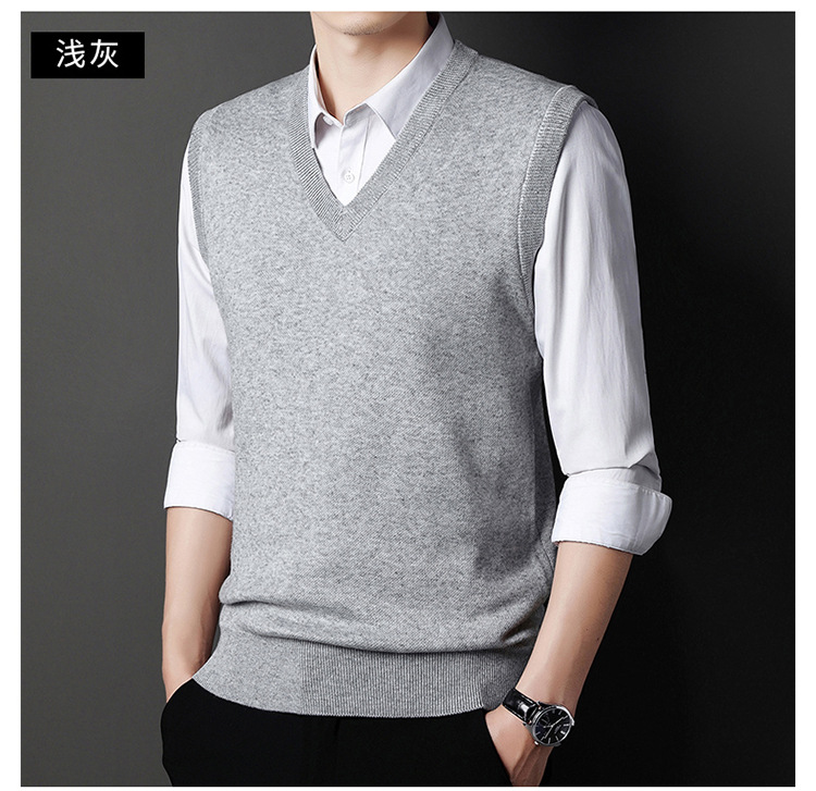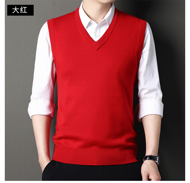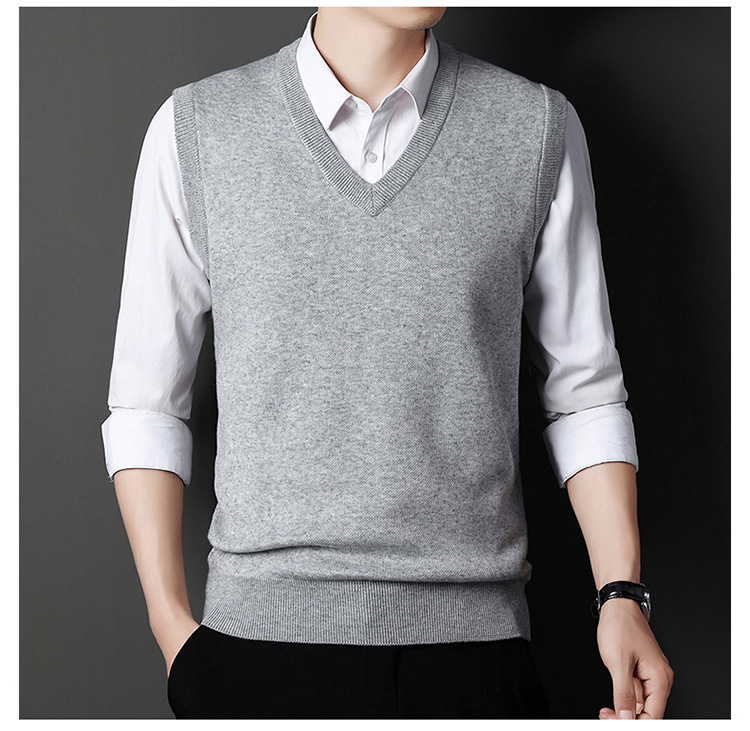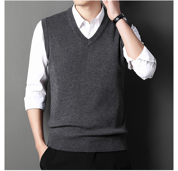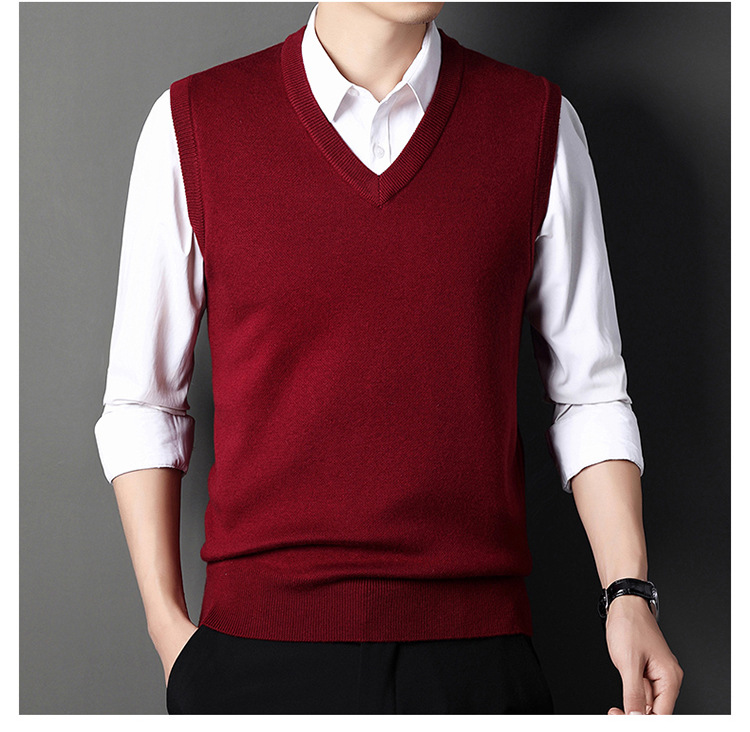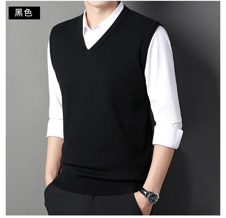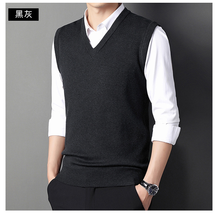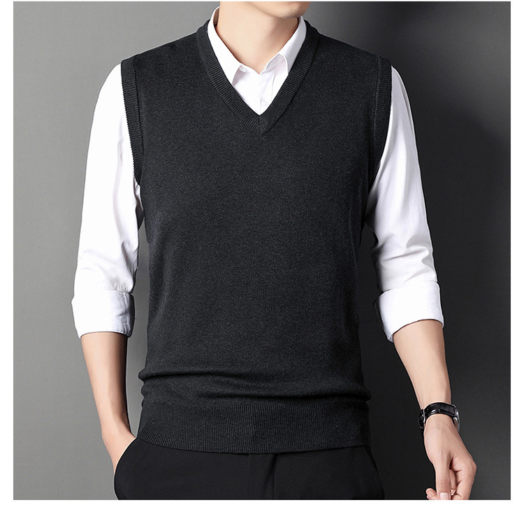 Жилет с V-образным вырезом, новинка для осени и зимы, мужской утепленный вязаный жилет без рукавов, свитер, однотонный деловой внутренний свитер для среднего возраста