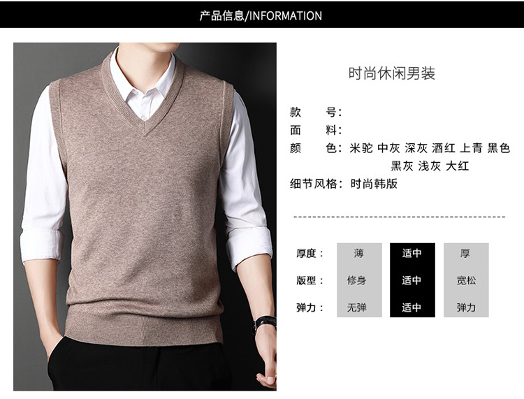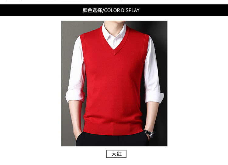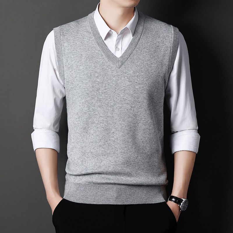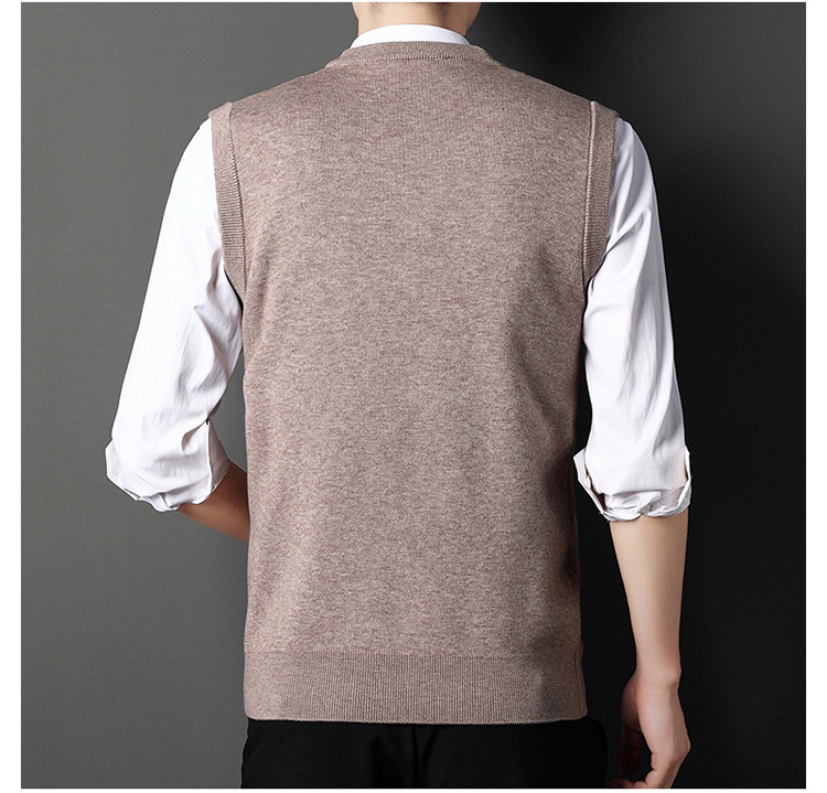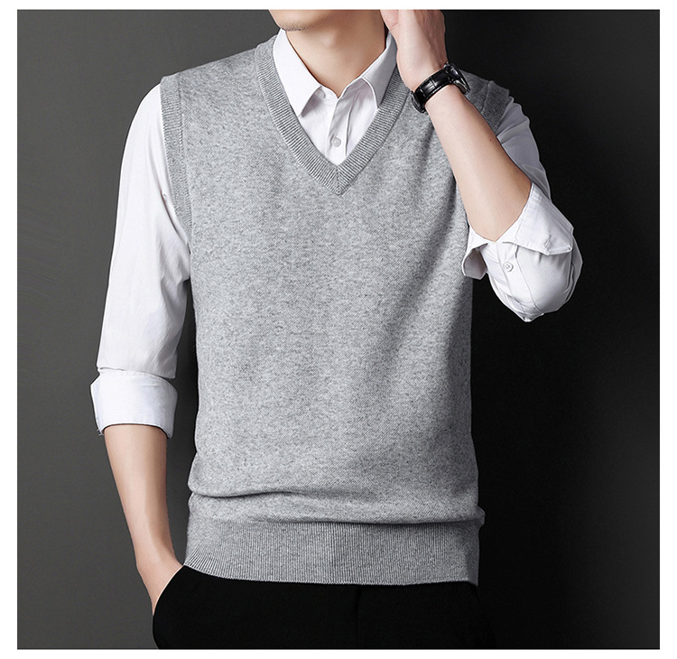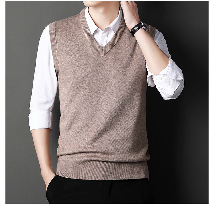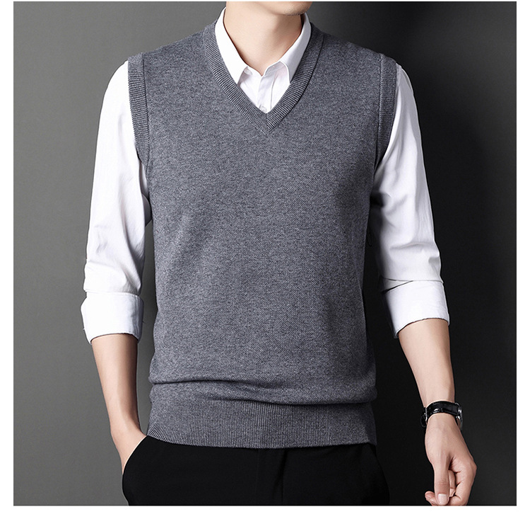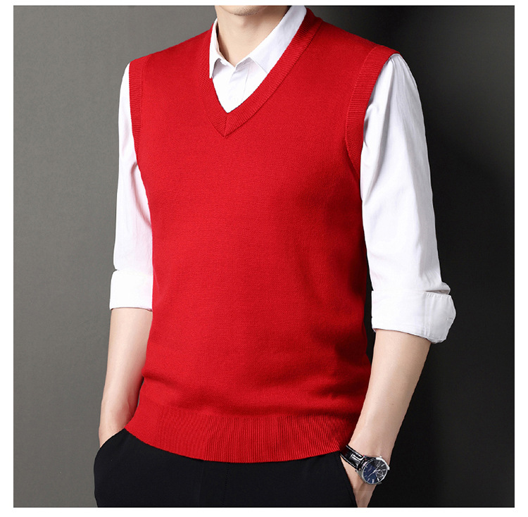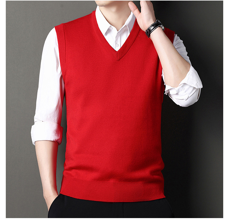 Жилет с V-образным вырезом, новинка для осени и зимы, мужской утепленный вязаный жилет без рукавов, свитер, однотонный деловой внутренний свитер для среднего возраста